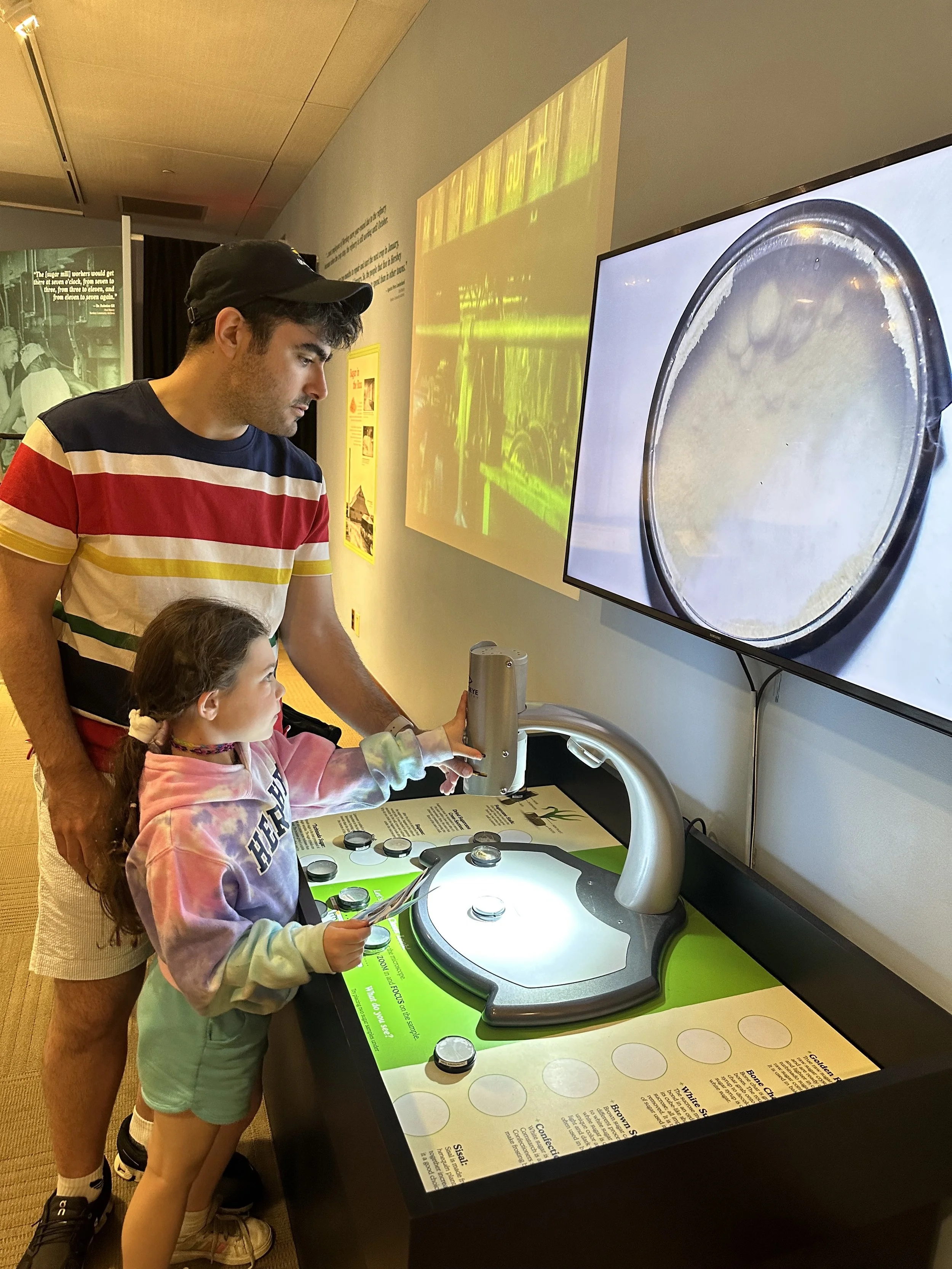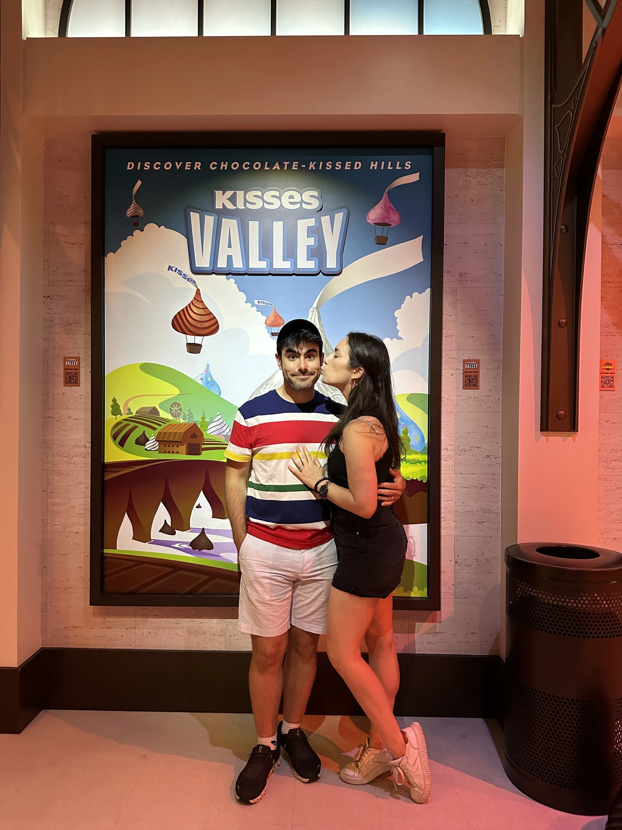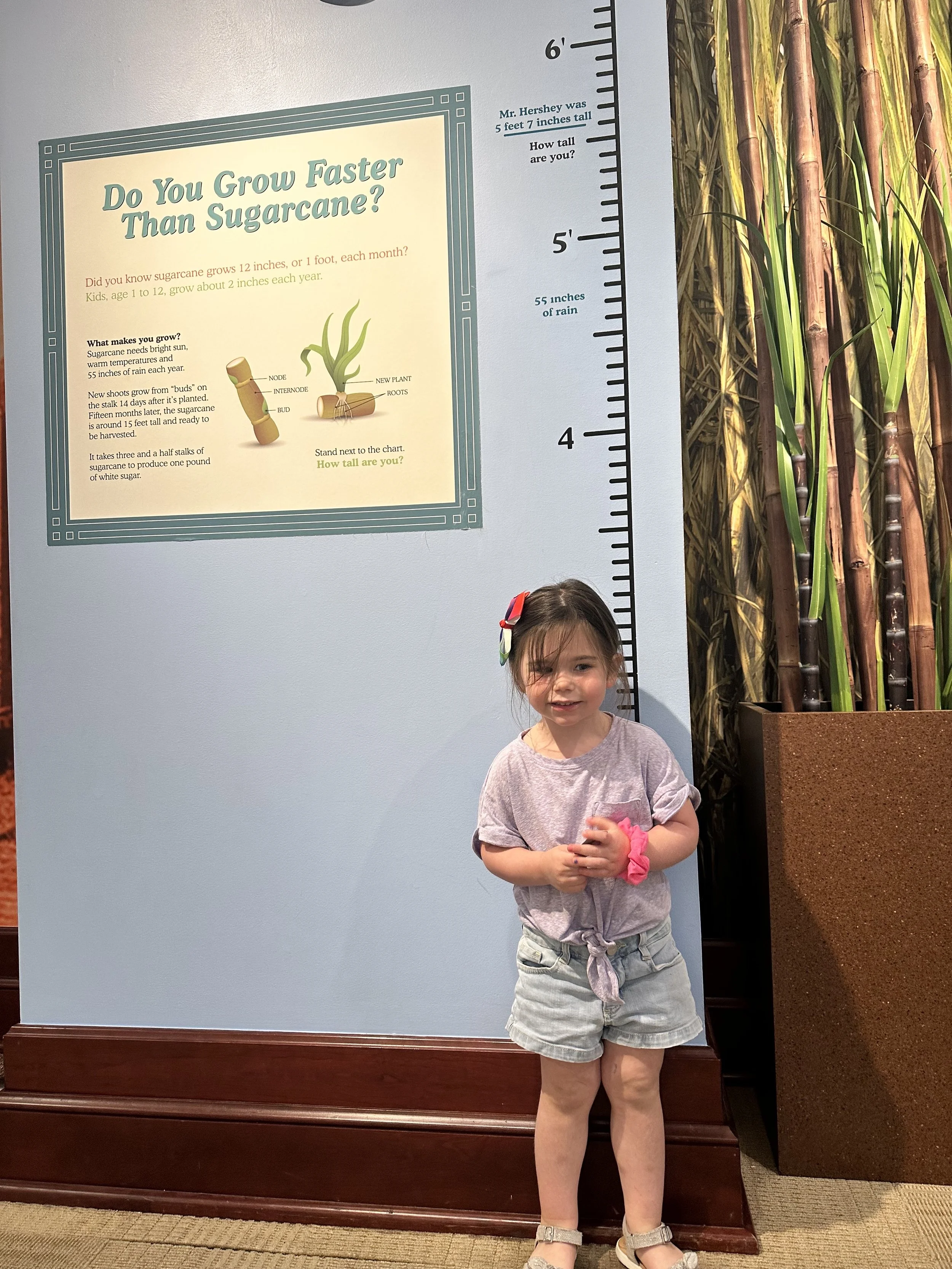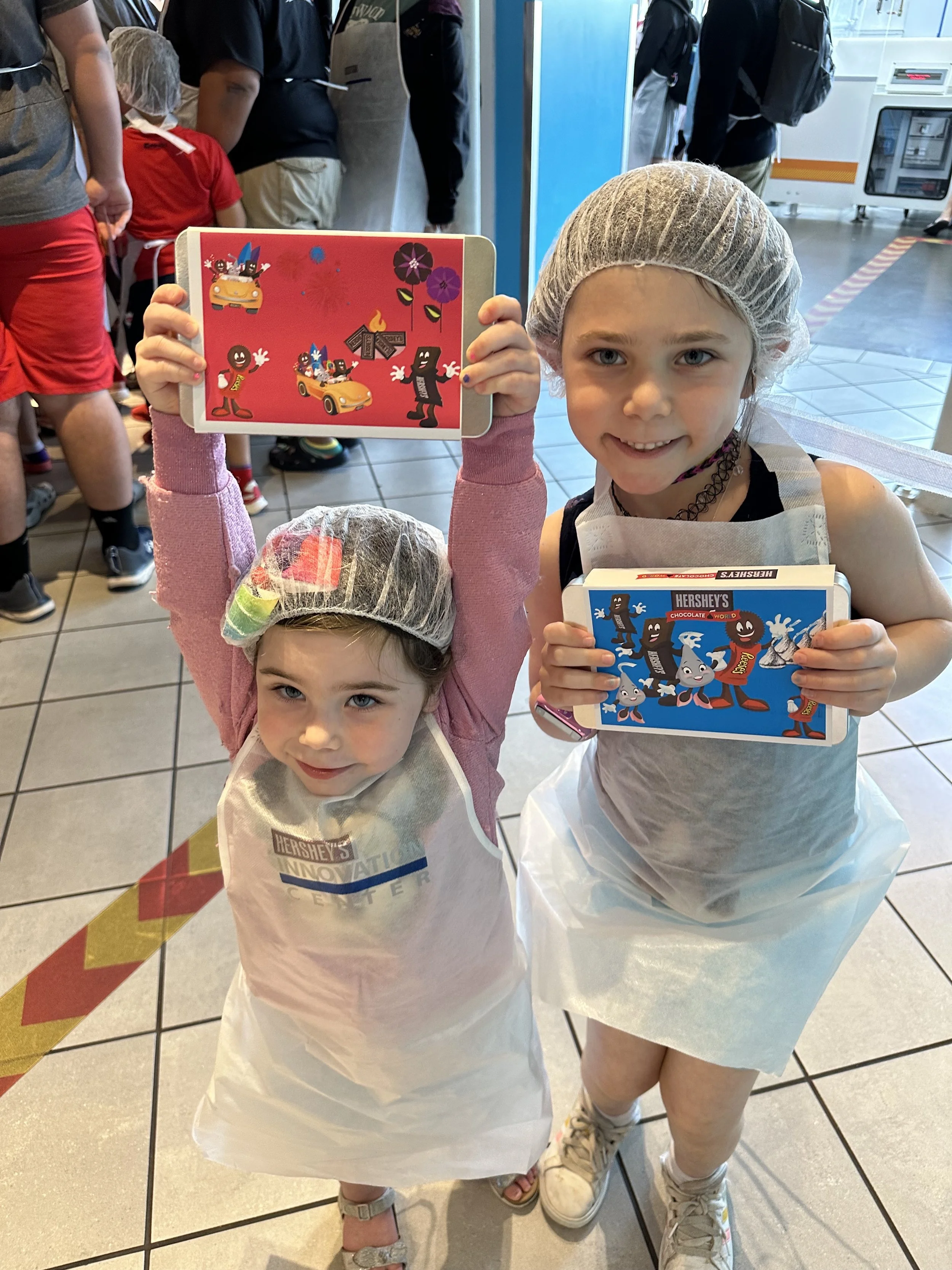 After breakfast we left the hotel and went to the Hershey Story Museum. It’s a great museum and the tickets were included in our hotel stay. We spent about an hour walking around and learning about Milton Hershey and the history of the company. We learned a bunch of interesting things, like the fact that Hershey started out making caramels before he got into chocolates; he sold the caramel business for $1 million so he could buy chocolate making equipment. Before Hershey, chocolate was expensive and more of a luxury. His goal was to make chocolates accessible to everyone. We also learned that he had purchased the Reese’s company from Harry Reese in the 1960s. Hershey was friendly with Reese, who originally worked at the Hershey dairy farm, but saw what Hershey was doing and figured he could do it too. There was also a cute scavenger hunt for the kids, but at the end they just got a sticker, which was surprising because you’d think the prize would be chocolate. The man giving out the scavenger hunt sheets at the entrance to the museum was a kind older man. That seems like it would be a good job for my dad when he retires.