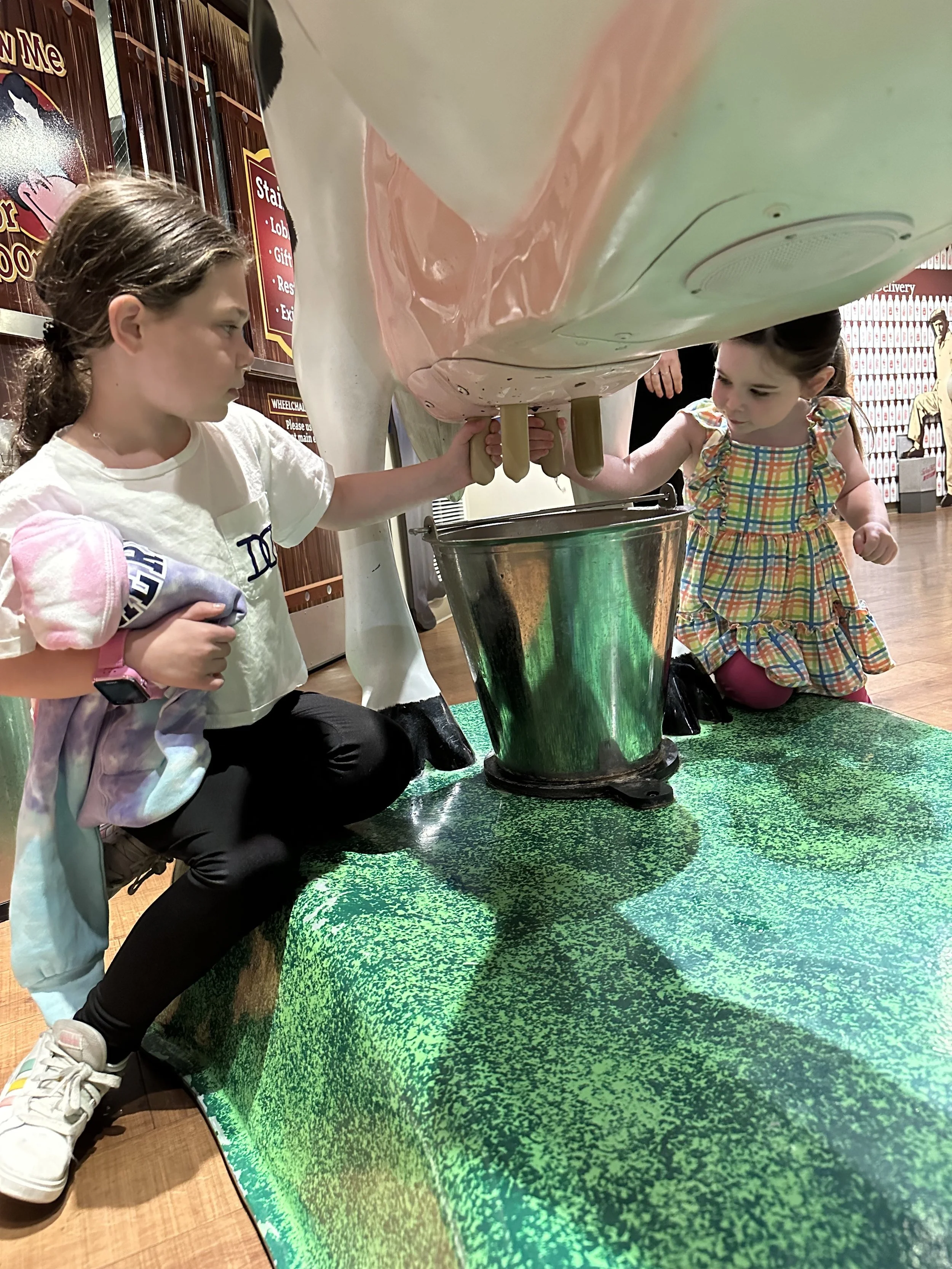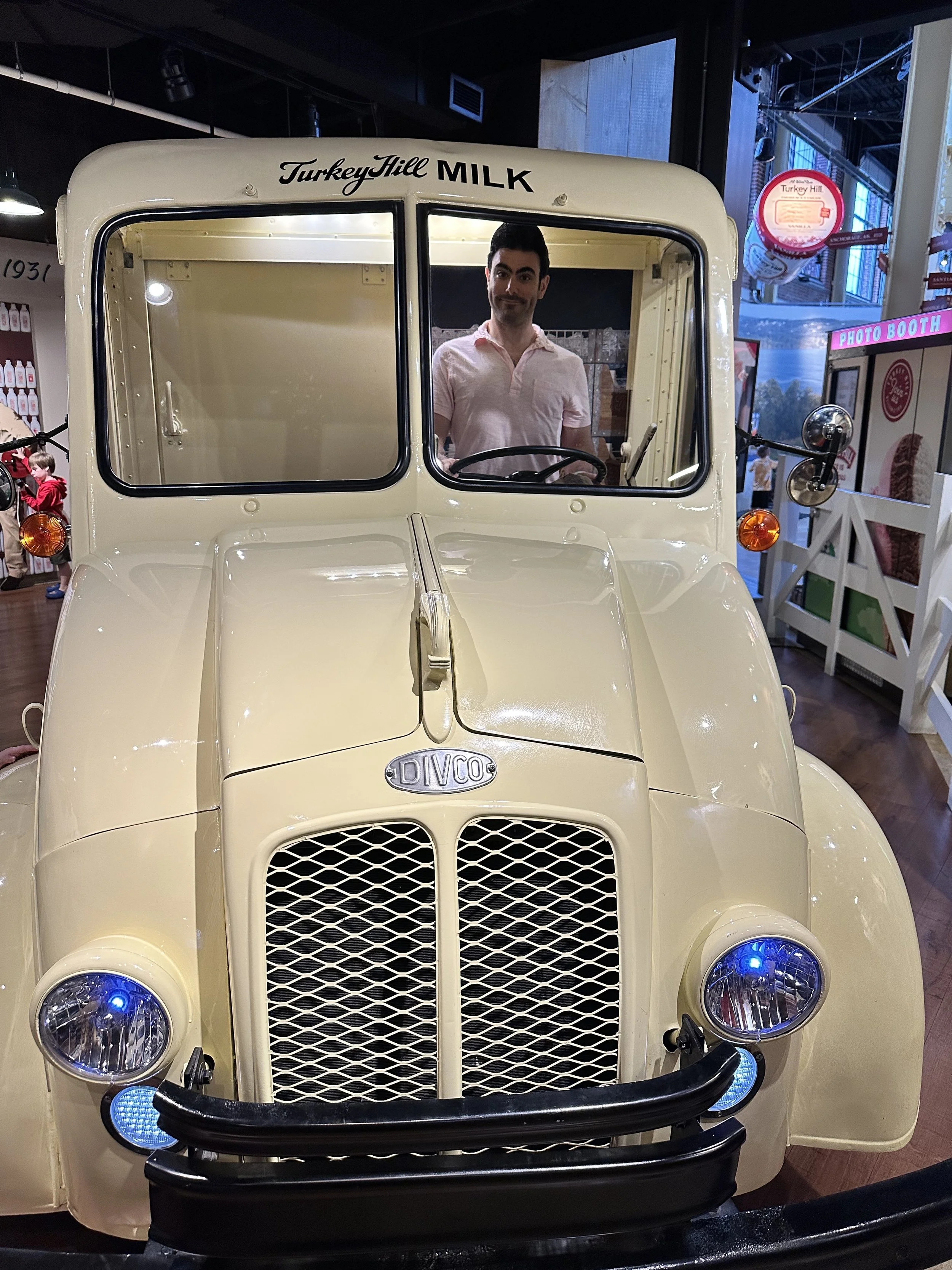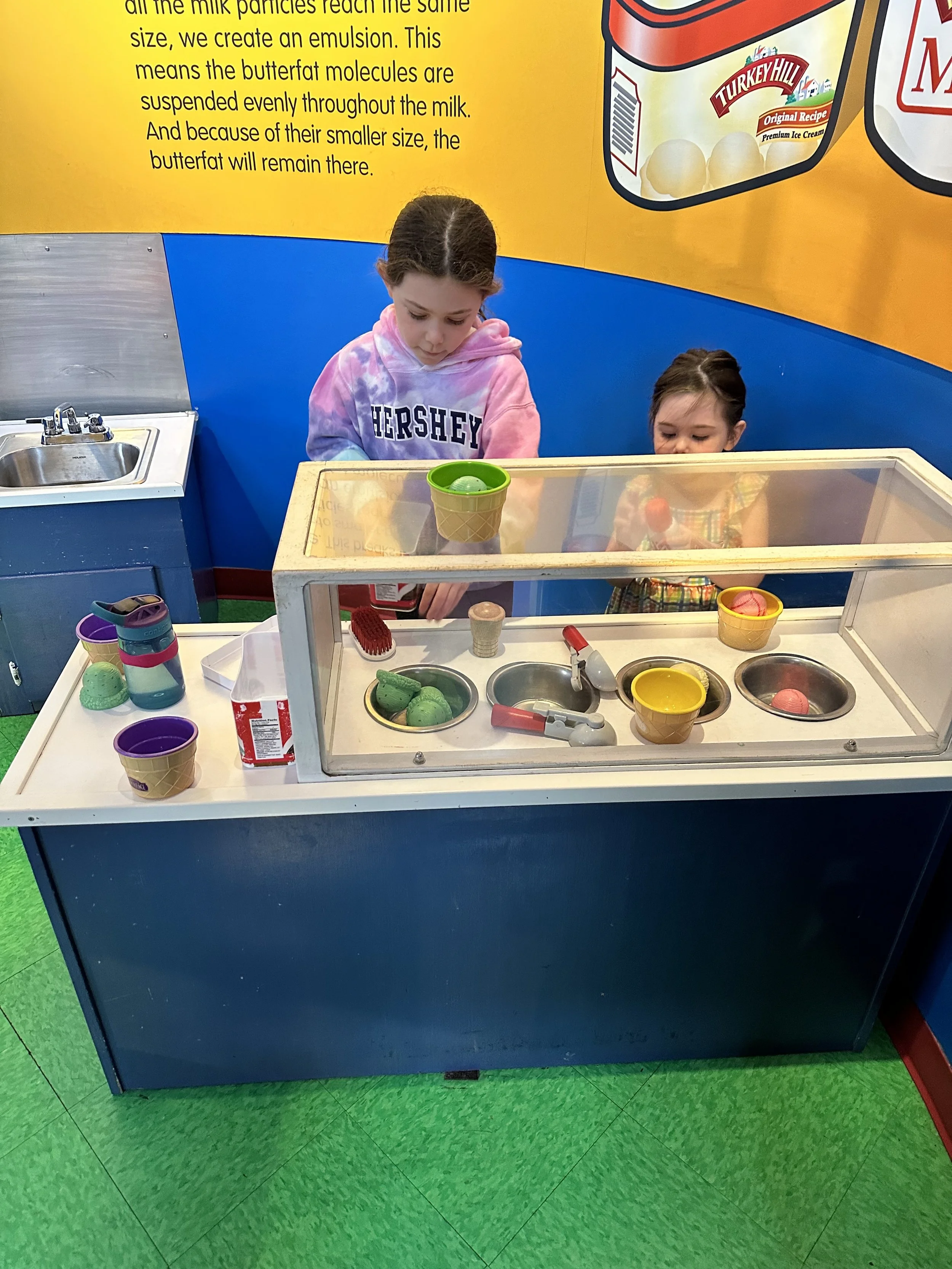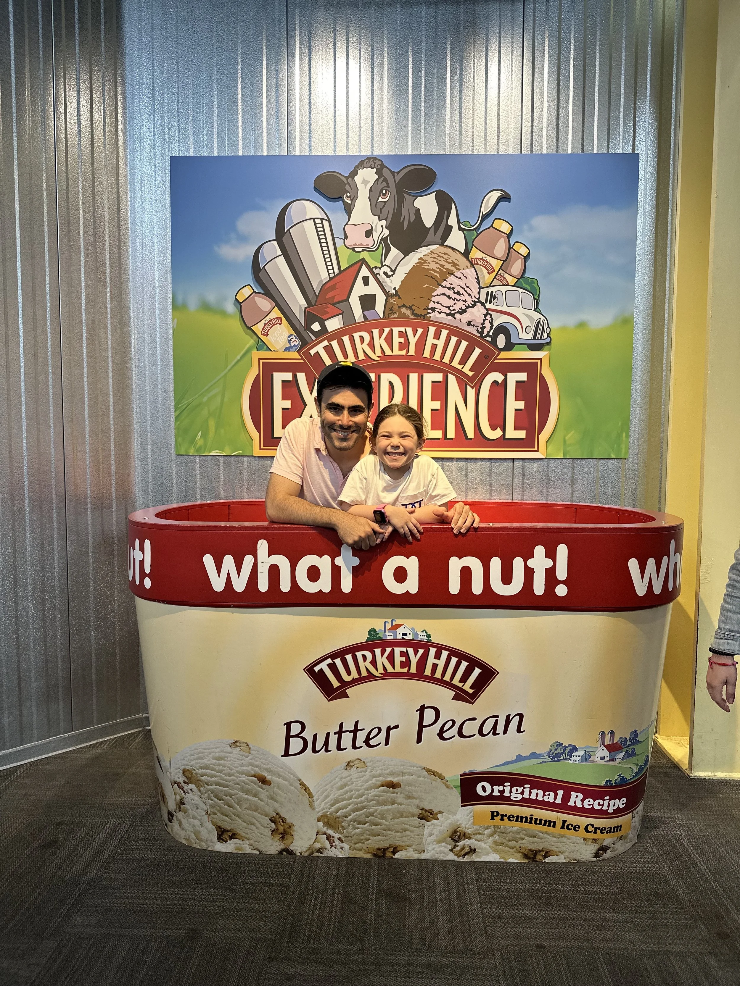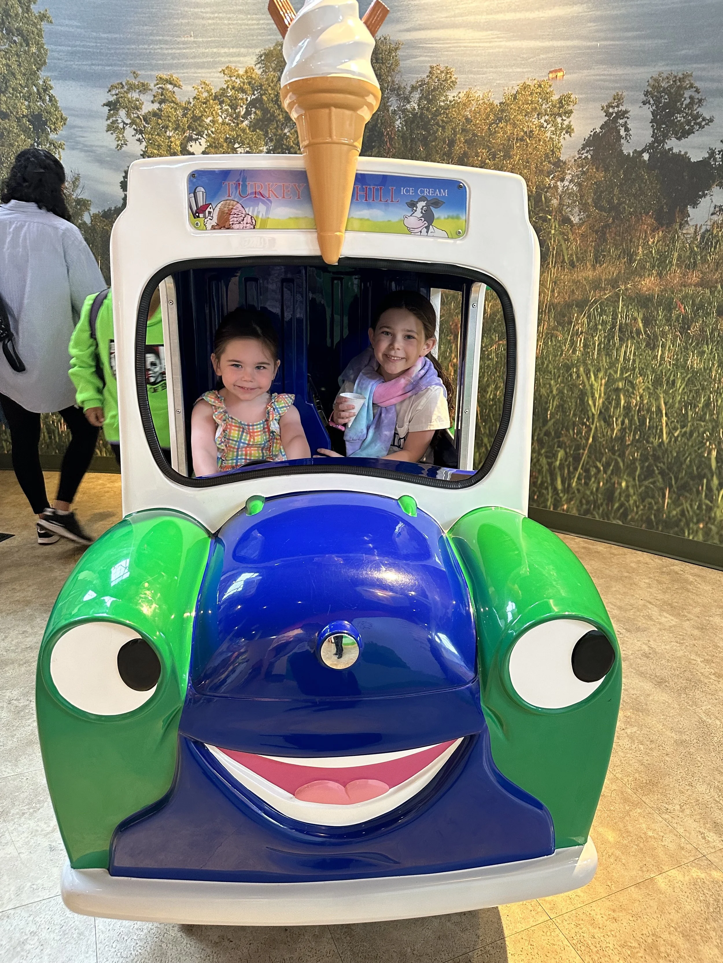 Our first stop of the day was the Turkey Hill Experience. They call it “experience” because it’s not a factory, it’s more of a museum. You learn about making ice cream and there are cute play things along the way. Madeleine enjoyed milking the pretend cows. They have all of the Turkey Hill Iced Teas for sampling. They weren’t great. [Tzvi: I liked the lemonade.] They also have a tasting room where you can taste as much as you want.