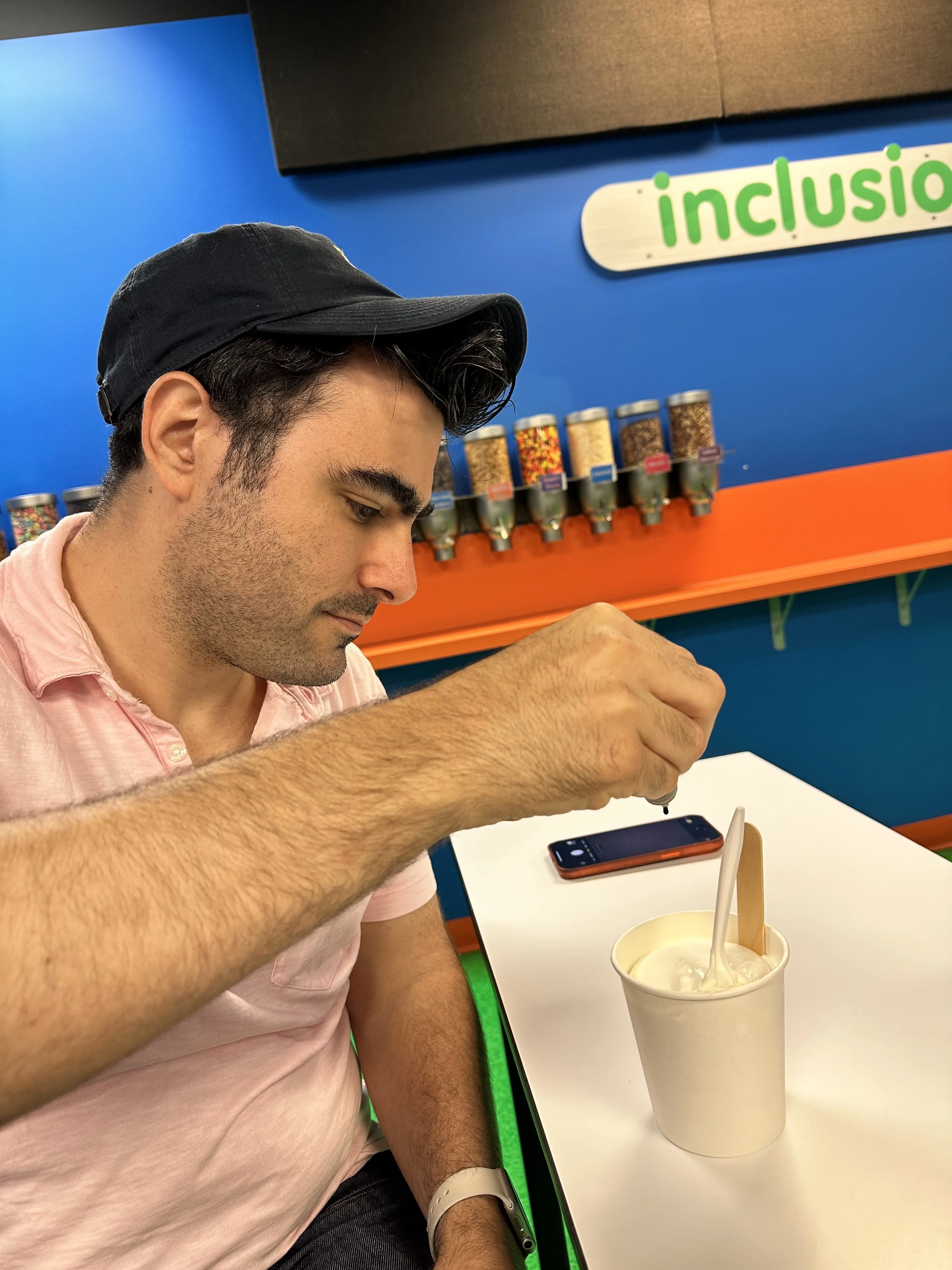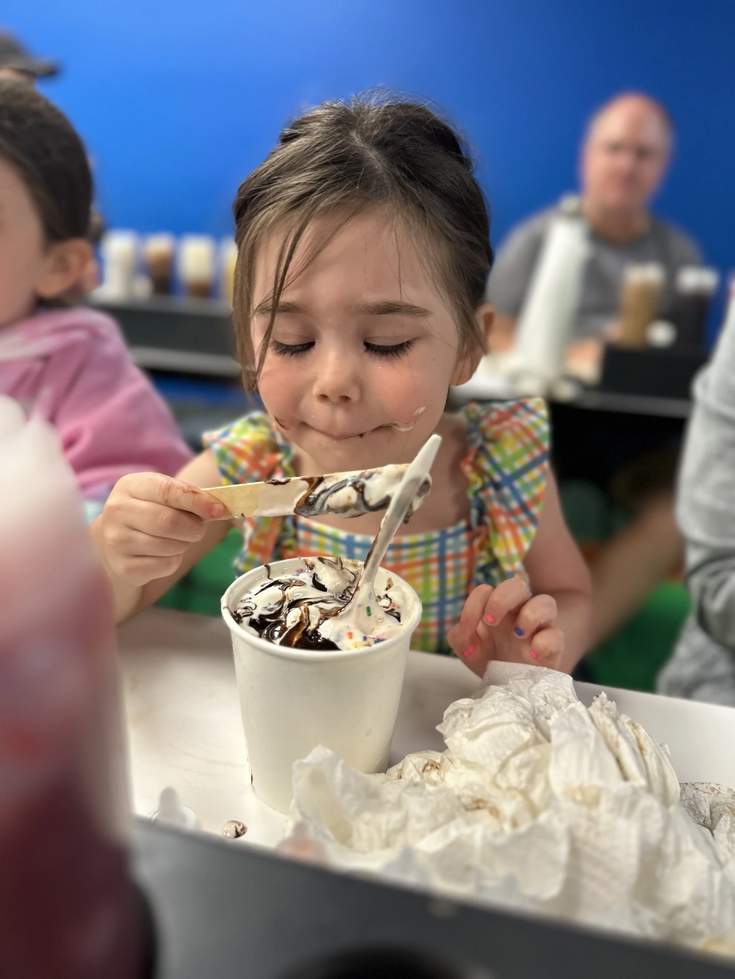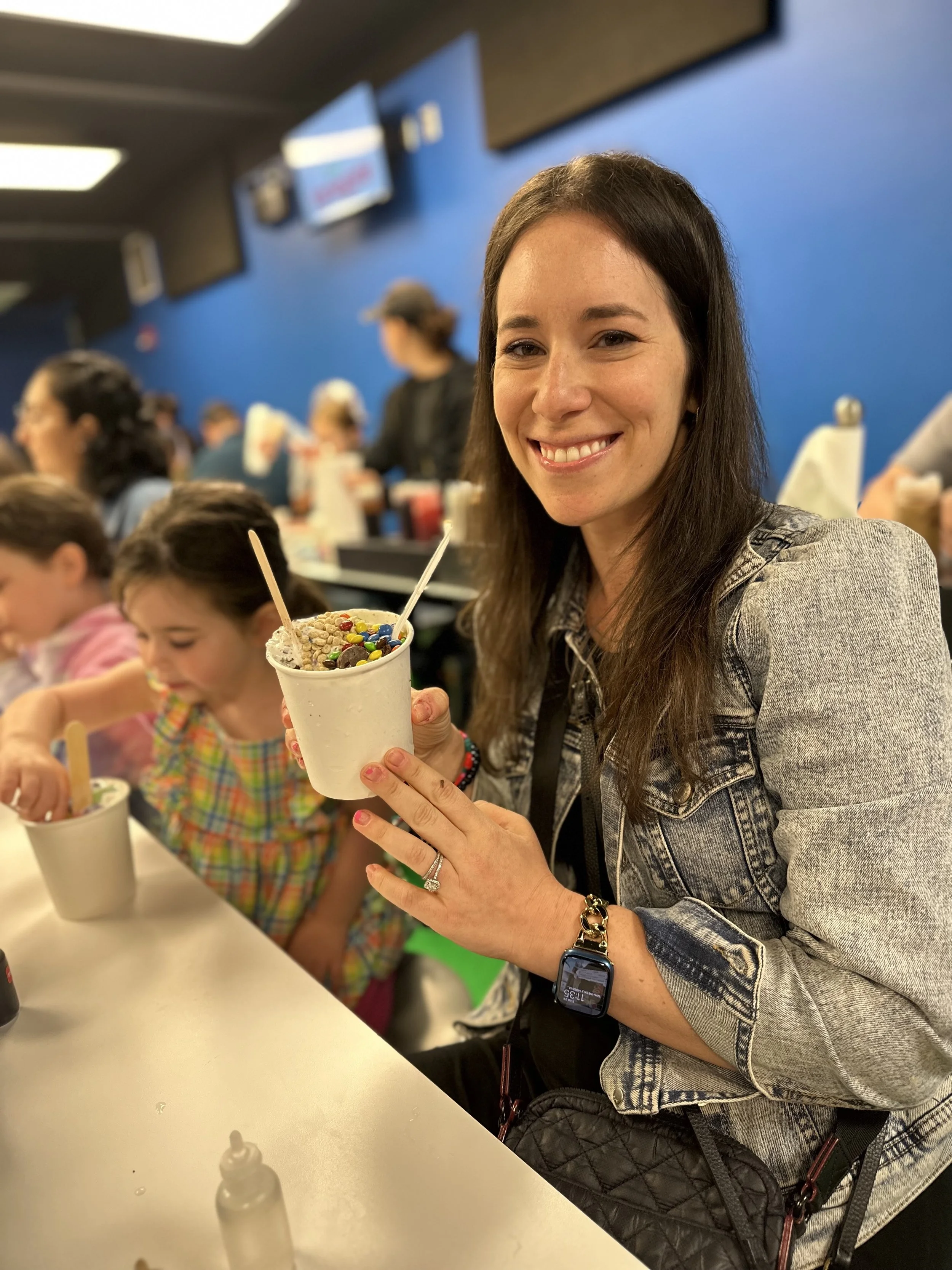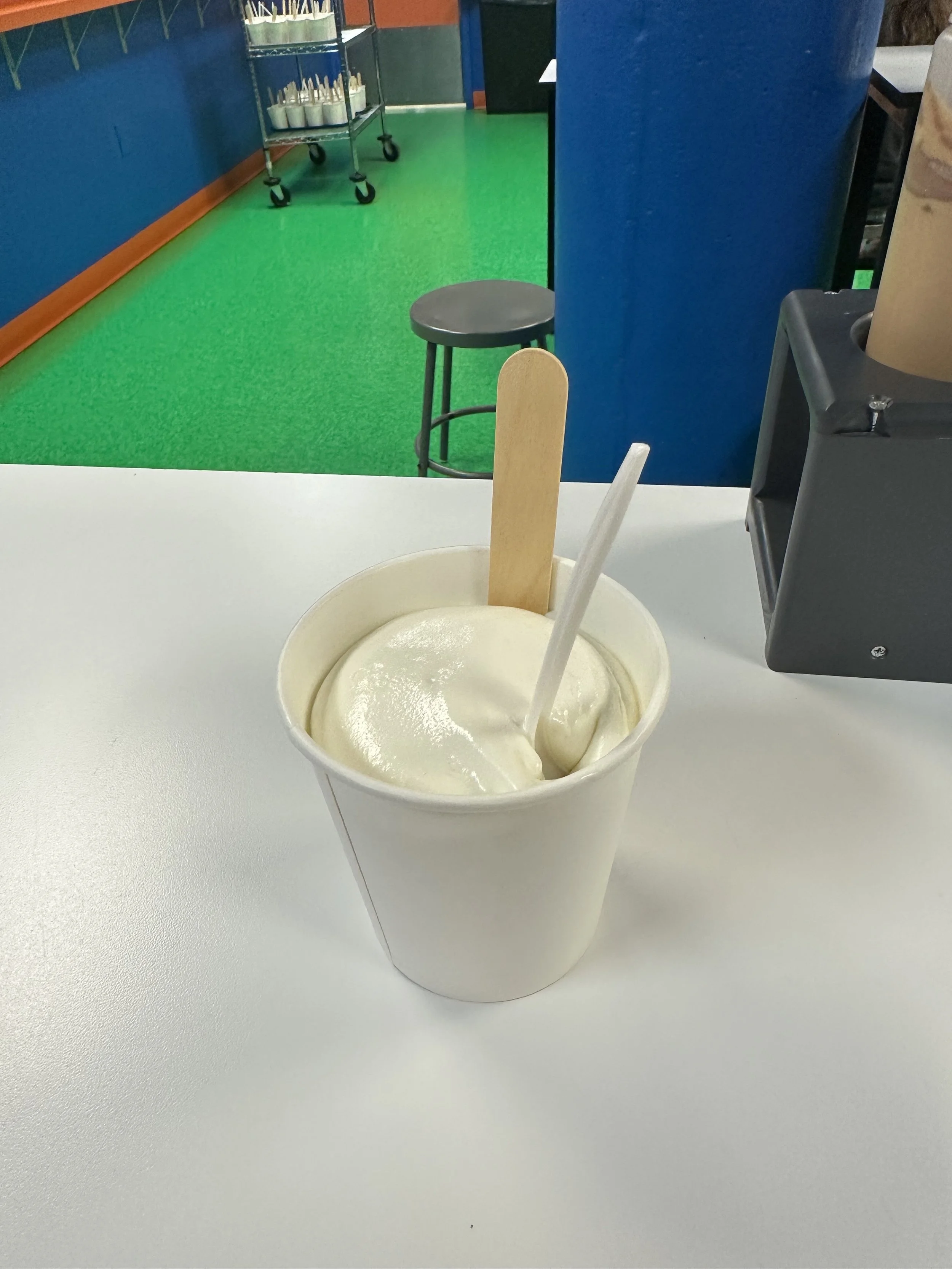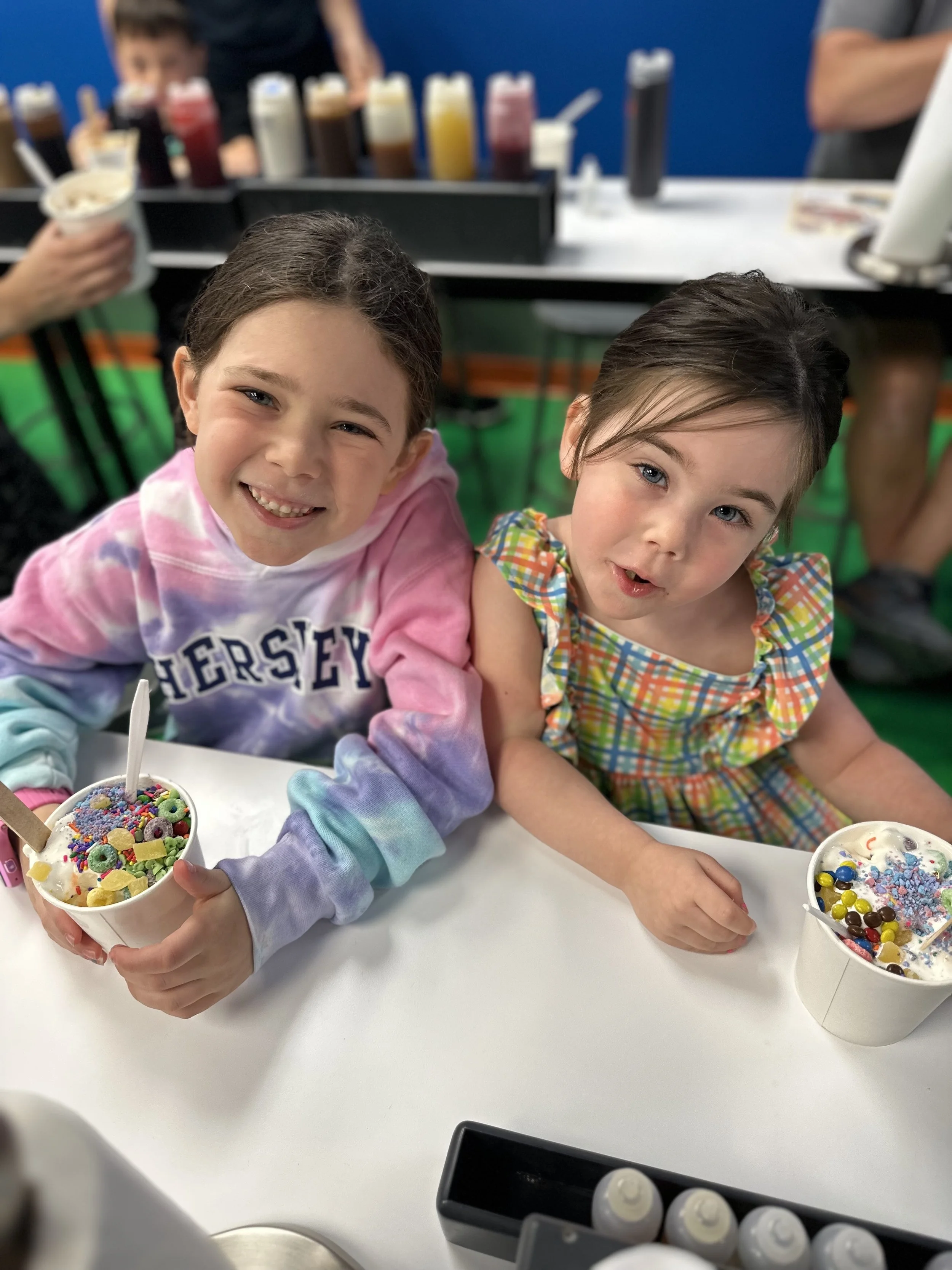 We started the walk-through but stopped mid-way for our 11:15 make-your-own ice cream class. We had to pay extra for this one. Basically they bring you into a classroom where they teach you about the flavoring process. I should mention once again the tour was full of Jews. Anyway, they give you a cup of ice cream, probably a sweet cream kind of flavor. Then in front of you are 10 or so different flavor extracts including coffee, maple, lemon, cotton candy, etc. You can try all of them and then decide what to put in your ice cream. Then you go to the wall of “Inclusions,” which are mix-ins, and take whichever you want. So basically it’s a very expensive make your own Hewlee situation. I succumbed to my lack of willpower and just got all the mix-ins (except for chocolate covered coffee beans because I forgot about them and I still regret it). Tzvi made a more normal flavor which was maple coffee with waffle cone. The kids obviously went overboard. After we were done and stuffed with our own ice cream we went to the upstairs tasting room for more ice cream. I tasted a graham cracker flavor which had chocolate covered marshmallows. It was delicious. Tzvi had cookies and cream and they actually opened up a new tub for him which was nice. When we were done we visited the gift shop and purchased bowls that will likely collect dust. Overall, a good stop.