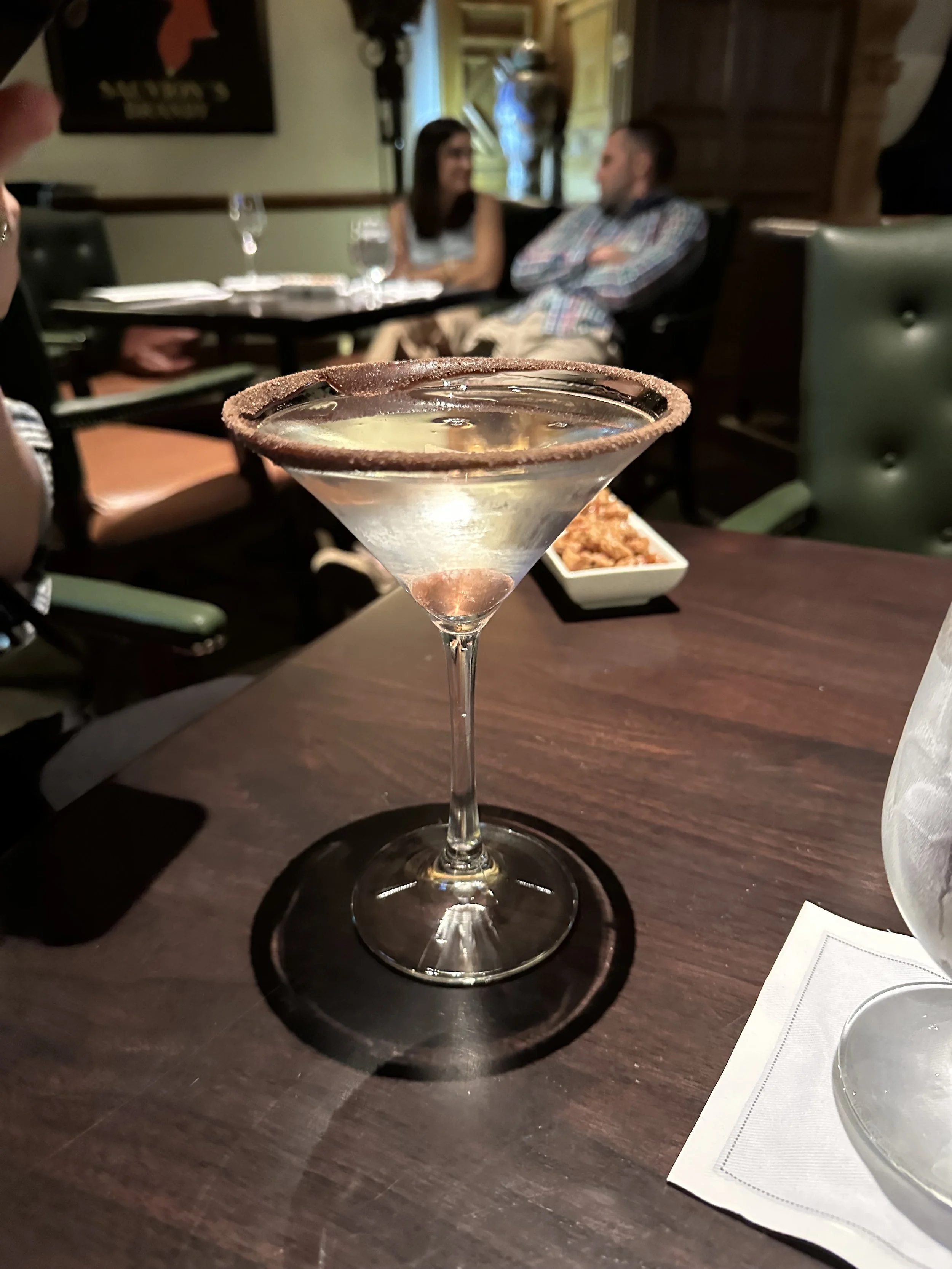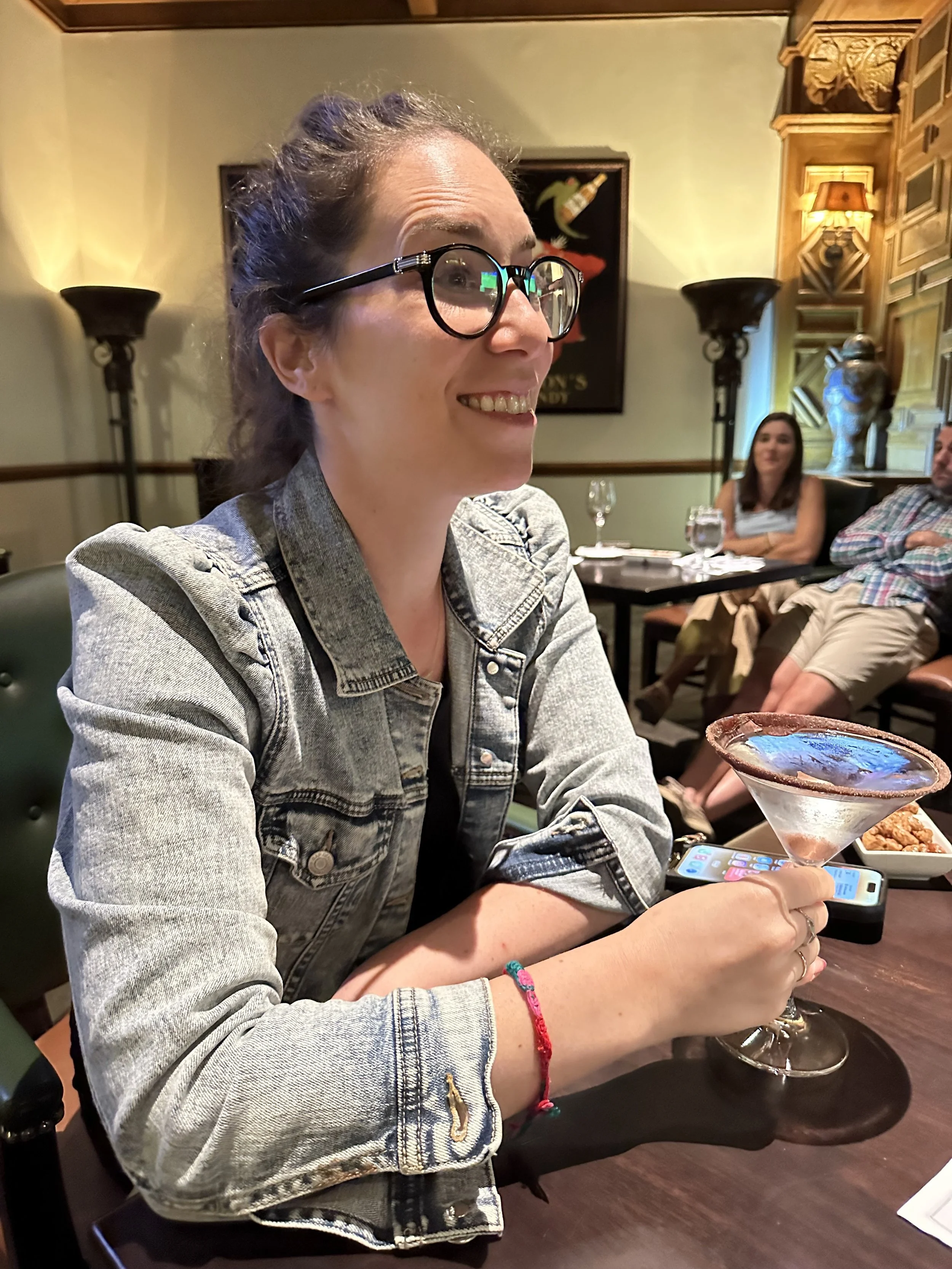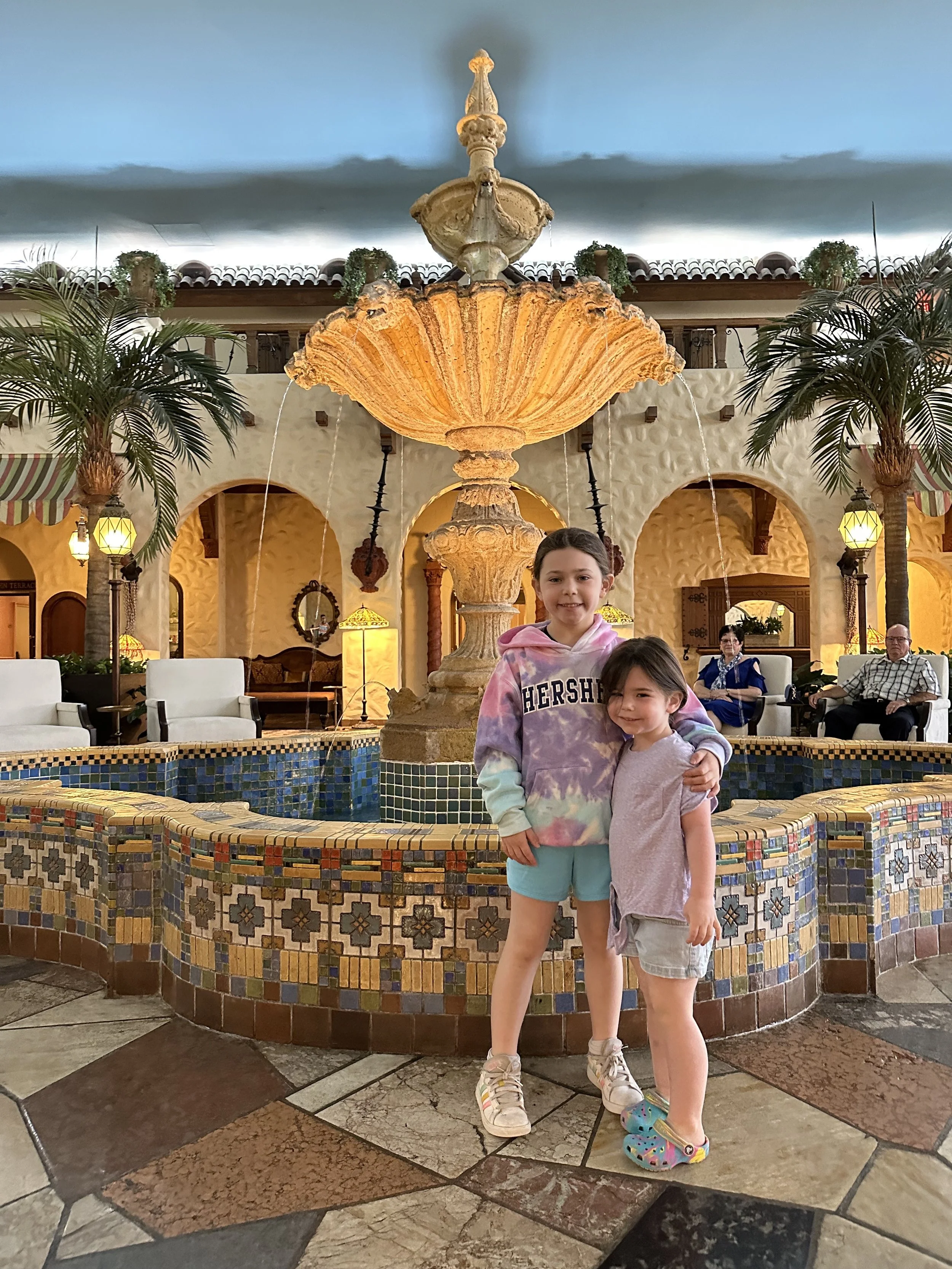 We came back and got the girls to bed. Then Tzvi and I went out for a drink at the Iberian Bar in the lobby. I asked the waitress for the least offensive chocolate cocktail and she recommended the Signature Hershey Kiss Martini. It was a clear drink with chocolate around the rim and a Hershey kiss in the middle. It actually tasted like chocolate. It wasn’t like an amazing drink, but it did taste like chocolate and I had to try it. Tzvi had our signature Kahlua, Baileys, and cream. Always a winner.