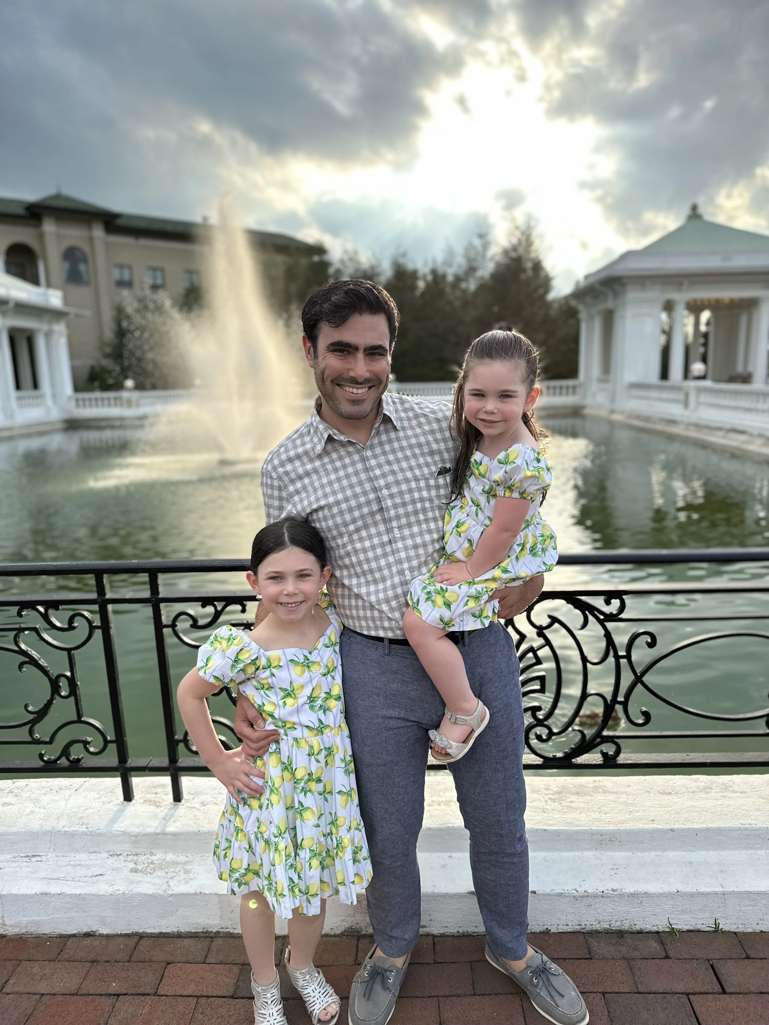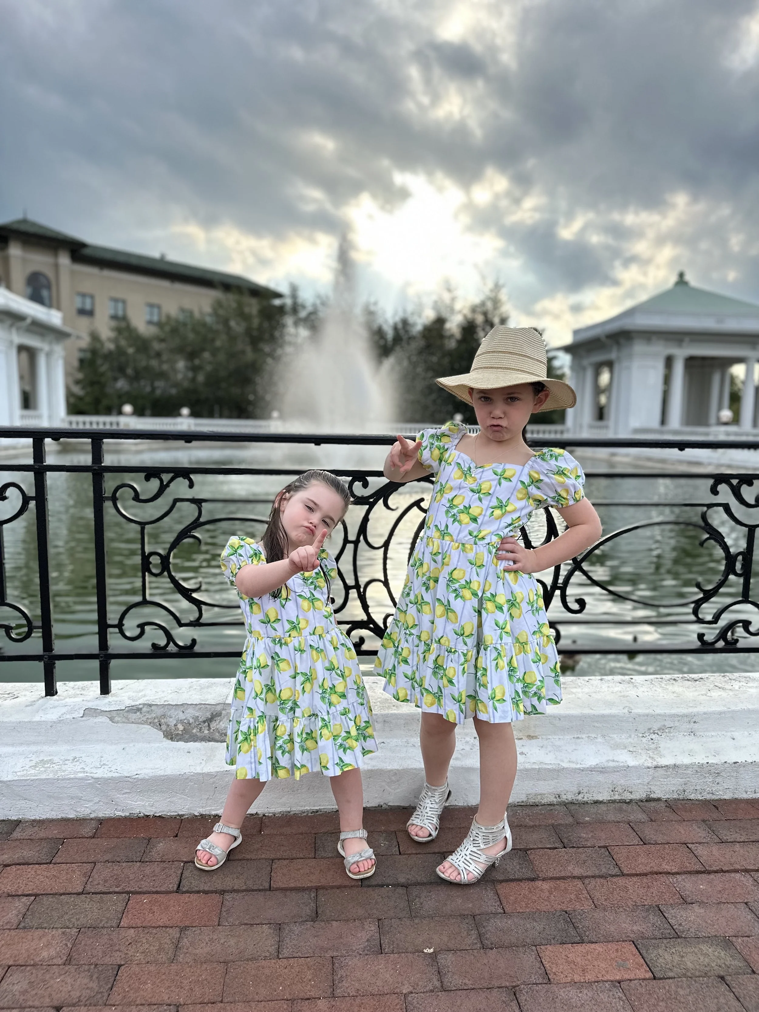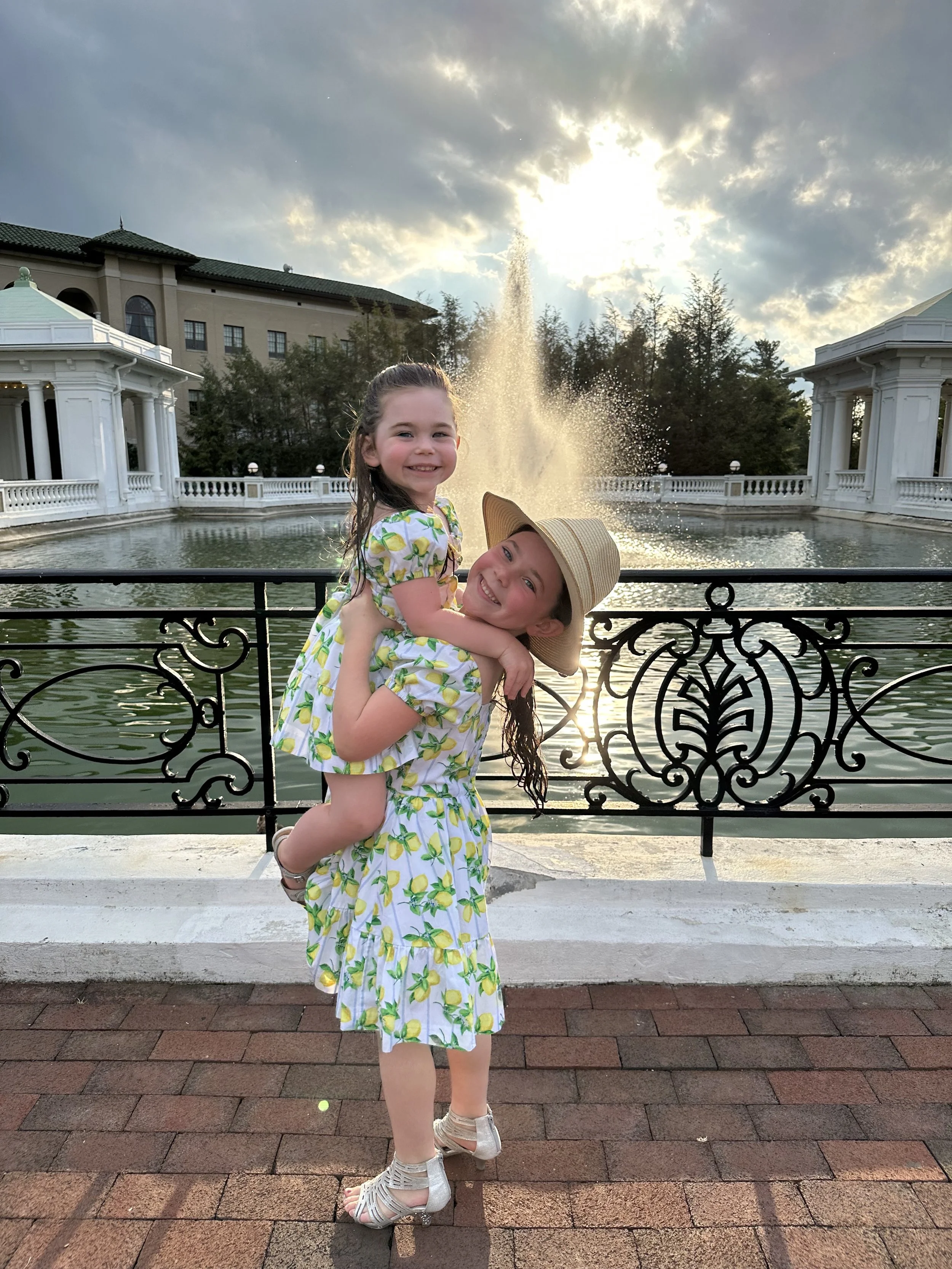From there we went to the outlets where we did some shopping. The girls went crazy at Janie and Jack, and then Tzvi started picking out hats and the next thing I knew we were leaving with holiday outfits for the girls that included a blue beret for Madeleine and a straw hat for Hallie (which is really like a beach vacation hat but she keeps tipping it and saying ‘howdy’).