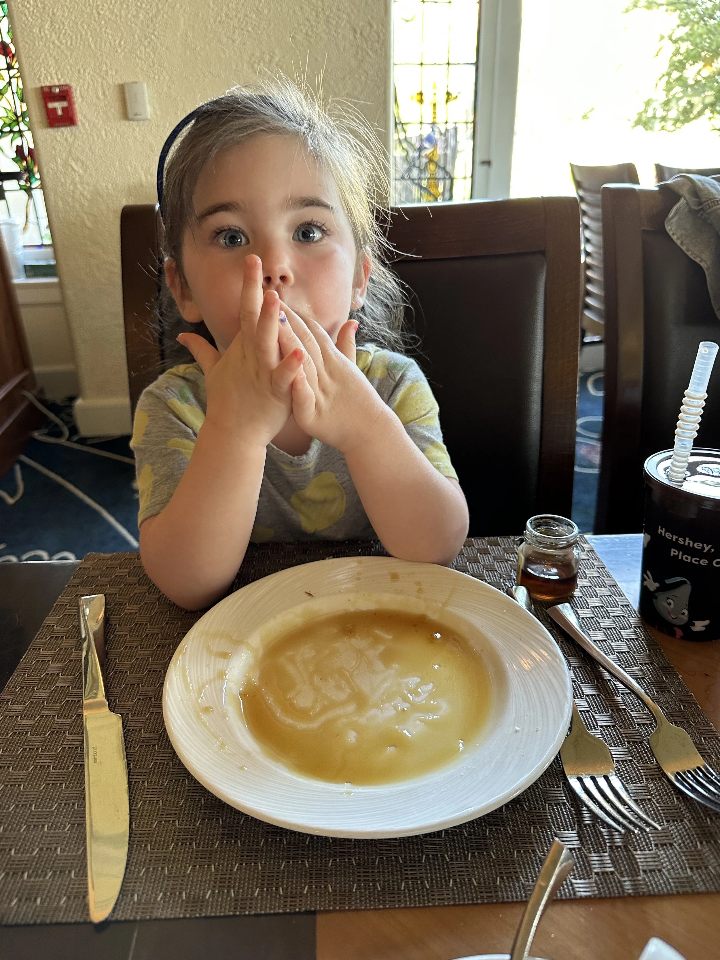 Sunday we woke up and did some packing, then headed down for our third and final breakfast at the Circular. This time there was no wait. It was the same breakfast, all good and nothing new to report, but the woman behind me ordered a Diet Pepsi. Hallie asked if we could get Pepsi and I said no. When she asked why, I tried to explain it was because normal people don’t drink soda for breakfast.