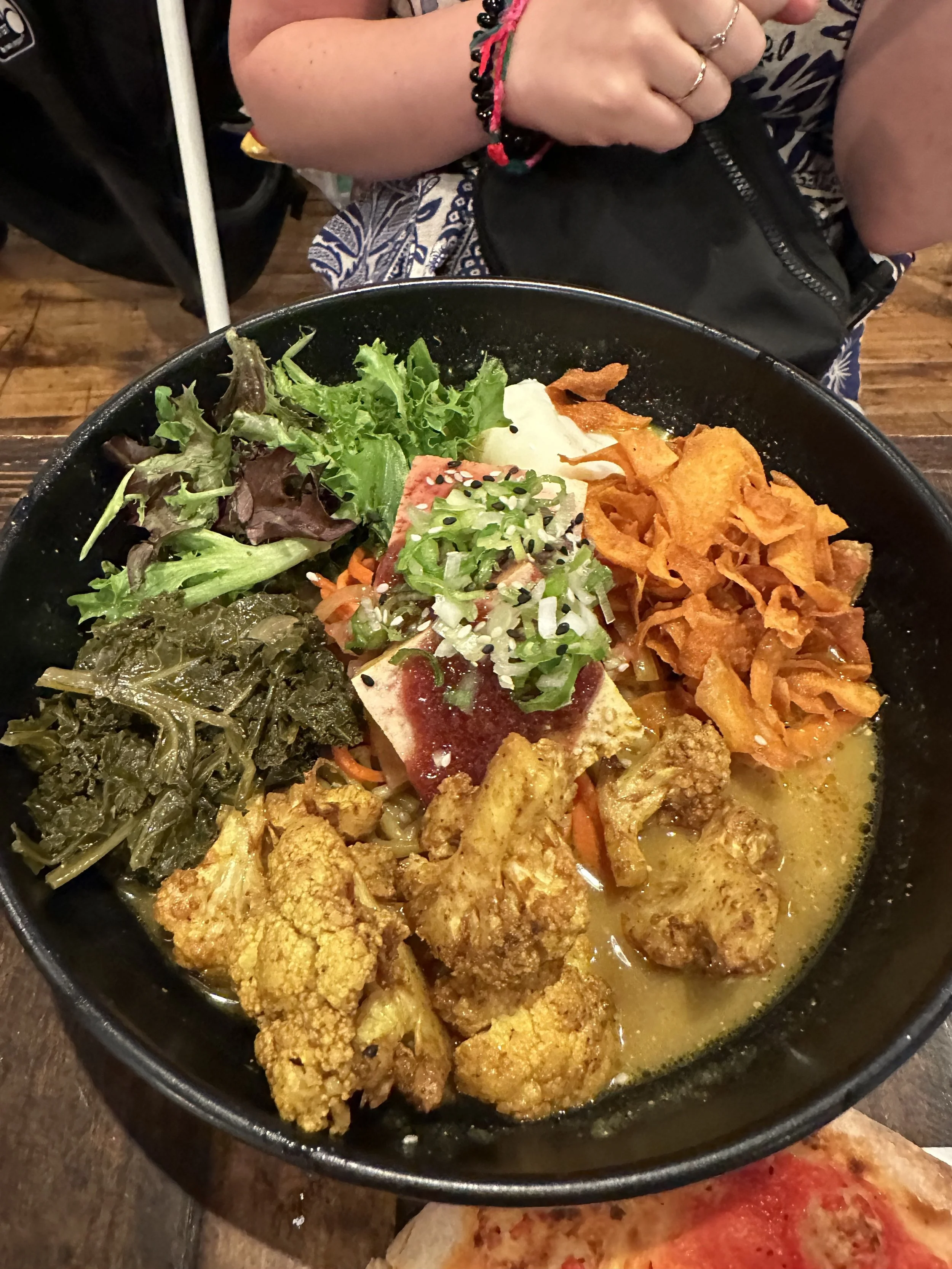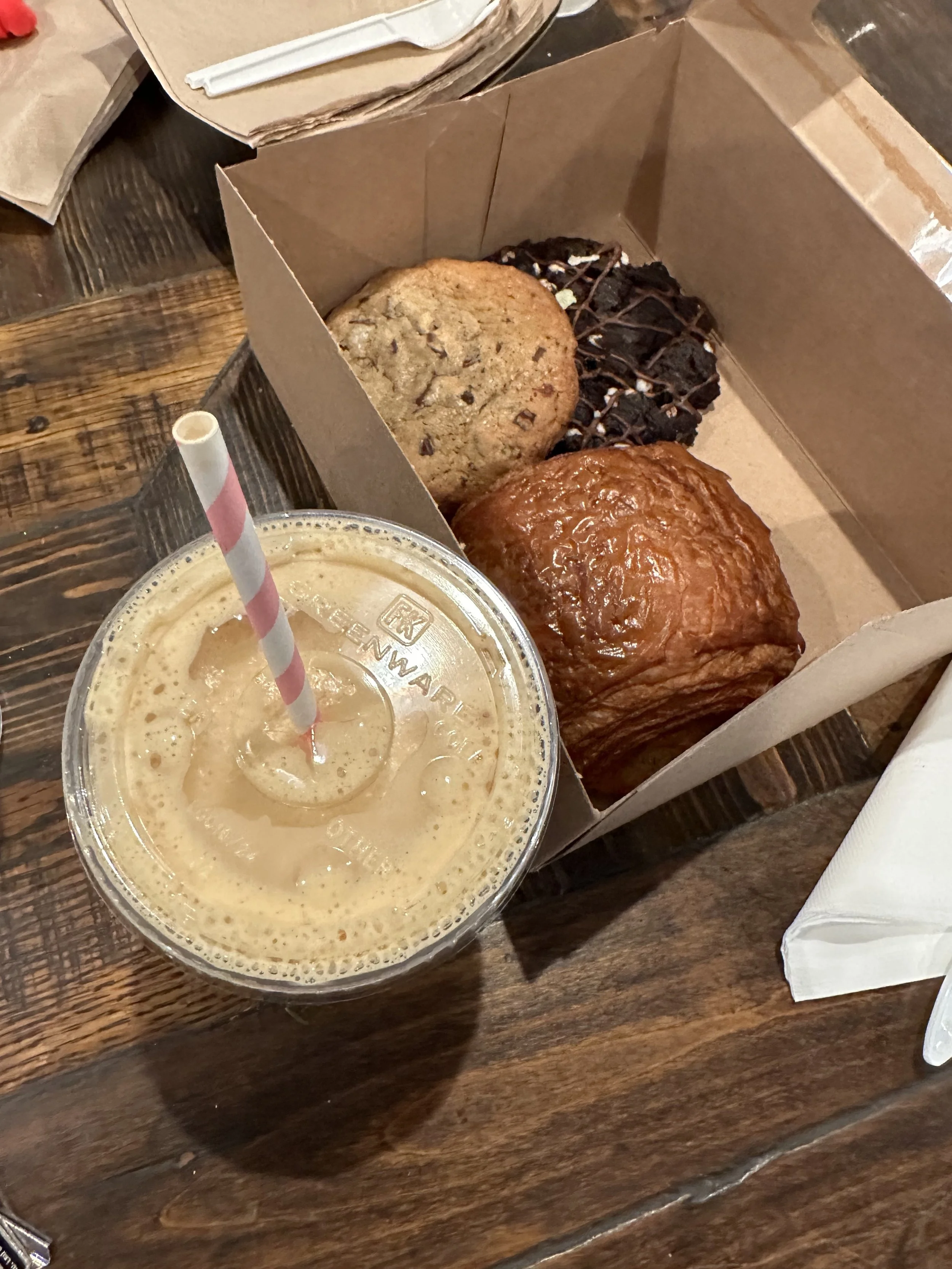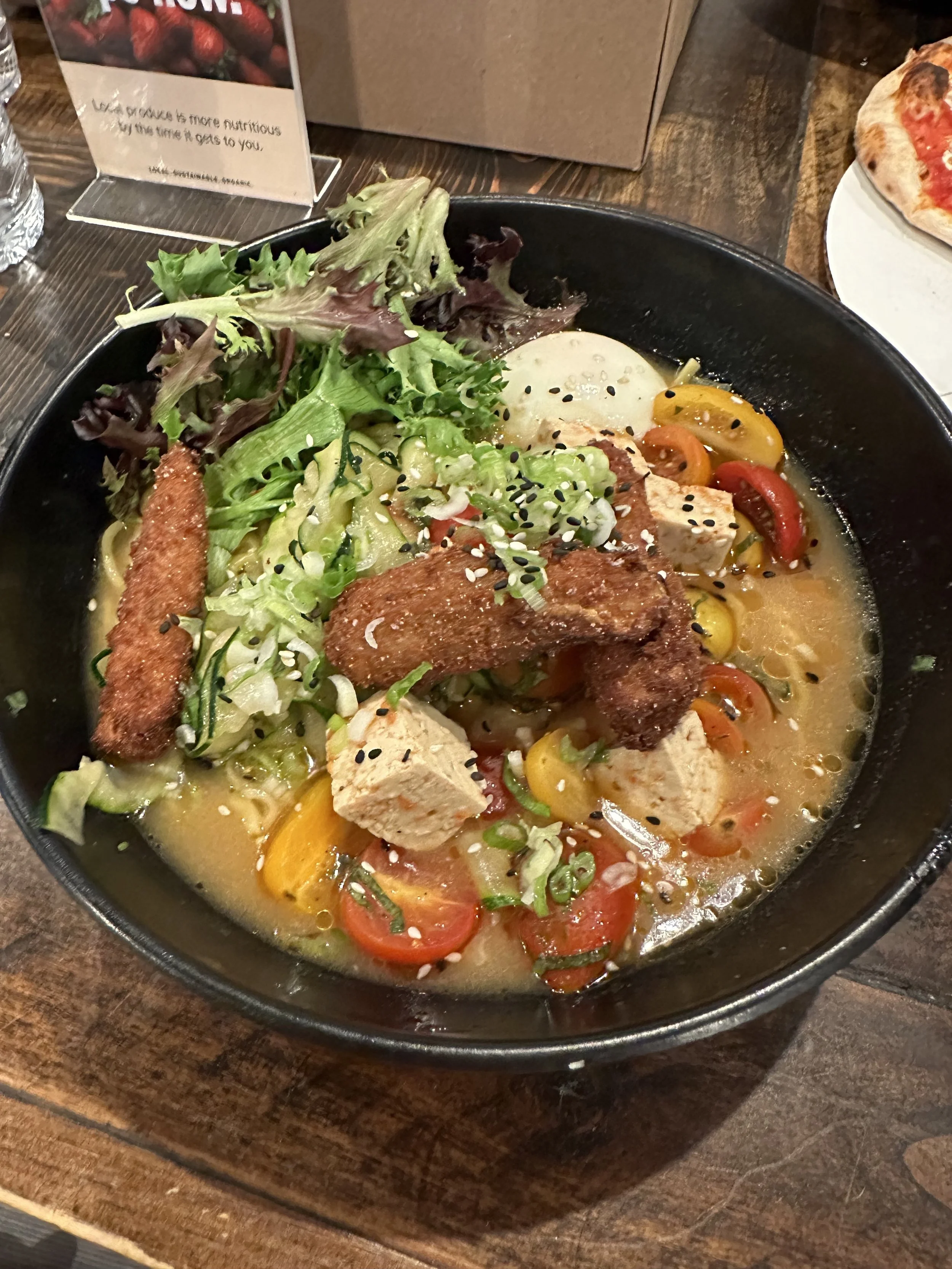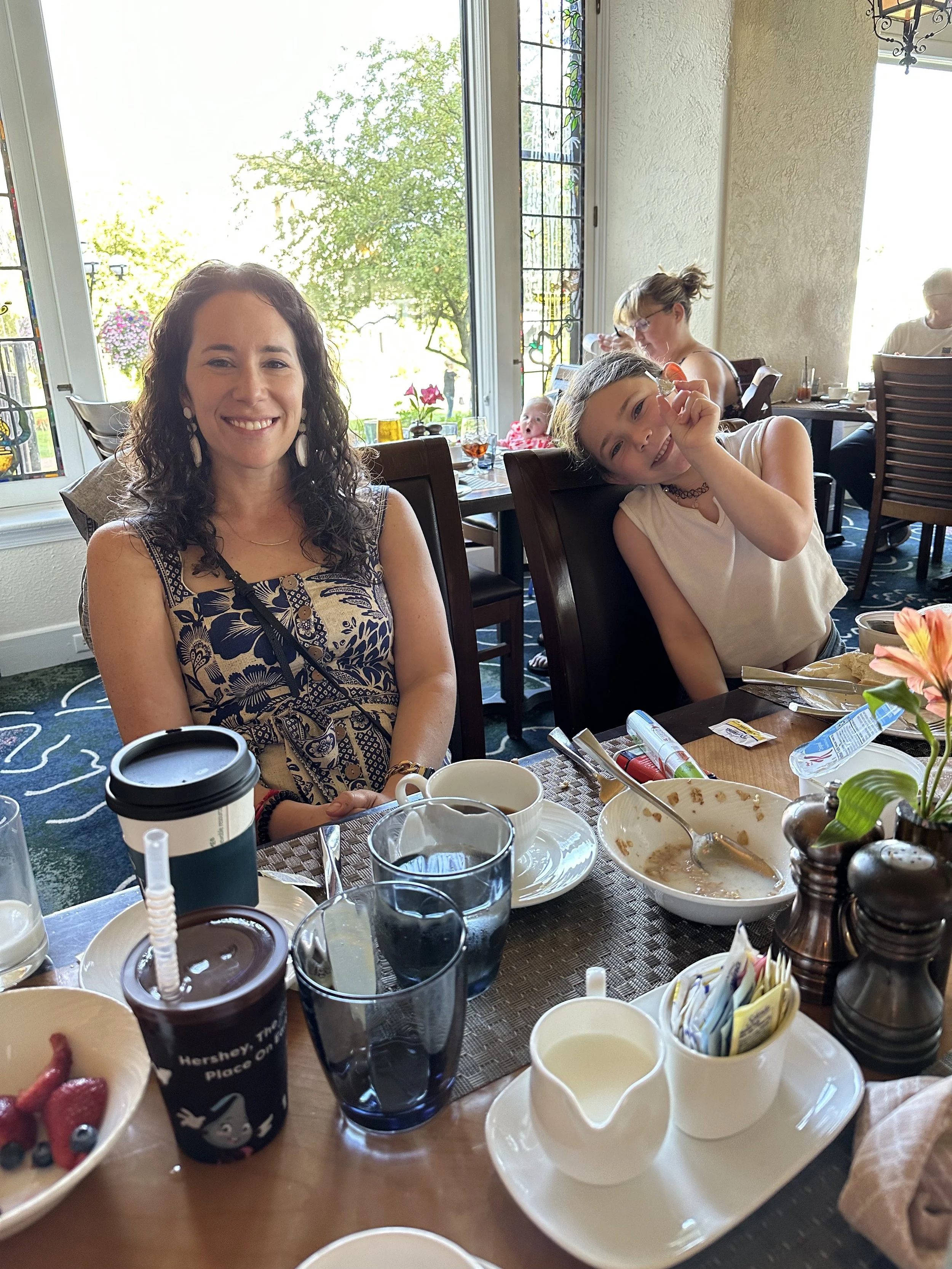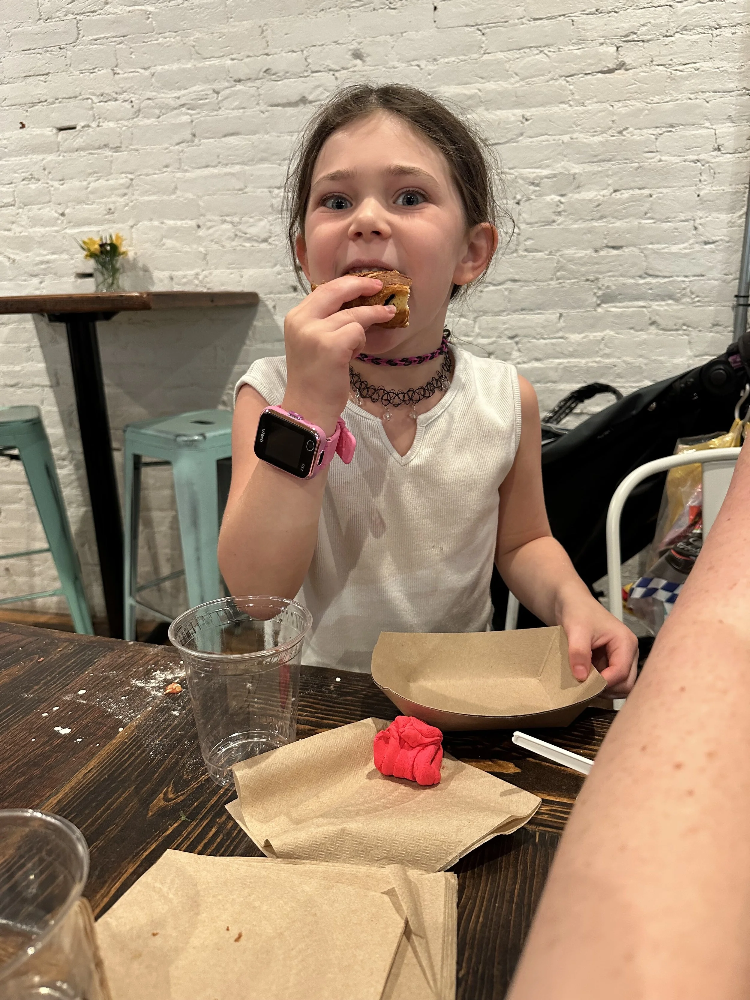 We bought a huge box of crayons and then headed out because everyone was hungry. Easton is a lovely little town. We went across the street to the Easton Public Market, a great food hall with a lot of options. We got pizza for the kids at a place called Scratch, because it would be a crime for them to go a day without pizza, and I had one of the best dishes of my life, a vegetarian ramen from a place called Mister Lee’s Noodles. [Tzvi: Someone call the New York Times. Tomorrow’s headline: “White Lady Discovers Asian Food.”] It was delicious and loaded with veggies and egg and tofu. Tzvi had a tomato ramen that had fried eggplant and mozzarella. We also got cookies and a chocolate croissant from a bakery called Modern Crumb, as well as some delicious coffees.