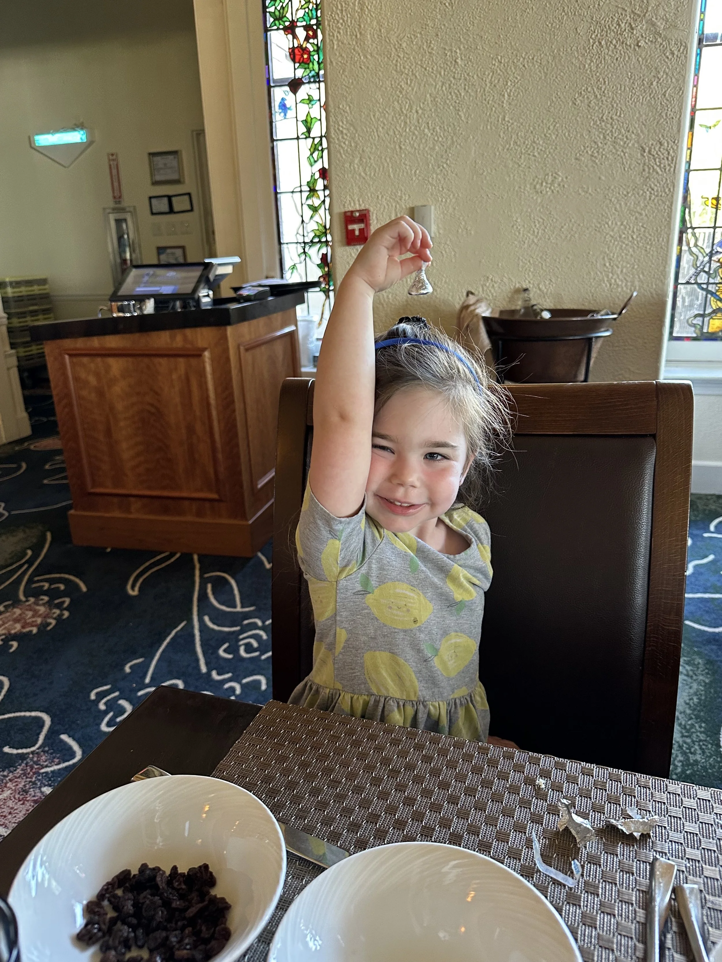 We got veggies and humus and chips and guac, but we didn’t eat a real lunch. When Madeleine finally got out of the pool she was so exhausted she just fell asleep on Tzvi’s lap. Eventually we got her up and headed back to the main building.