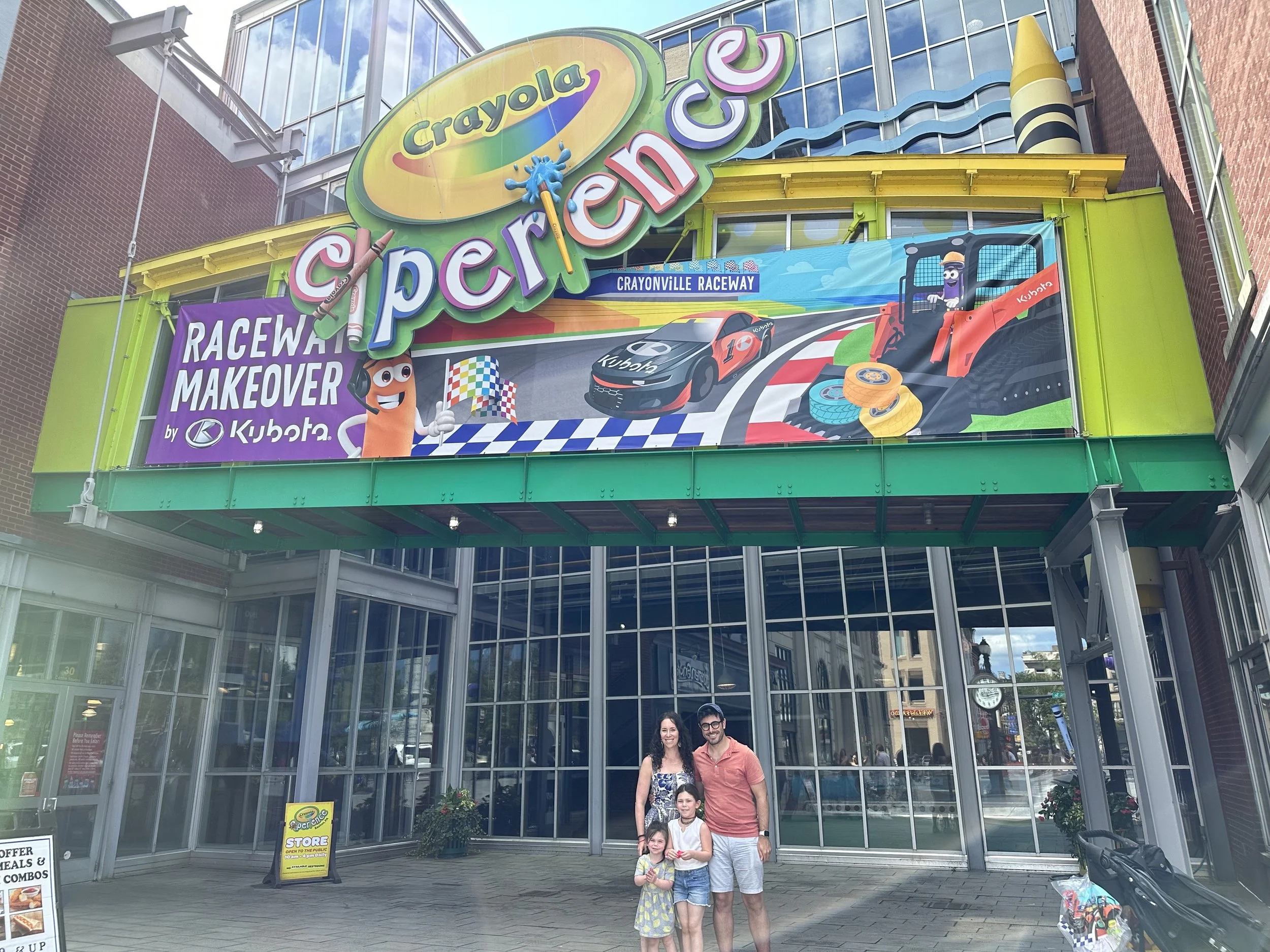 After breakfast we finished packing and headed out. We were on the road by 1030. The kids thought we were just heading home, but we had planned to make a stop in Easton, PA, at the Crayola Experience. Once we were on the road we asked the kids if we should make another stop before going home. Lackluster response. When we told them we were going to Crayola, they started complaining that they just wanted to watch their tablets and drive home. “I don’t even use crayons anymore,” Hallie said.