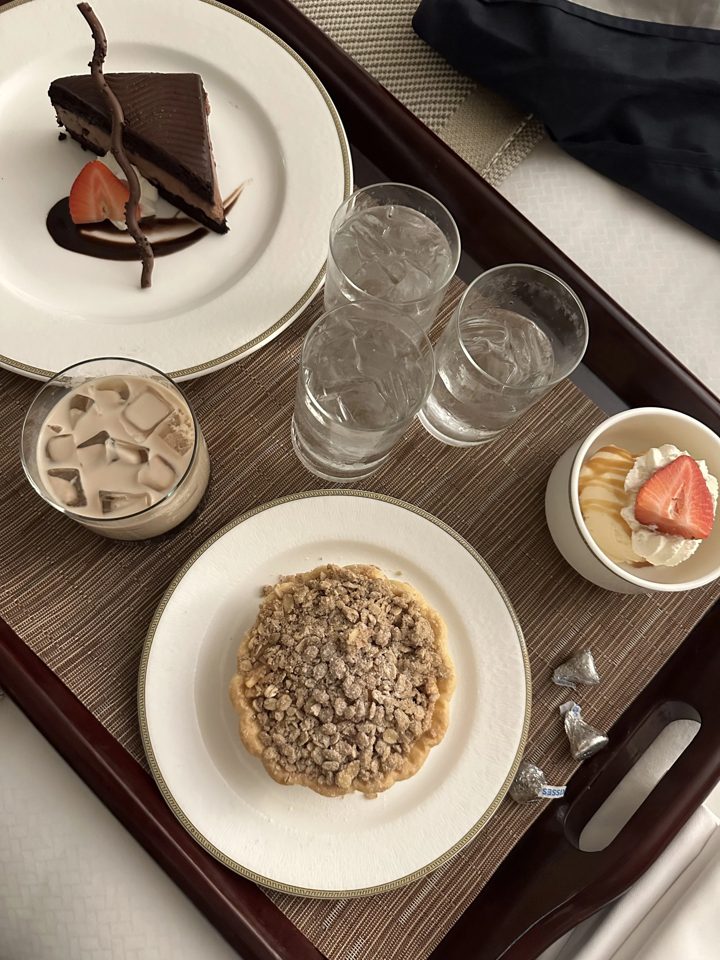 We went back to the room, put the kids to bed and ordered room service dessert. We had a chocolate cake, an apple crumble, and a Kahlua and cream. All delicious.