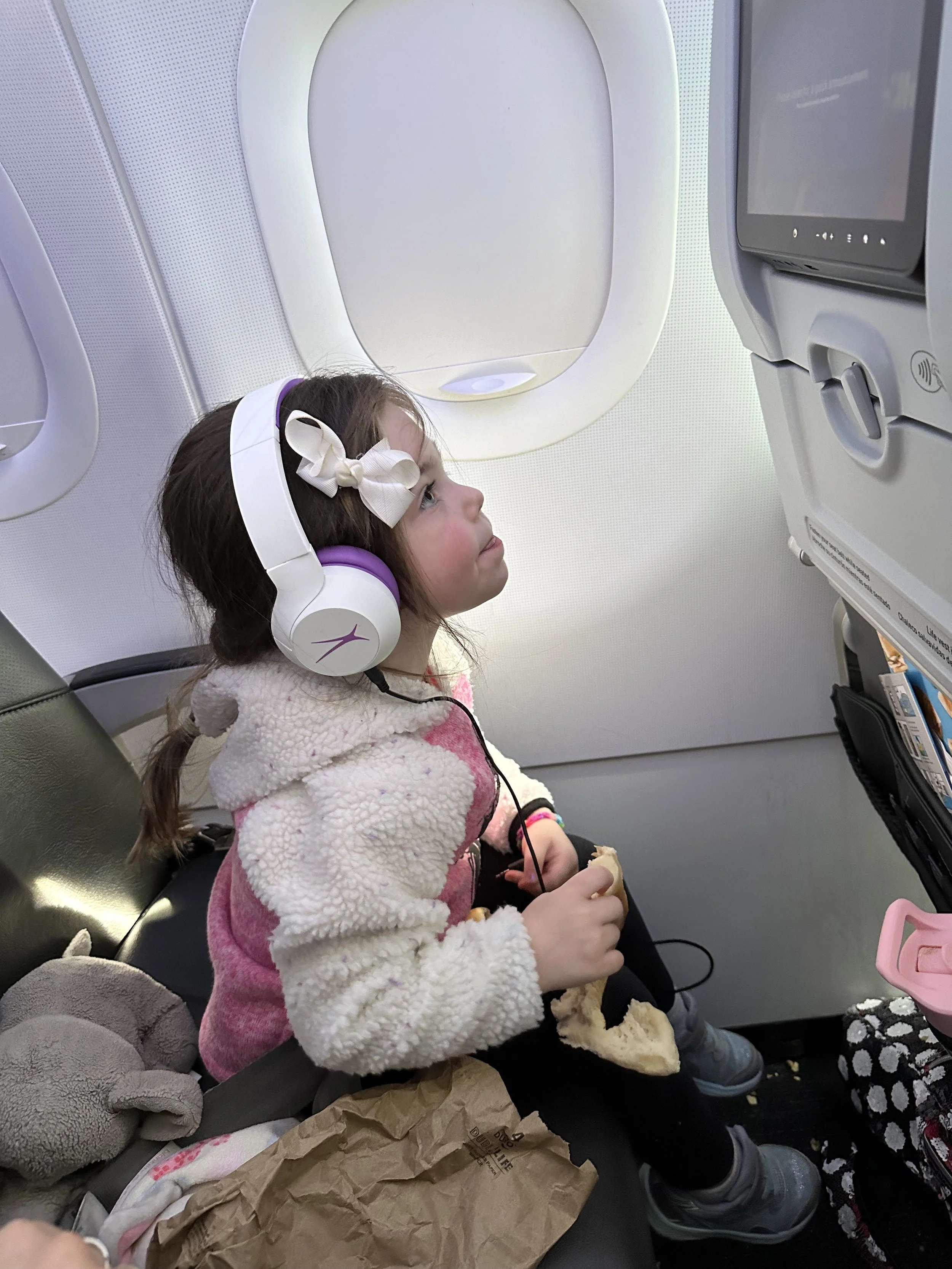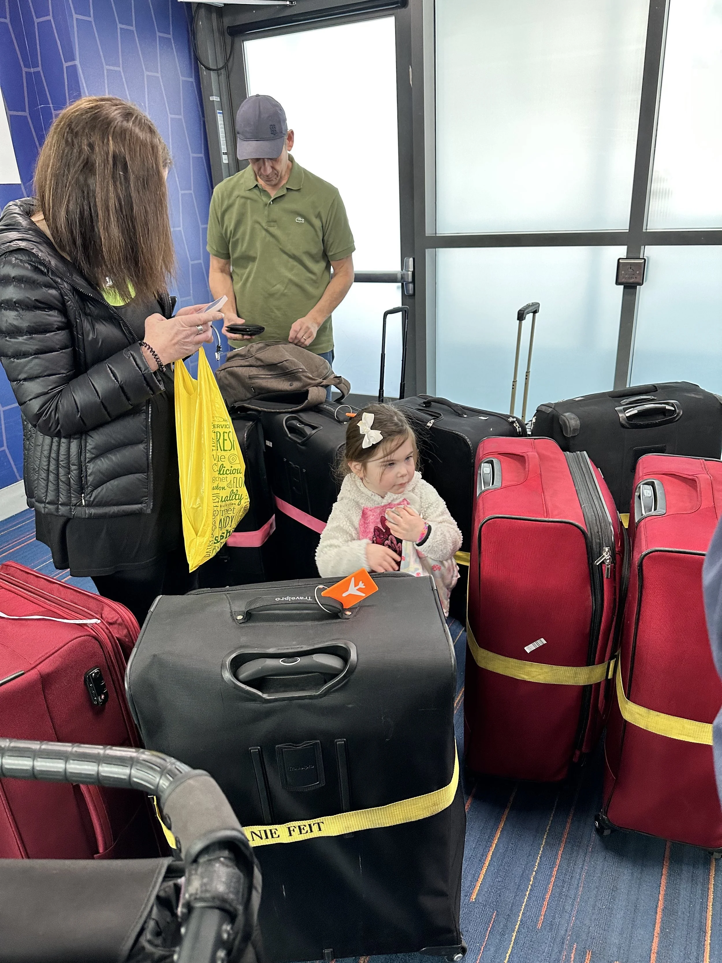 Check in was a breeze. We are Mosaic so we get infinite bags with a 70 lb weight limit each. We took advantage. For some reason Hallie didn’t get pre-check (we think her Global Entry renewal just didn’t kick in yet), so she went with Inbar on the Even More Speed line while the rest of us when through Precheck. If by speed they meant take a half hour, they nailed it. The rest of us got some coffee, snacks, and headed to the gate. They made it to us before boarding.