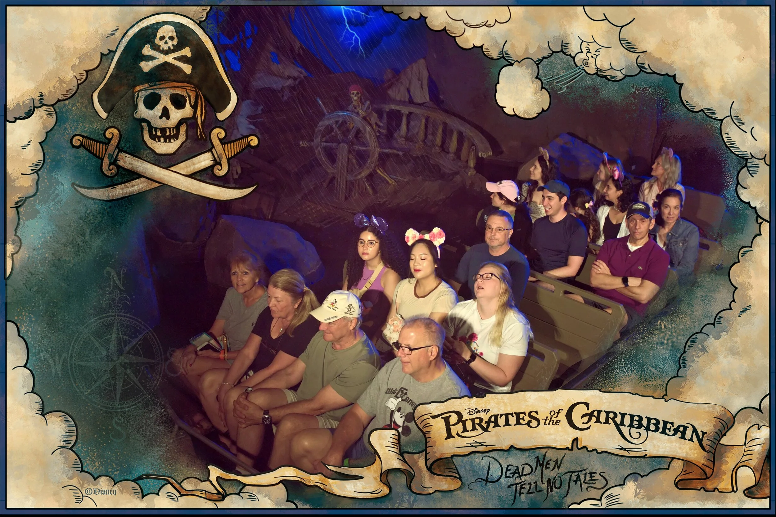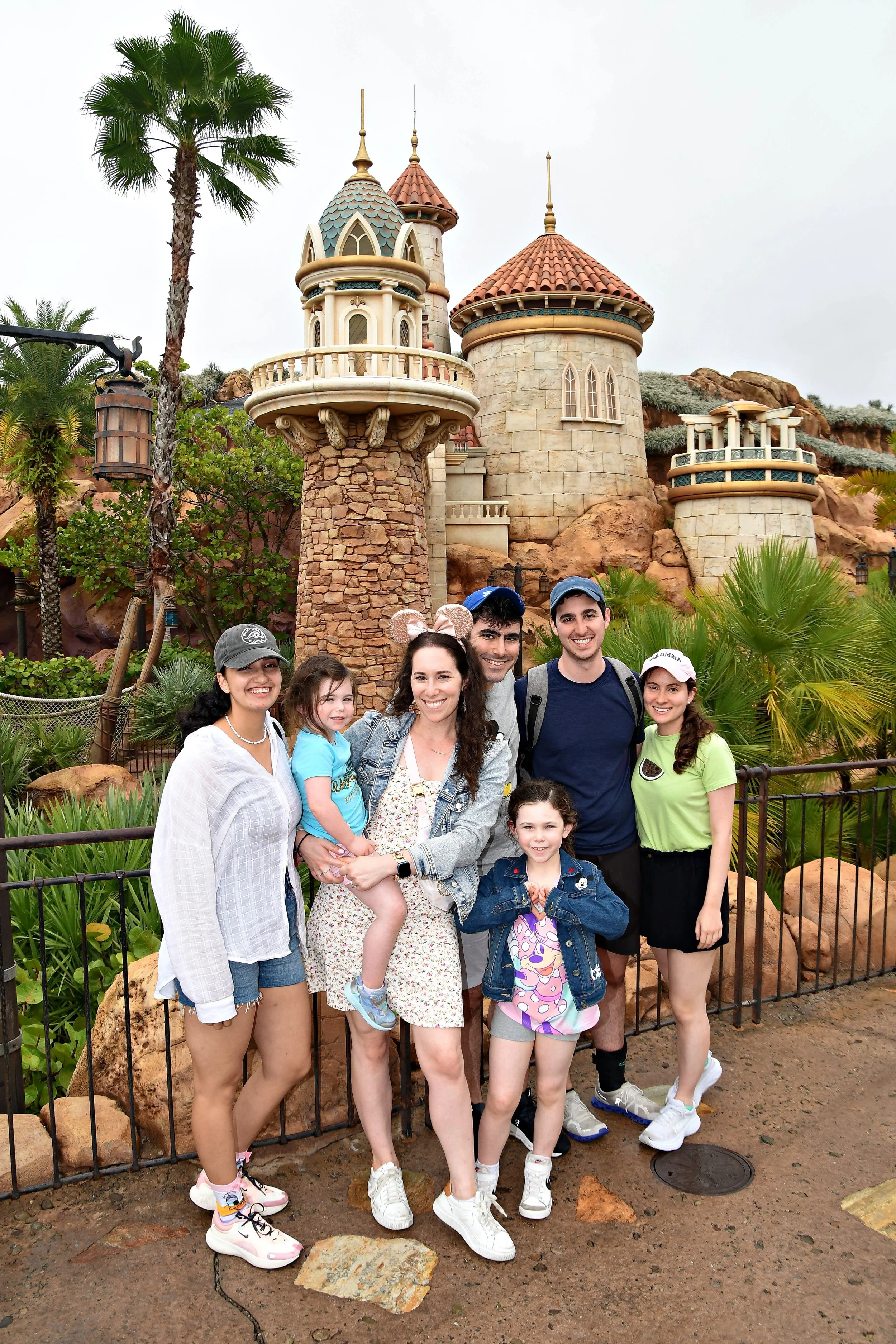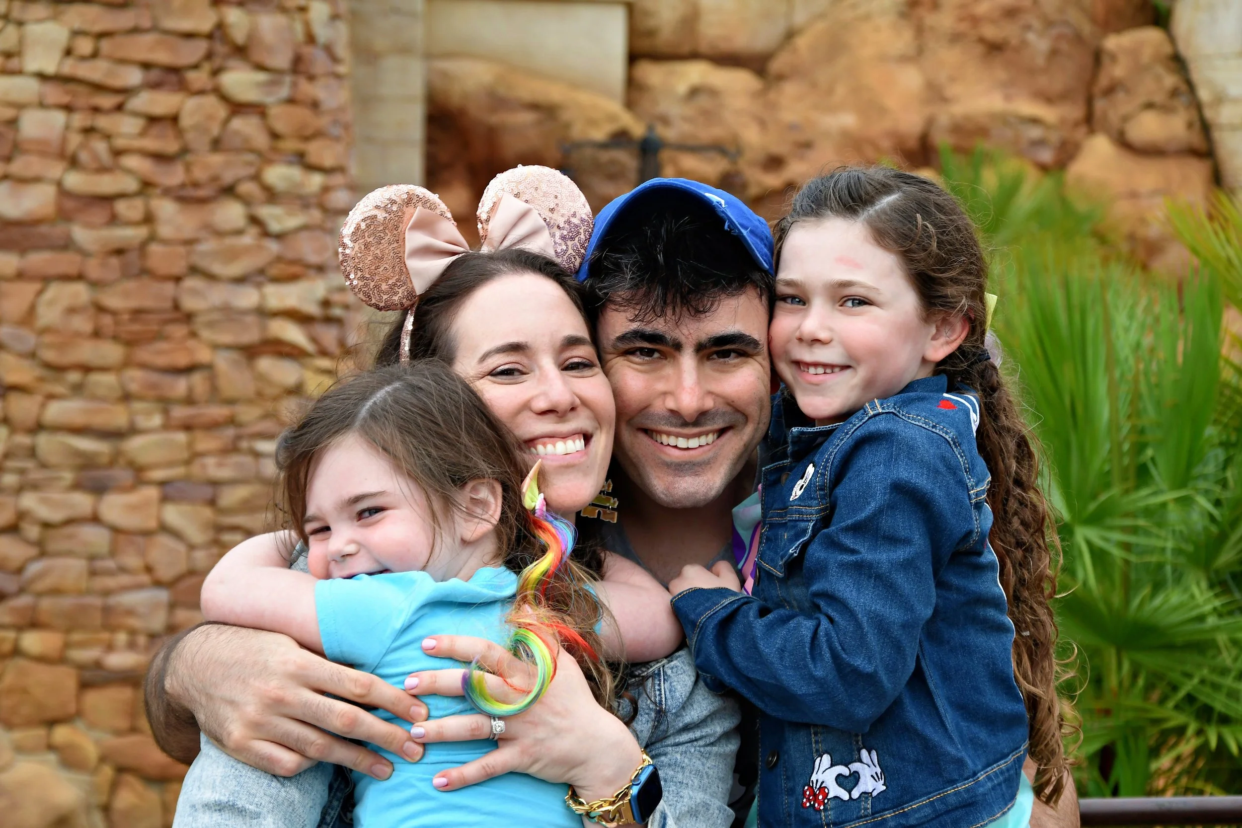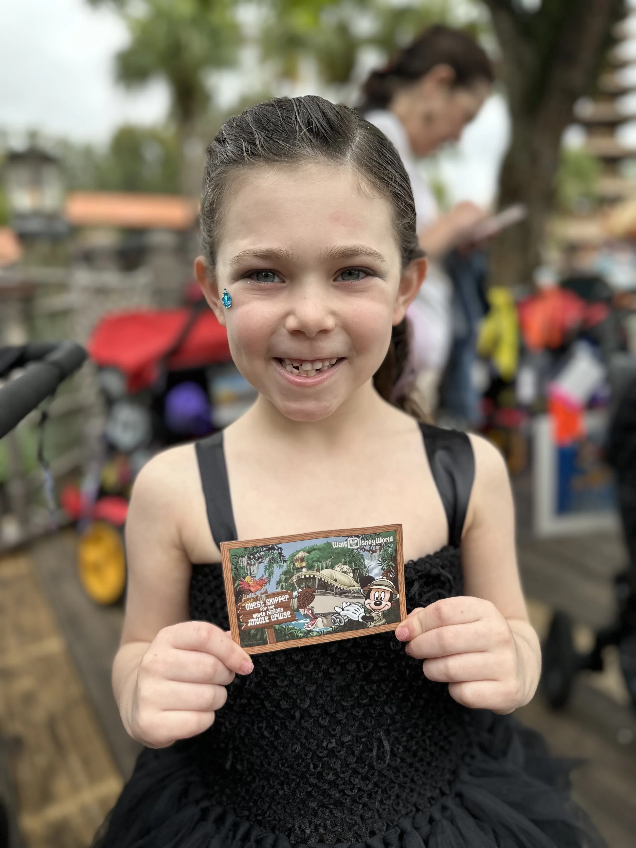 We headed inside, took some castle photos, and made our way to our first ride. Avery, Gabriella, and Inbar went to Peter Pan. Tzvi and I rope dropped that last December, so I’m good for the next decade or so. The rest of us opted for , the Jingle Cruise (normally Jungle Cruise, but they theme it X-mas from November to January). For those who don’t know, Jungle Cruise is a slow moving river boat ride through a fake jungle river. The “skippers” that drive the boats are usually comedians and they narrate the whole ride in a humorous way. For Jingle Cruise, all of the jokes are Christmas themed. Anyway, getting on line my mom spotted a Skipper wearing a kippah. I went over to him to ask him about it and he started telling us that last year, amidst all the Christmas hats another cast member made him a Jungle Cruise kippah. Also, he said that per Disney guidelines, they’re required to have at least one multi-cultural joke in each cruise, so he always did one Chanukah joke, but last year he decided to flip that and do a cruise that’s fully Chanukah themed. He said most of his feedback has been very positive. He took us off the line and commandeered a boat to do his Chanukah version of the cruise for us. It was so nice. Very 1960s, Borscht Belt humor. When we got off we took a photo with him. Thanks a lot Skipper Joey from Philadelphia! Keep up the good work!