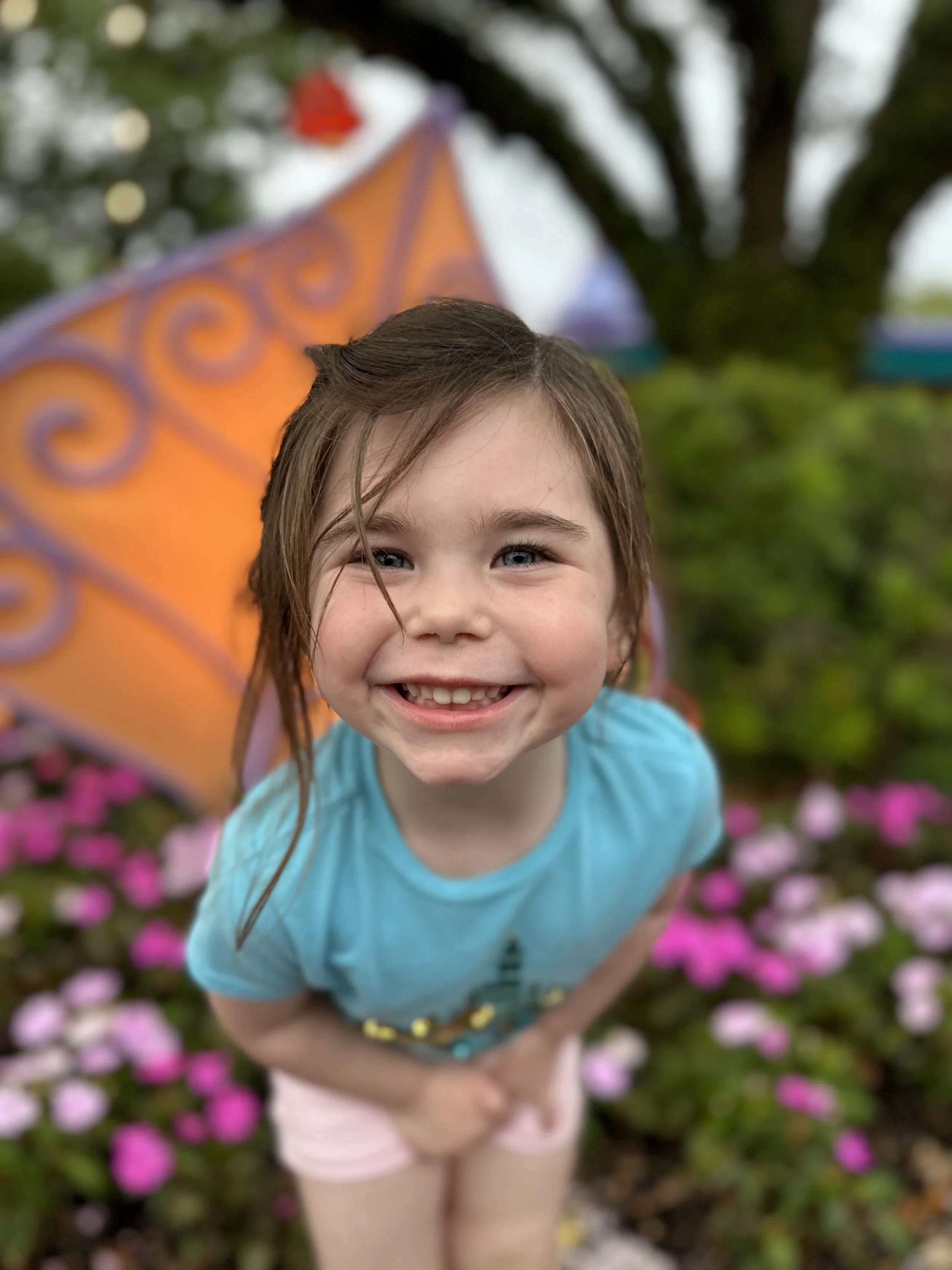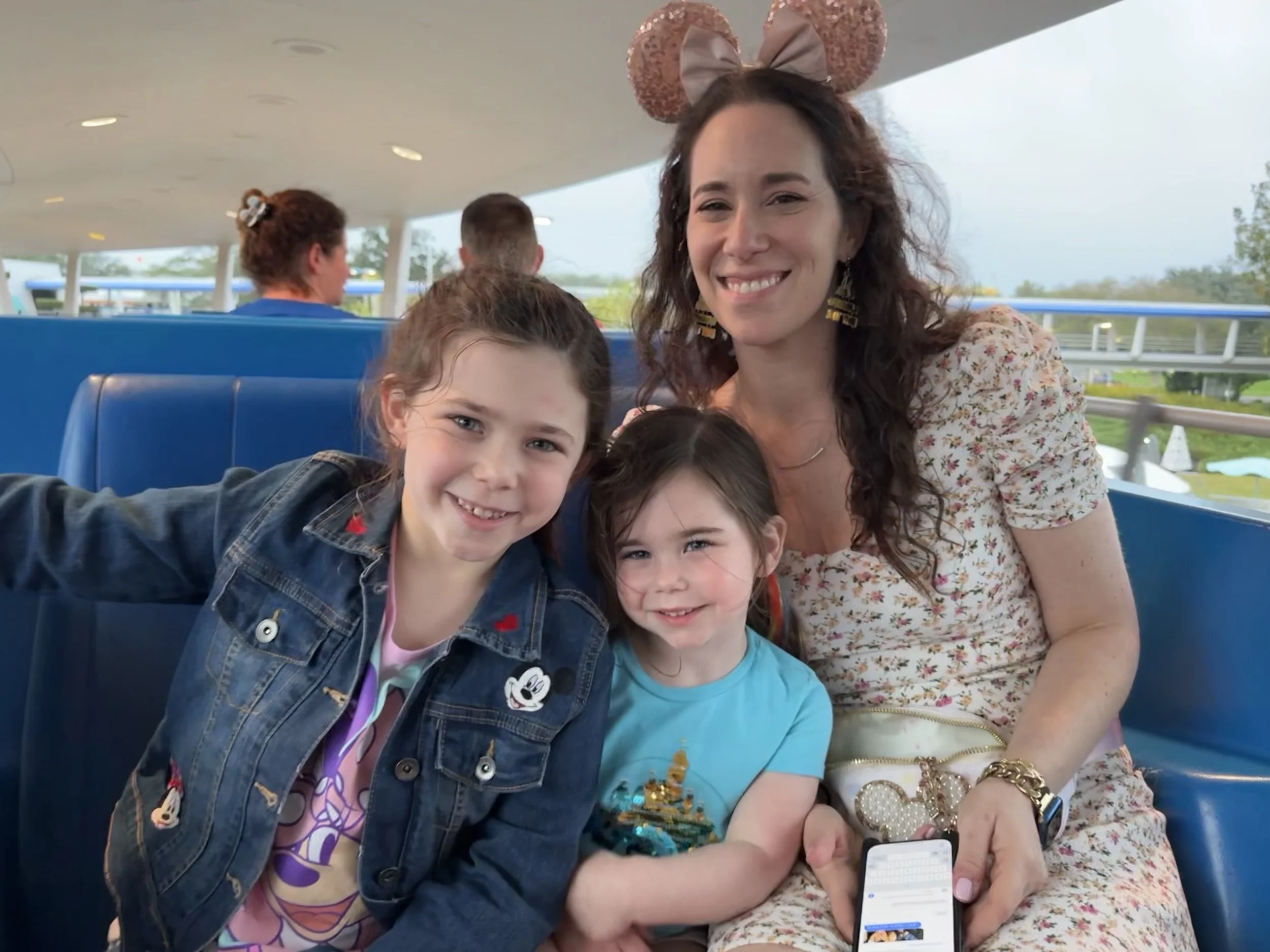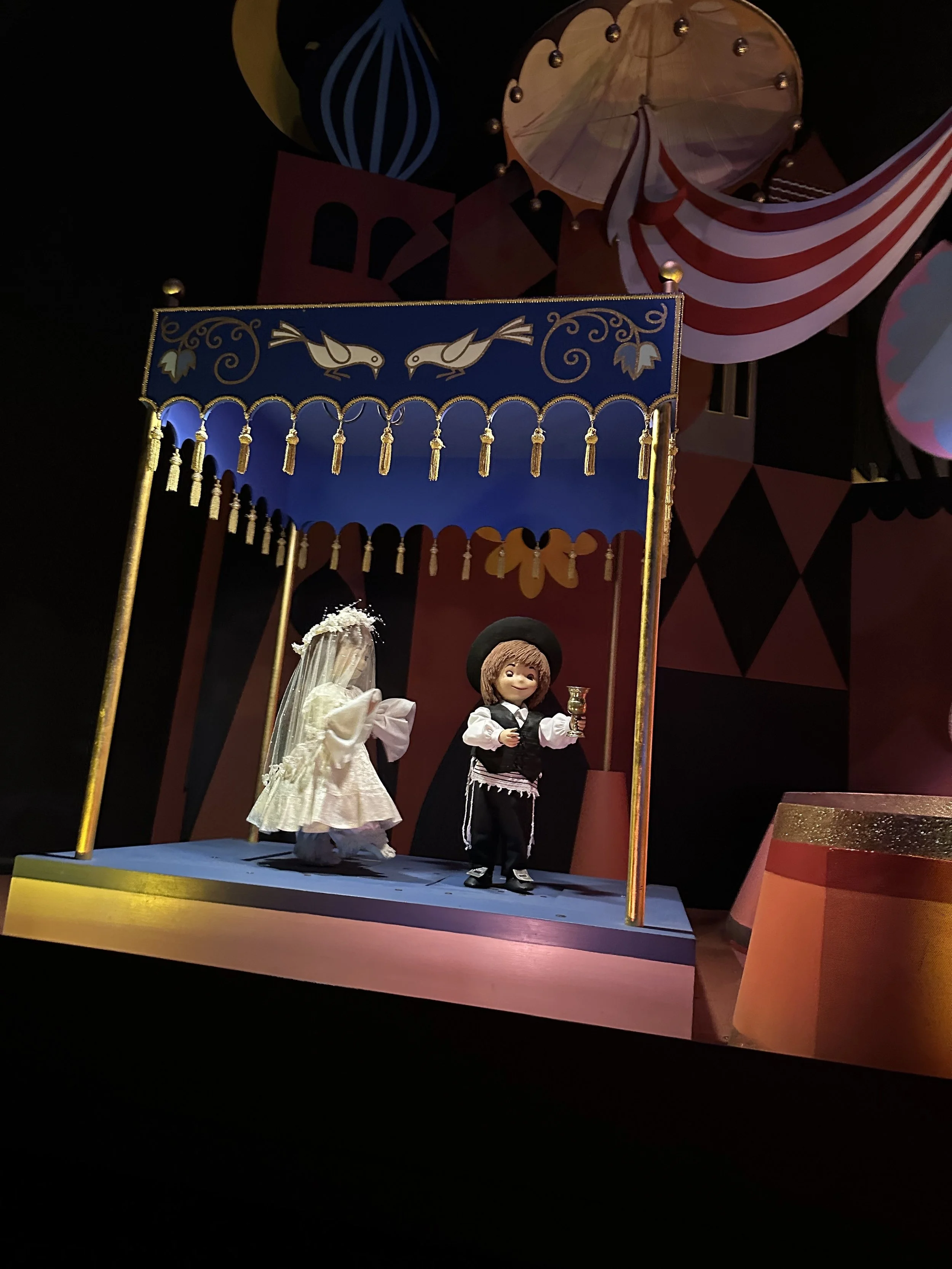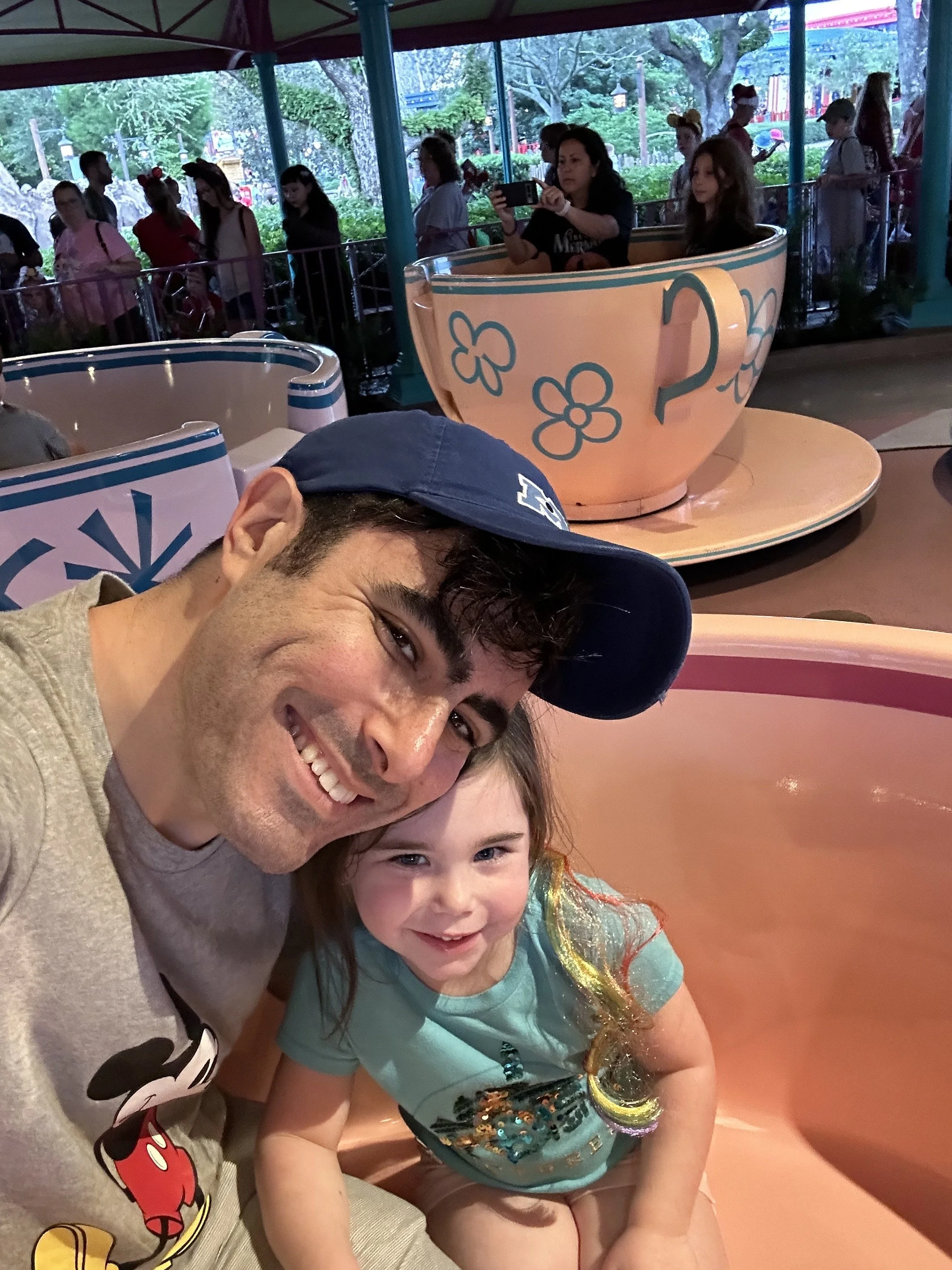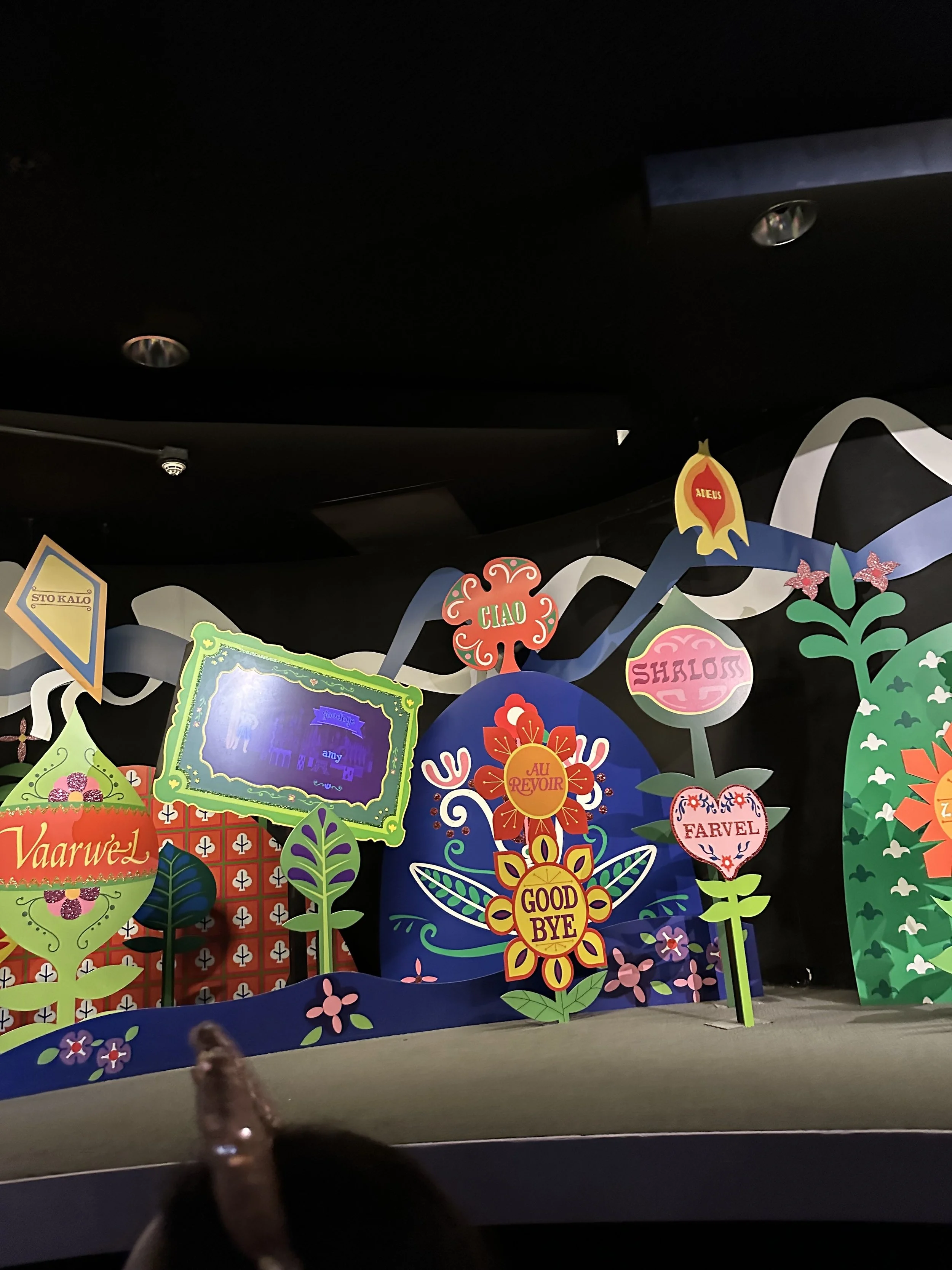 We stopped for lunch (salmon for me, a fish sandwich for Tzvi) and then did Haunted Mansion. It was Hallie’s first time and she was a little scared but ultimately loved it. As we walked out of Haunted Mansion it started to rain, so that was pleasant. Like everyone else, we headed over to Small World where there was a long, but covered, line. Madeleine loved it. We got some Mickey Ice Cream Bars, then went to Philharmagic, which was great, especially the addition of Coco.