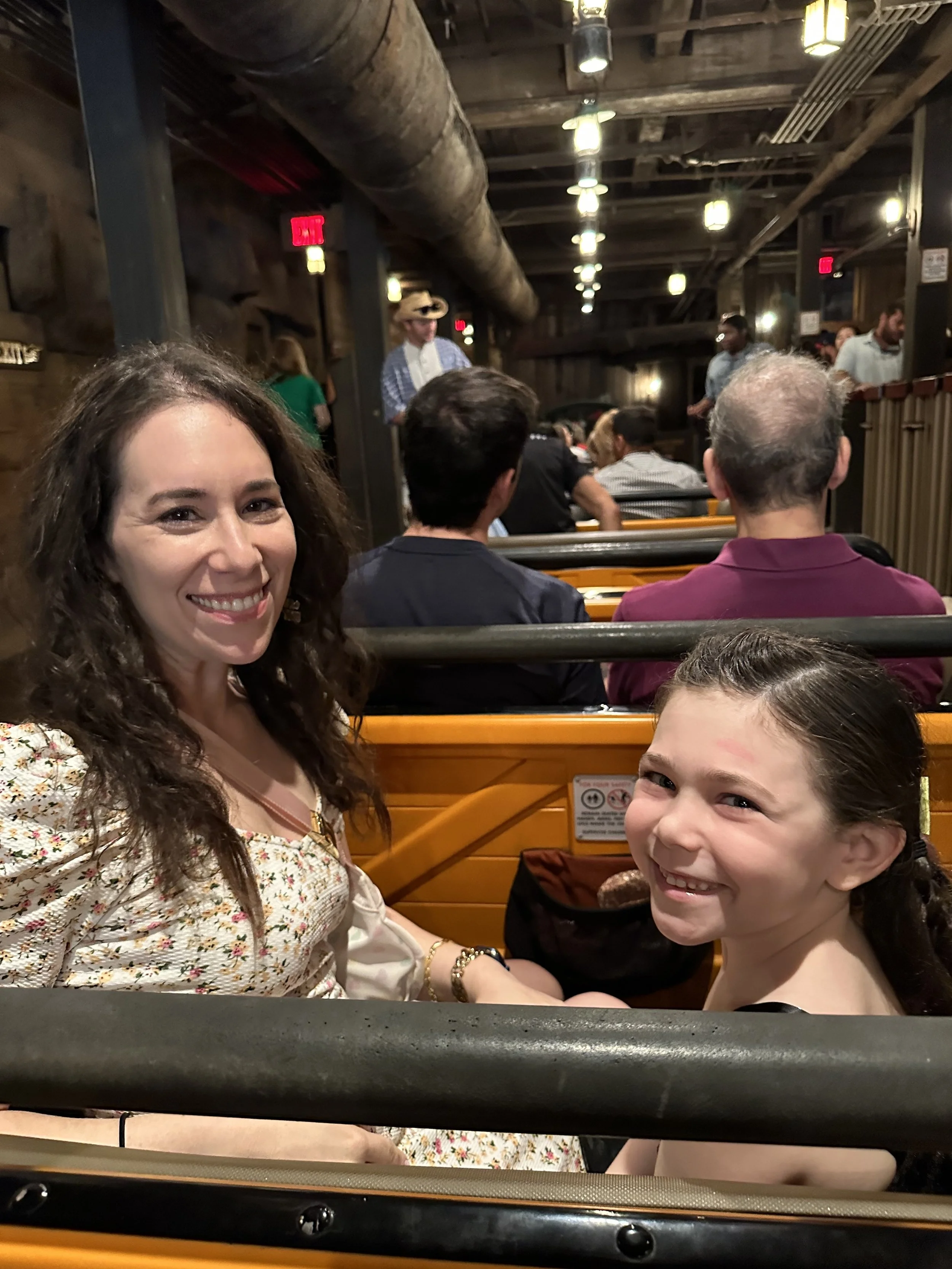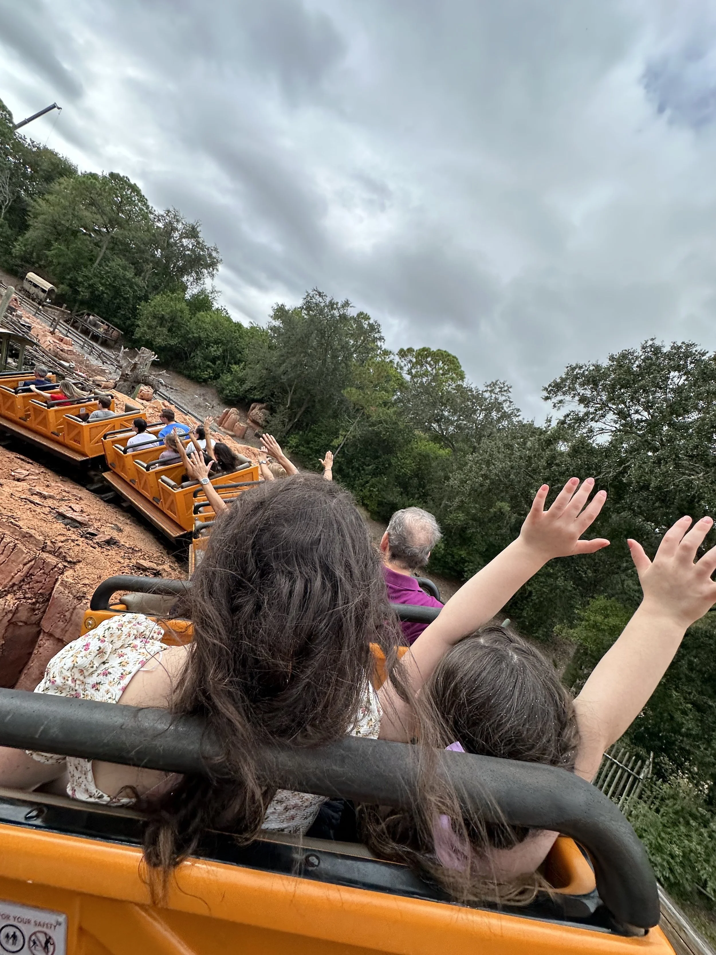 From there we headed to Pirates, except Madeleine was too scared so Tzvi stayed off with her and somehow by the time we got off Pirates Madeleine had a new Mickey Mouse light-up bubble wand. Then we did Big Thunder, which Hallie loved. I love that she enjoys coasters now.