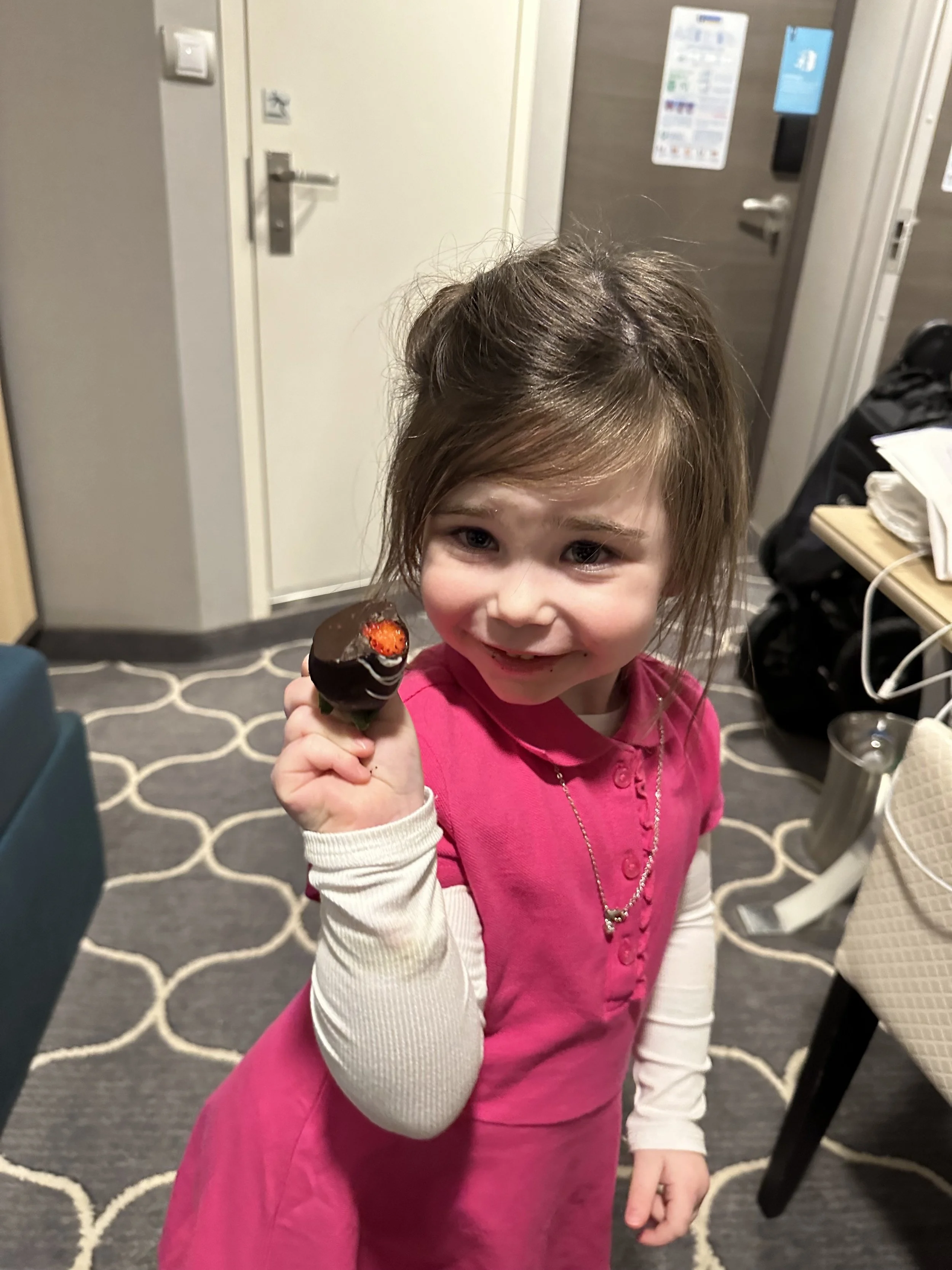 After the show it was bedtime for the girls. We went back to the room where we found they had left us chocolate covered strawberries.