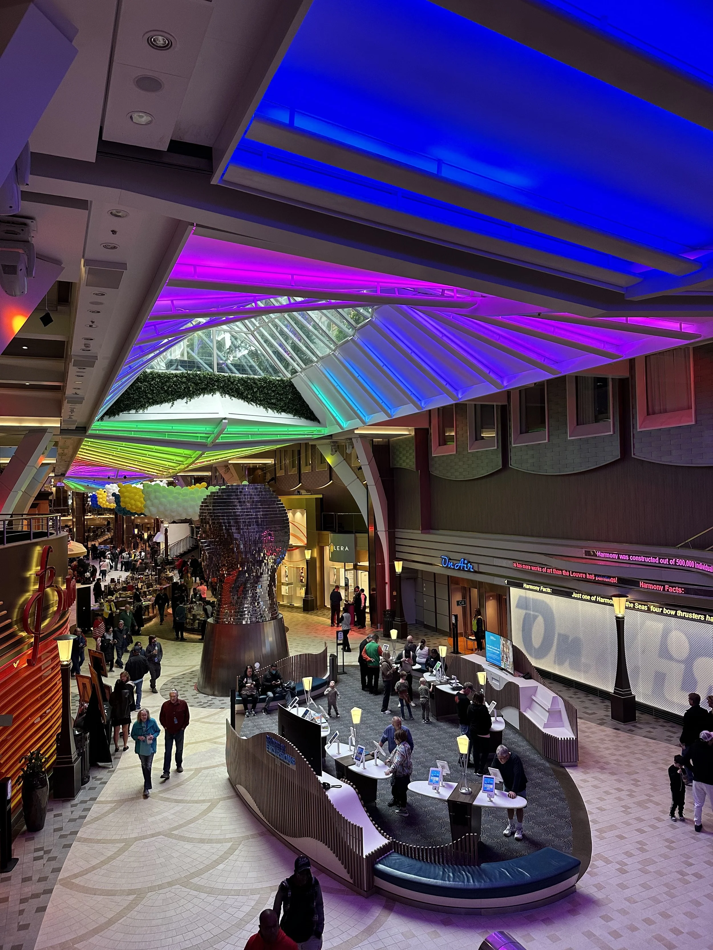 Stepping onto the ship we were immediately thrust into the crowds just trying to navigate the entrance and make their way in. We entered at the Royal Promenade. I remember feeling like I needed to orient myself to the lights and just stepping into this place for the first time.