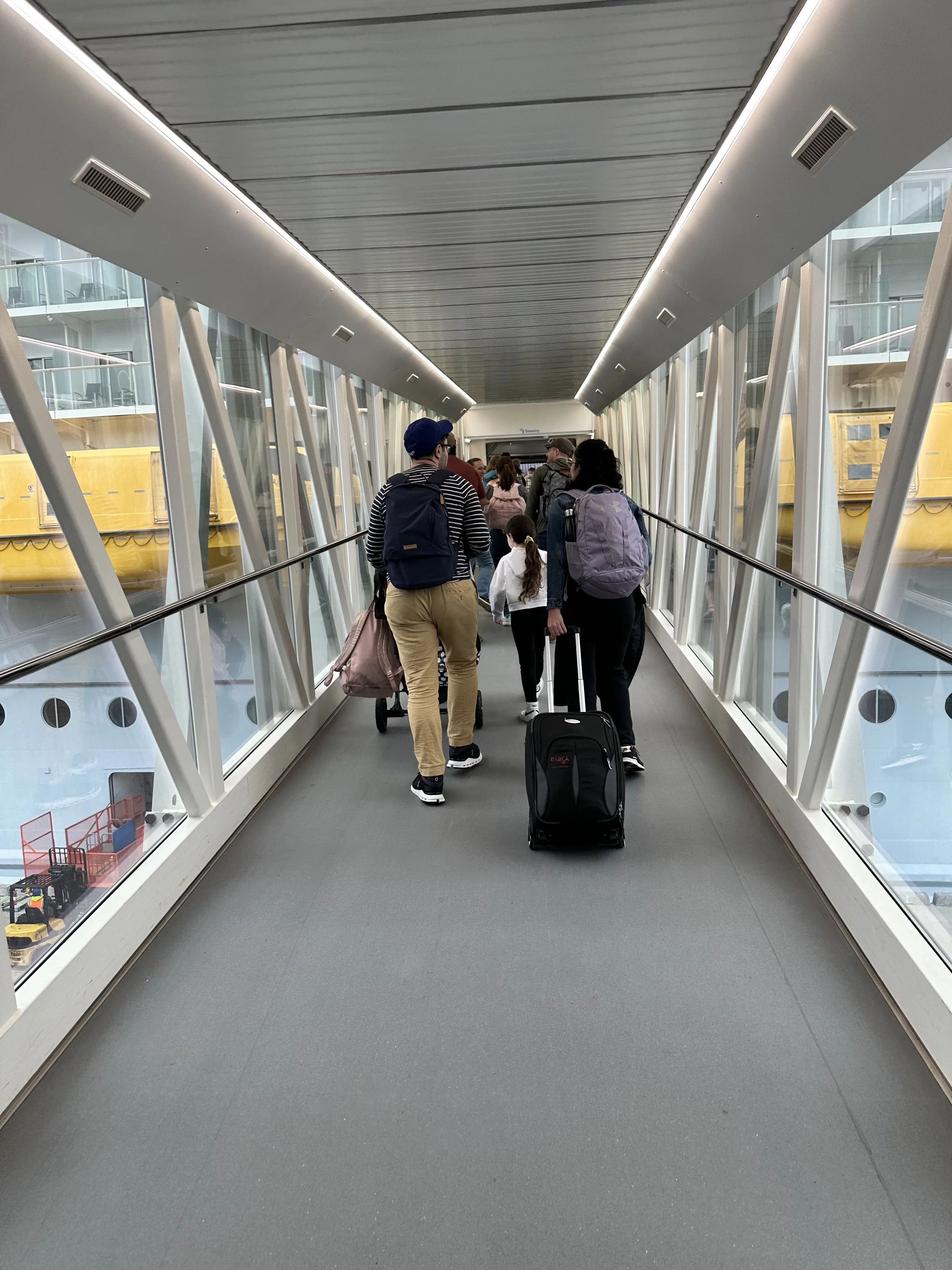 We walked forward, kind of stunned, kind of confused. We crossed the length of the terminal, scanned our boarding passes and then walked the ramp up to the ship. [Soundtrack from Titanic plays in our heads.] And then we all stepped aboard and started our cruise.
