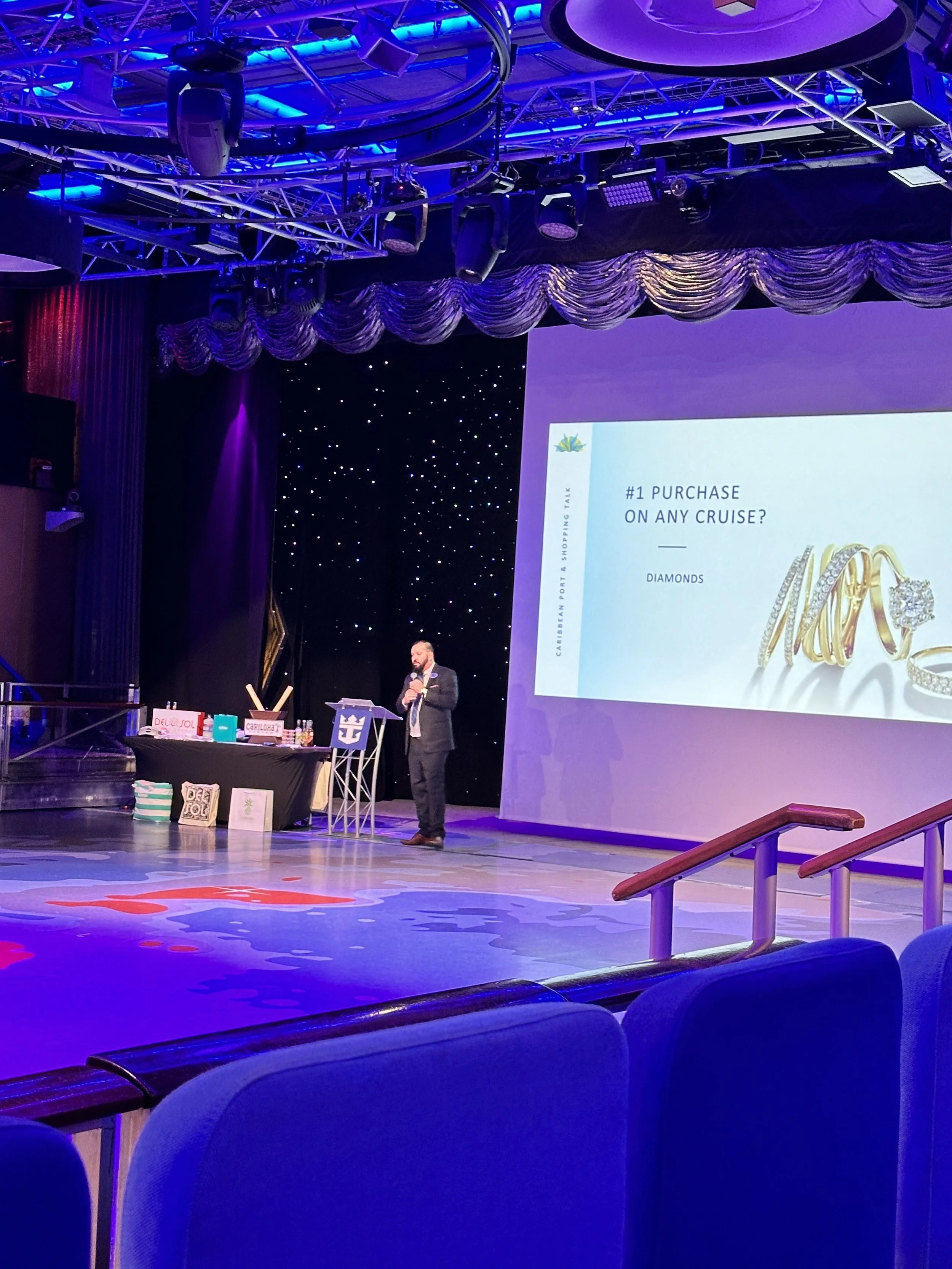 We headed upstairs for our buffet breakfast, but thankfully there was no line. Breakfast was fine. Standard cruise buffet fare. After breakfast Hallie wanted to go to the port shopping lecture, I think because she heard there was a raffle where you could win diamond earrings. I can’t believe it but we actually sat through the lecture for a full hour. In case you’re wondering, the good shopping is in Cozumel and there’s a shopping party from 8:00 - 10am. At the end they raffled off a bunch of prizes and we won! What did we win? “$100 off any photo package!” Amazing, right? Read the fine print: minimum purchase $500. Whomp whomp. I feel like that was one of those things that leave a poor taste in your mouth and you’d never see on Celebrity.