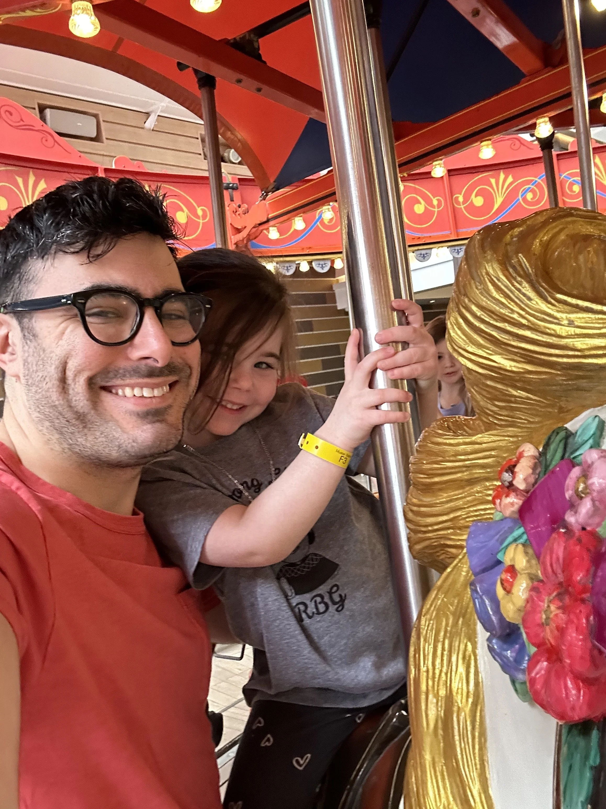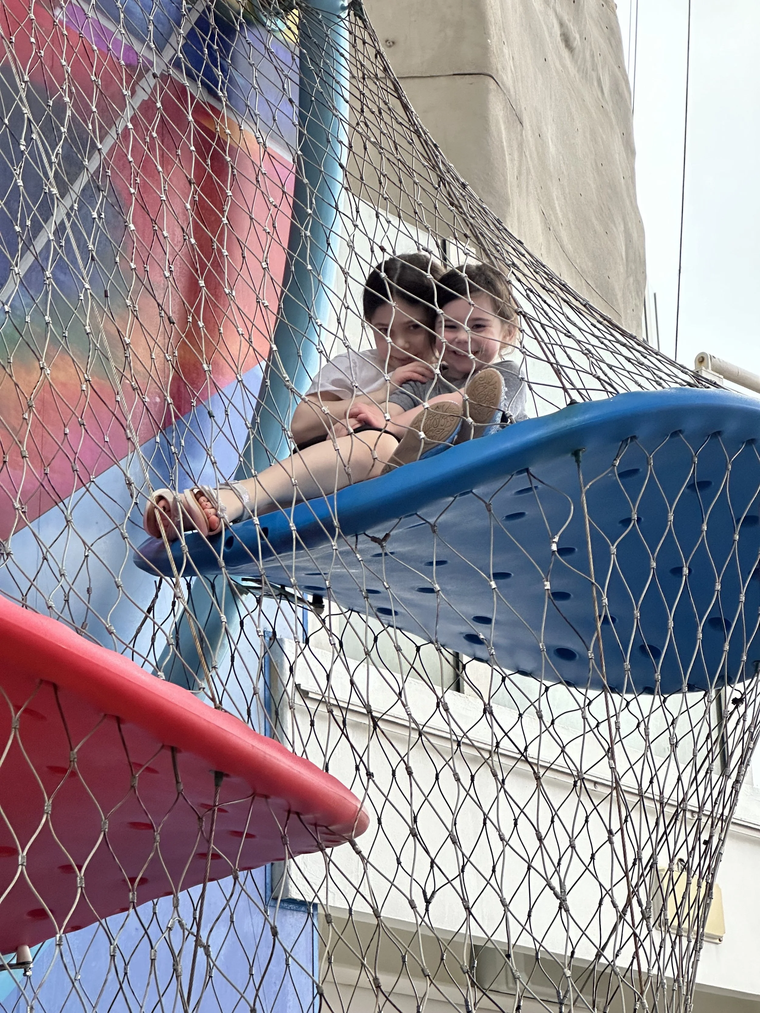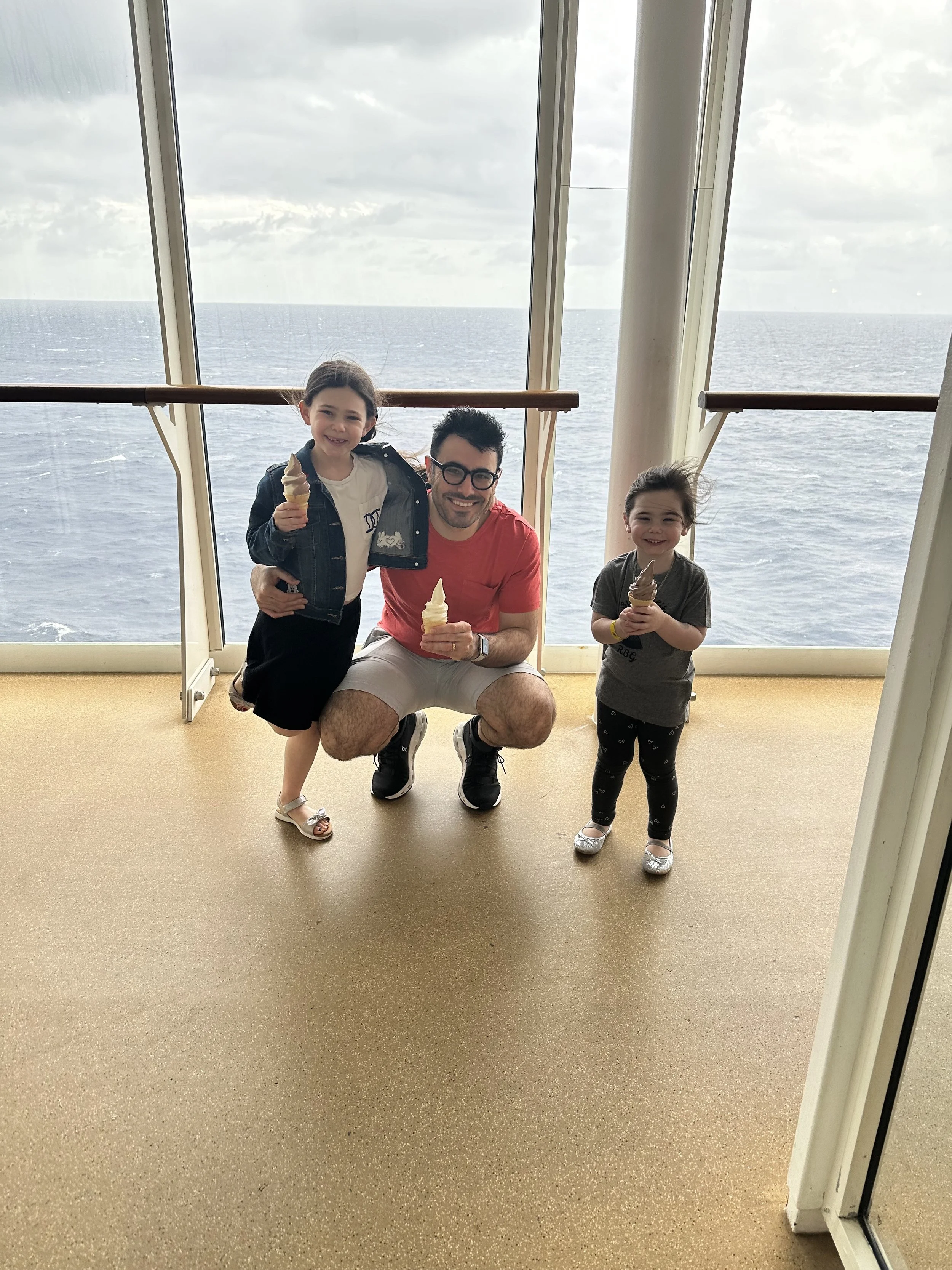 After lunch Tzvi went back to the room to do some work, and Inbar and I walked around the promenade. At 2 Inbar went to a flash mob dance rehearsal (can you really call it a flash mob if it’s on the schedule?) and I took the girls to the kids club. Hallie went in with no issue but Madeleine wouldn’t go. So we just stood outside the door for a while until Tzvi came to relieve me. I saw a Jewish mom arguing with the kids club staff upset that her kids couldn’t be together because they split the groups up by age, which like, duh. What does this mom think? They are going to put the kids together because she wants them to? Like, why? I mean I know I’m entitled, but to observe other people is something else.