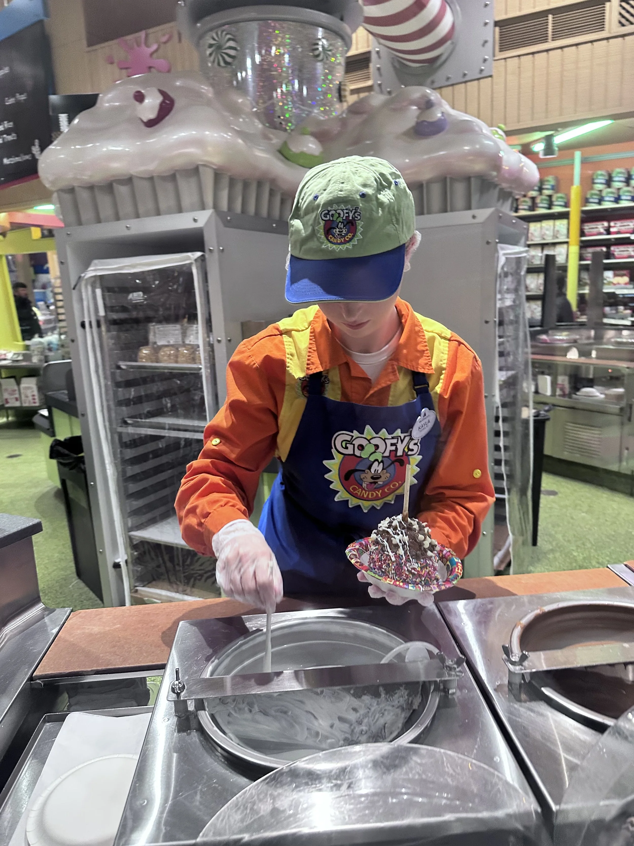 I got a fresh diet Coke from the Coke store, hit Goofy’s Candy Co. for my caramel apple, had our ice cream Sundae’s at Ghirardelli, and then did our final late night shopping at World of Disney. It was great.