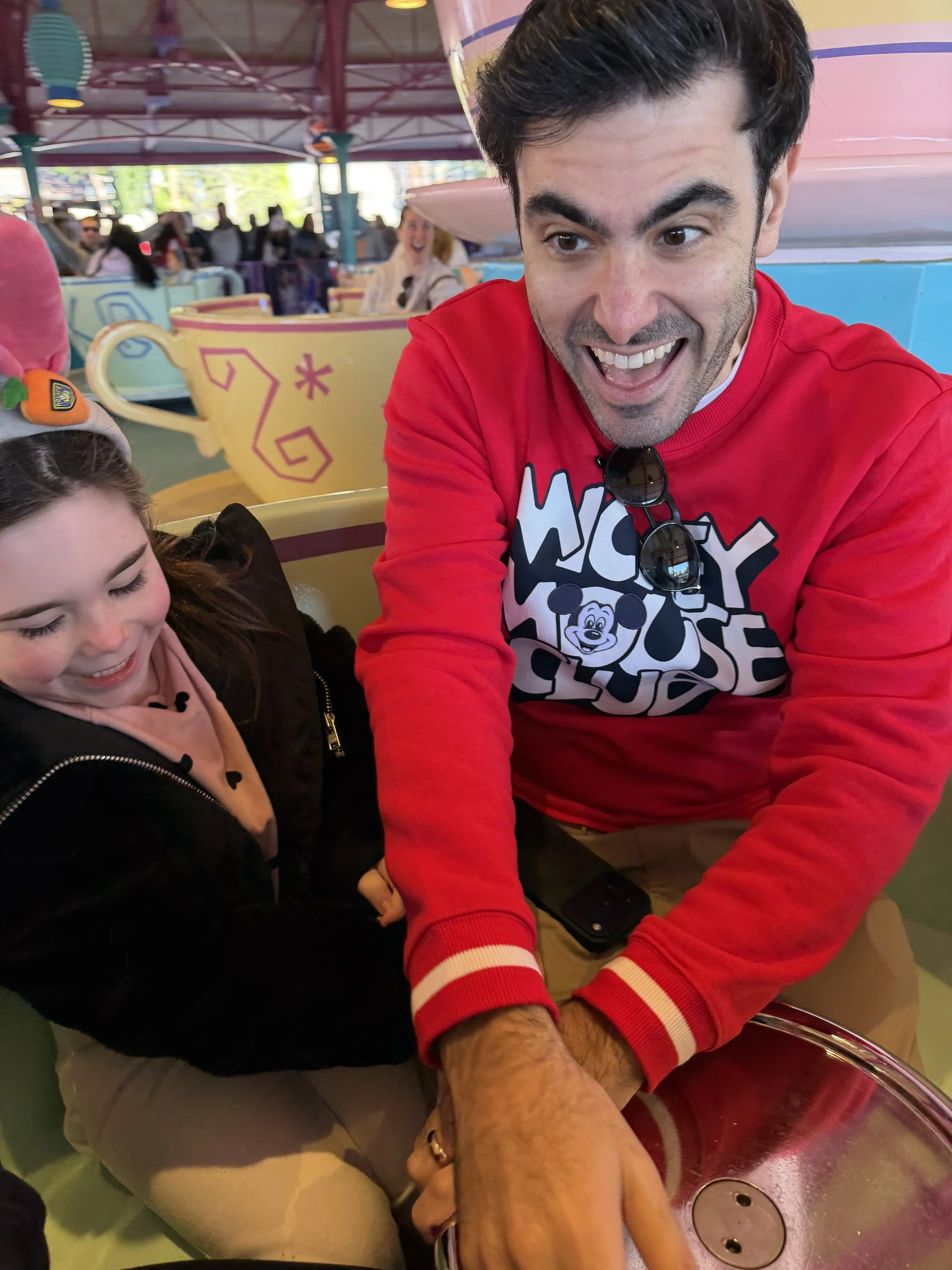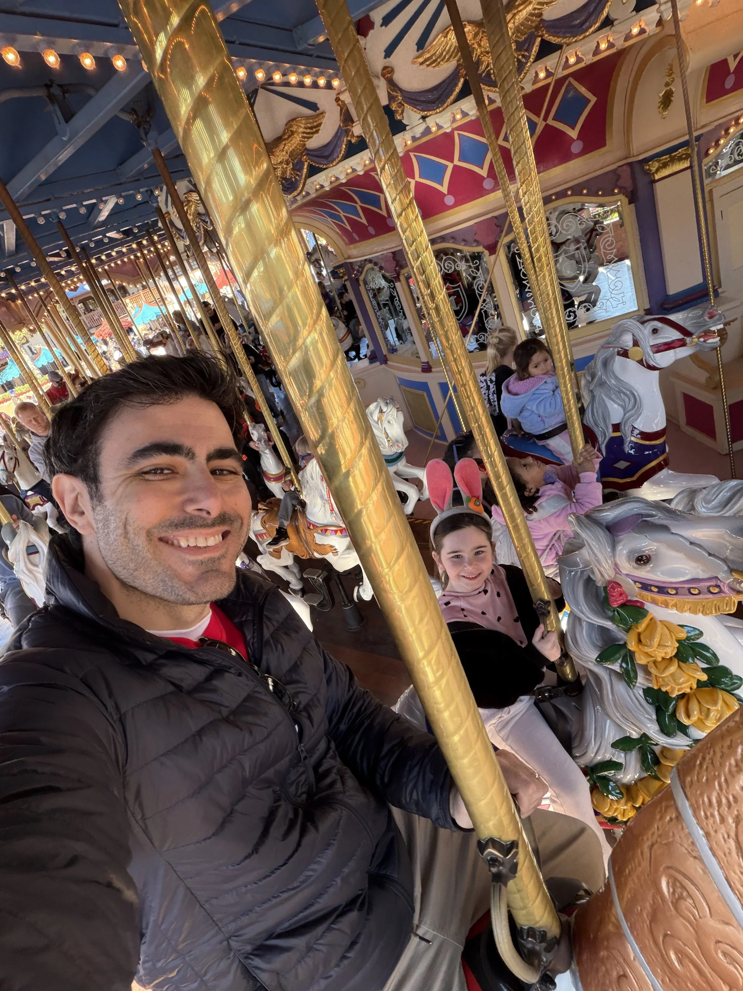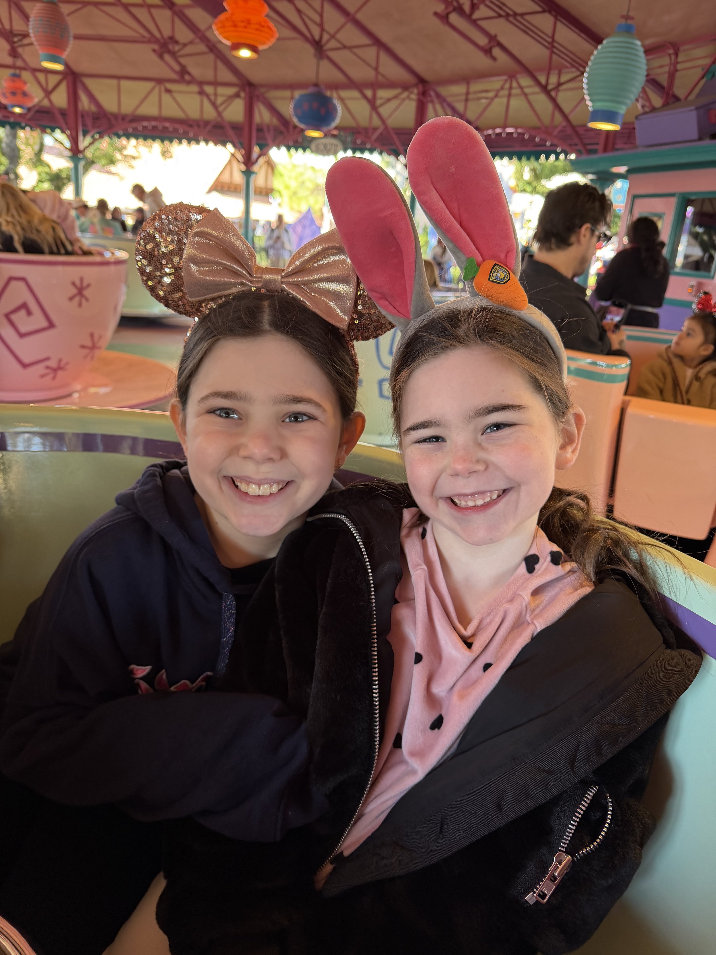 We started in Fantasyland and basically banged out all the rides there—Teacups, It’s a Small World, Peter Pan, Winnie the Pooh, and Seven Dwarfs Mine Train. From there, we headed over to Haunted Mansion. We stopped for lunch at Columbia Harbor House then did a bunch more rides – Little Mermaid, Dumbo. Me, Hallie and Shir went on Tron while Tzvi took Madeleine on the carousel.