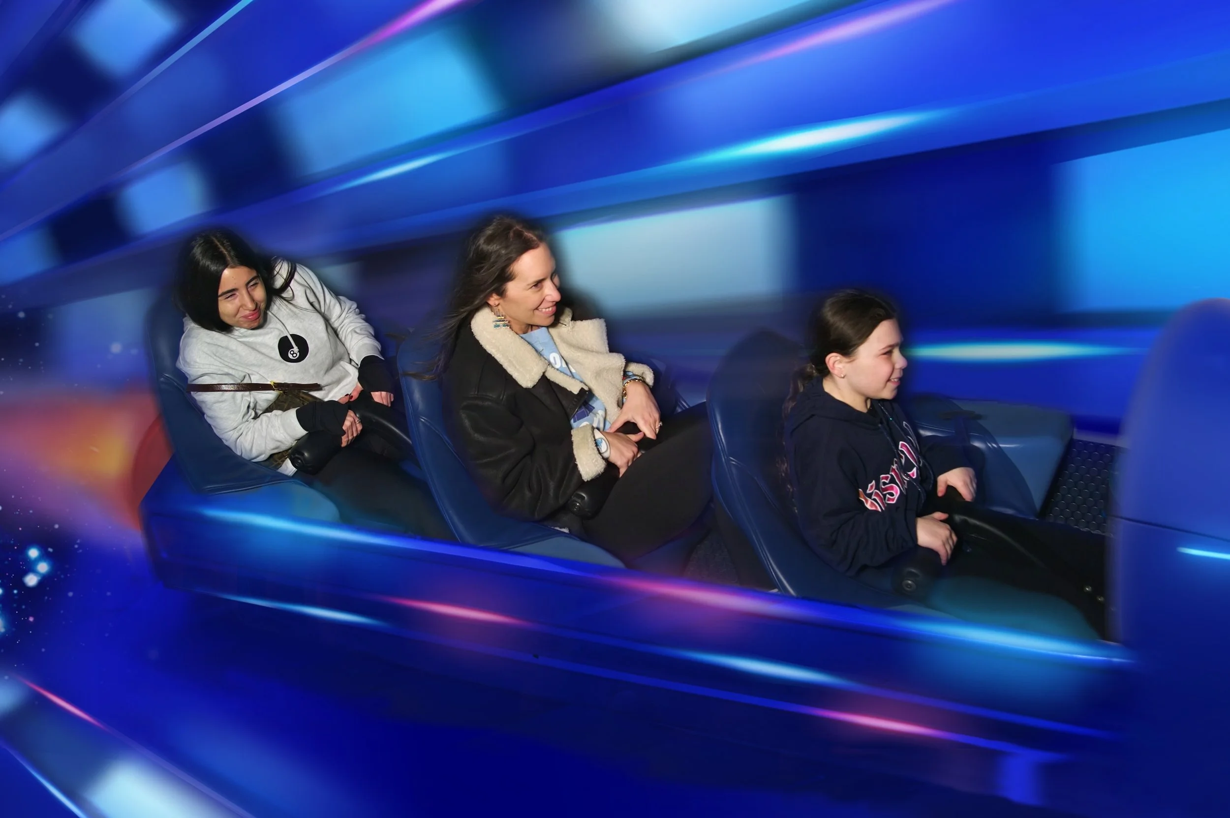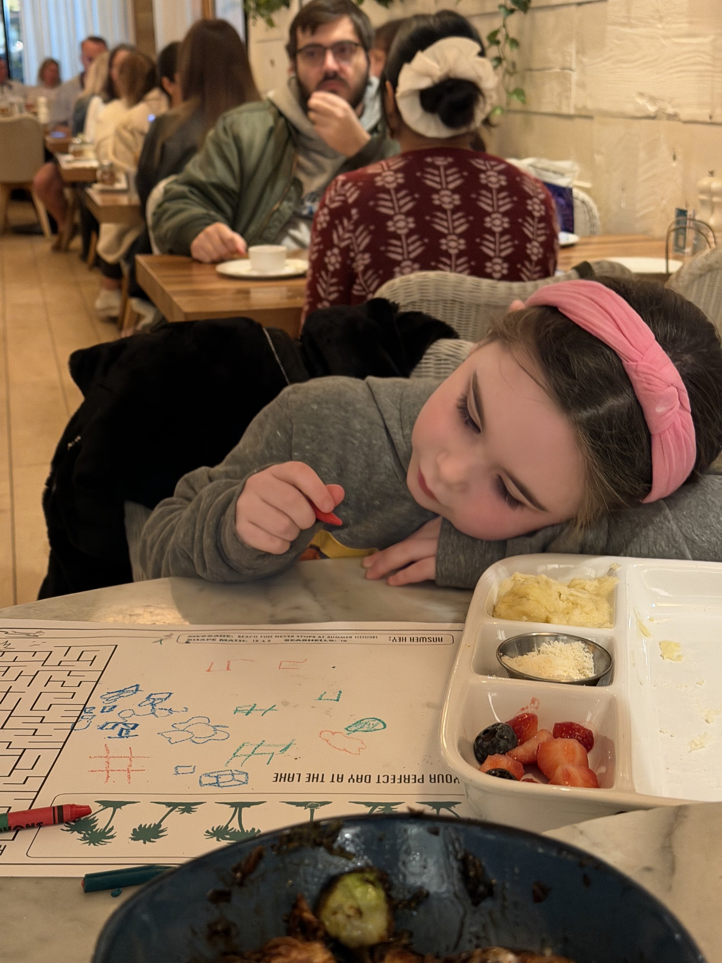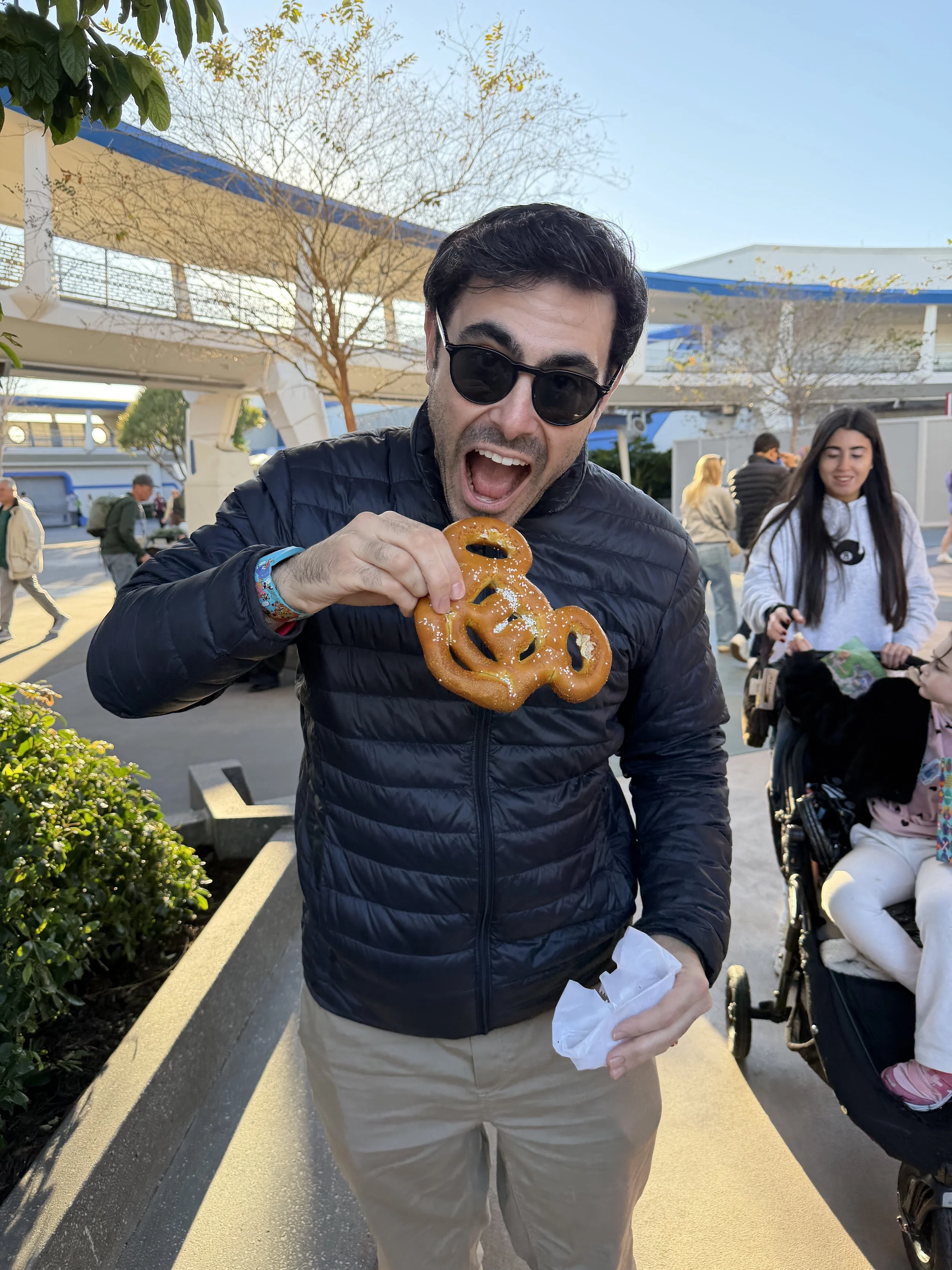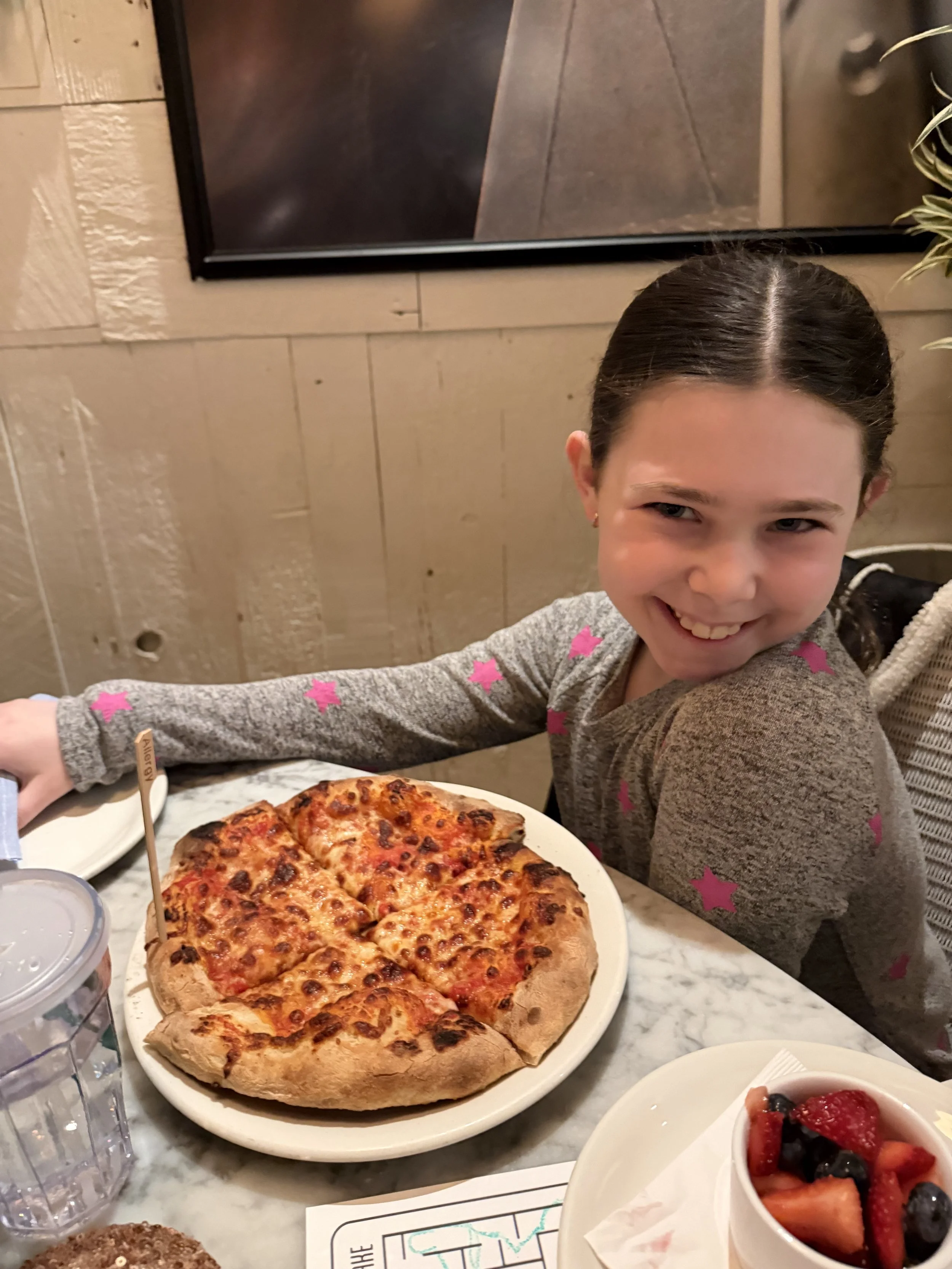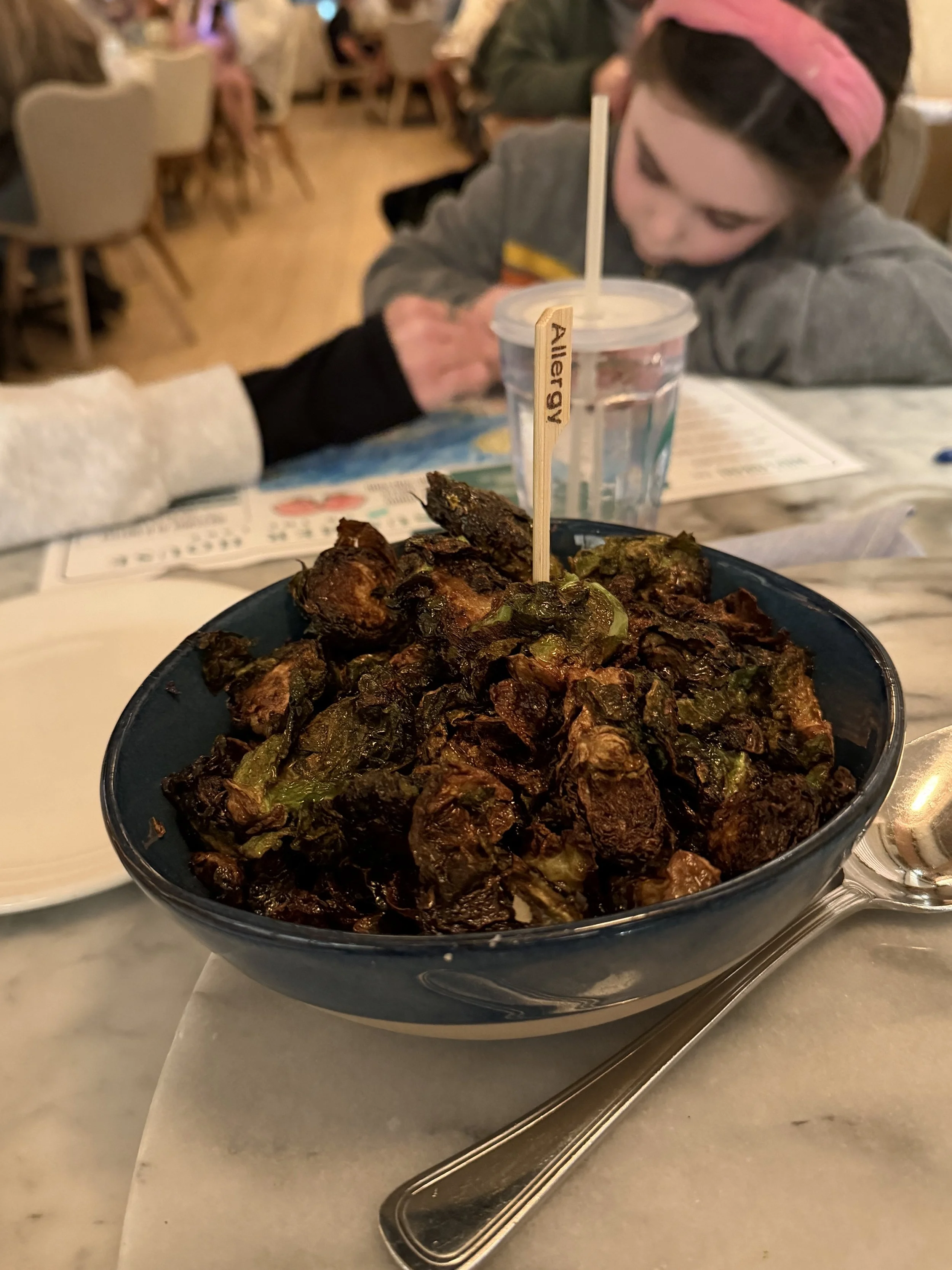 We got to Disney Springs and went straight to dinner at Summer House, a California-inspired restaurant that, ironically, has no locations in California. Hallie was disappointed that we weren’t going to Rainforest Café, which we usually do, but this time she had to deal, because Tzvi wasn’t willing to sit through a Rainforest dinner (see our last Disney blog for the reason why). The food was really delicious. We had fantastic Brussels sprouts, Tzvi and I got salads, Shir got pasta, and we all shared a pizza. It’s a very nice, very good restaurant, although service took a long time. Still, I’d definitely go back—especially if the weather were nice, because it would be beautiful to sit outside.