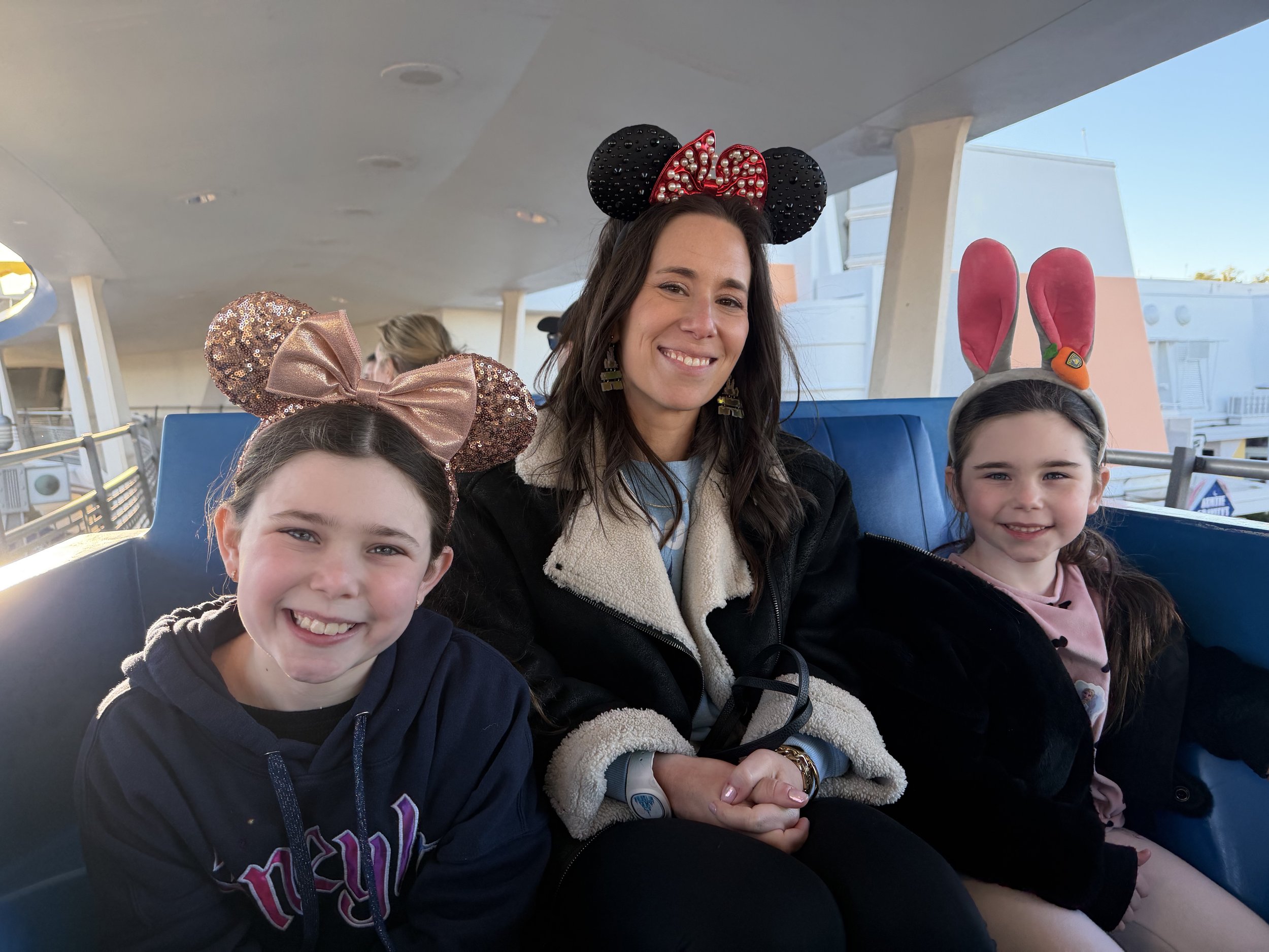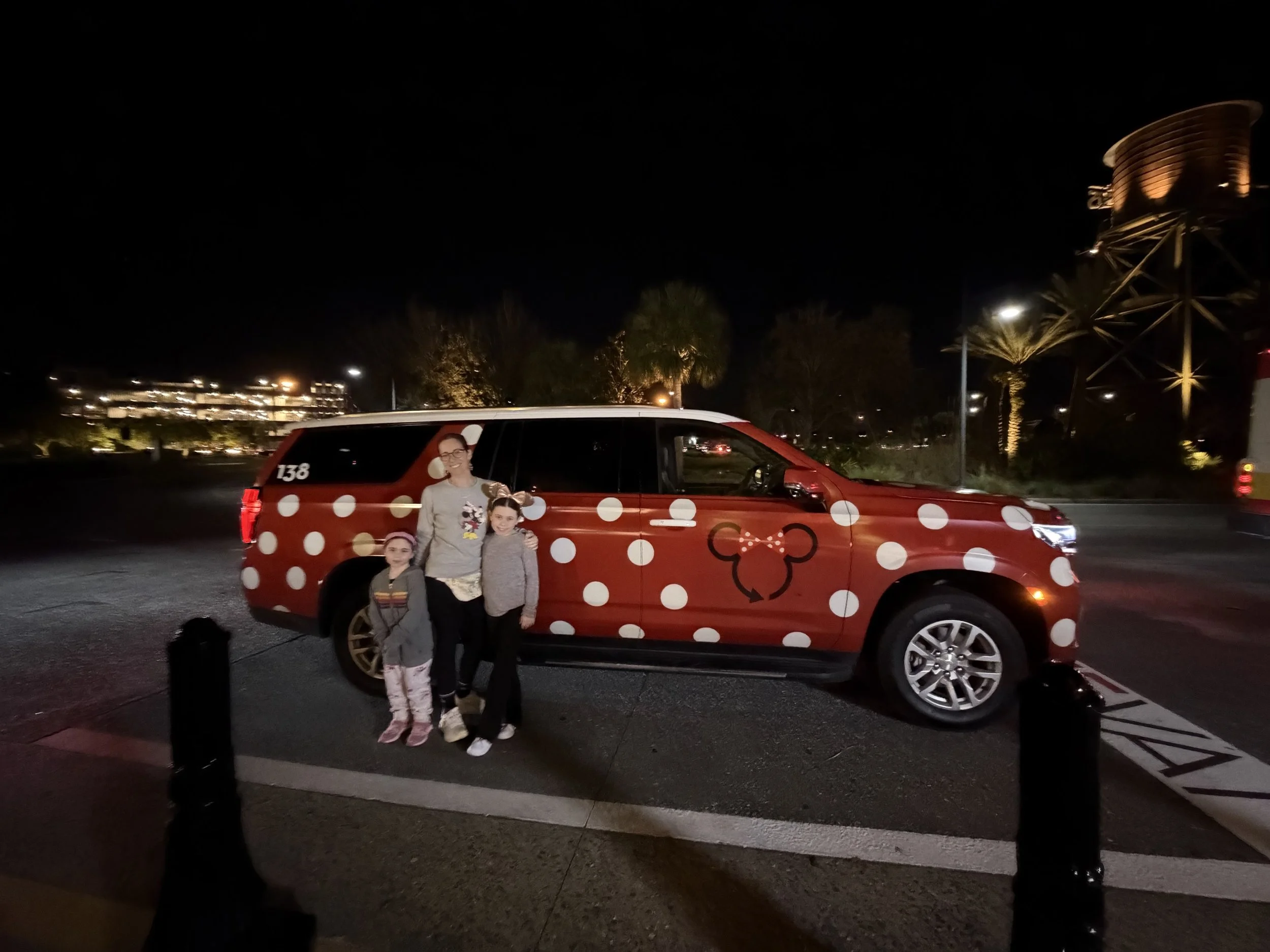 When Shabbos ended we headed to Disney Springs. We decided to take a Minnie Van—it’s basically a Lyft that’s run by Disney and the drivers are actually Disney cast members. It’s actually a suburban (not an actual van), and about twice the price of a regular Lyft, but Hallie had been asking all trip so we decided to give in once. It is a nice, big, clean, comfortable car. The kids love that there are TVs on the back of the seat with Disney cartoons. Also, Minnie Vans can go anywhere Disney busses can go, so you can usually get closer than a Lyft.