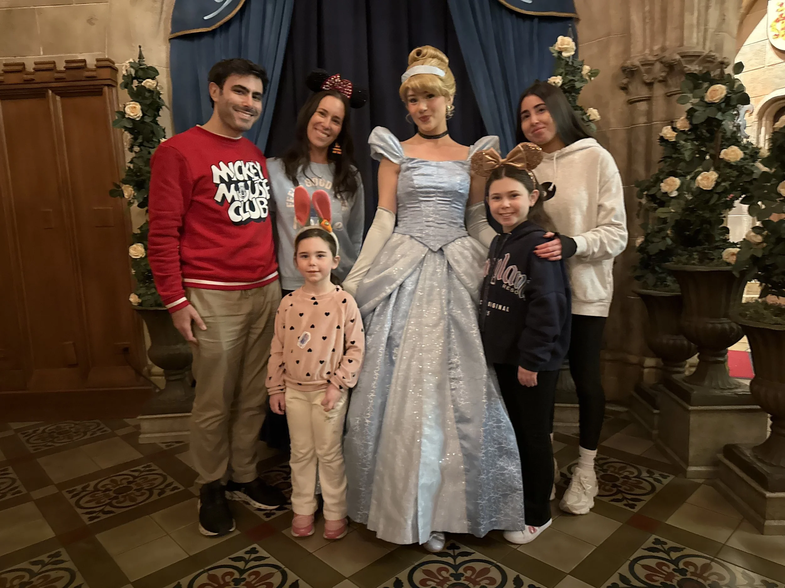 Then it was time for dinner at Cinderella’s Castle, which is a character dining with Cinderella, Merida, Aurora, Rapunzel and Ariel. It’s very cute and the food was actually pretty good. We only really did this because we had the dining plan - I think if you pay cash this is super expensive, but we figured why not with the dining plan. It was a very nice experience - the restaurant itself is very cool, and at the end of the meal we all got plastic swords and princess wands. The girls wanted the swords, so Tzvi ended up with a princess wand.