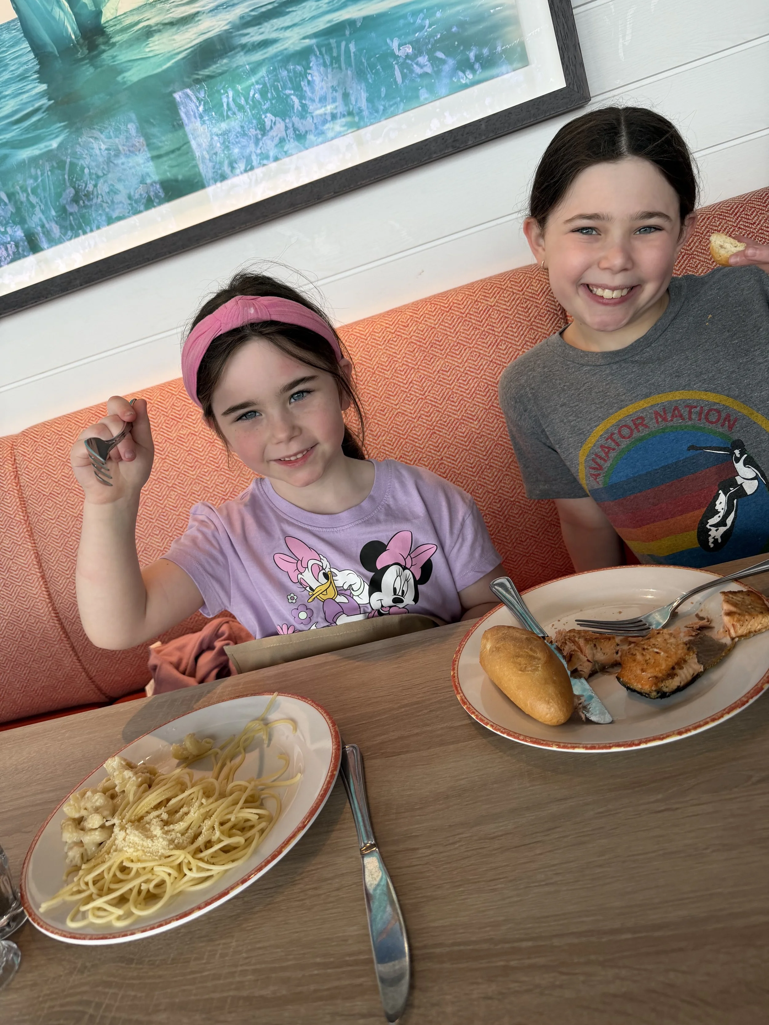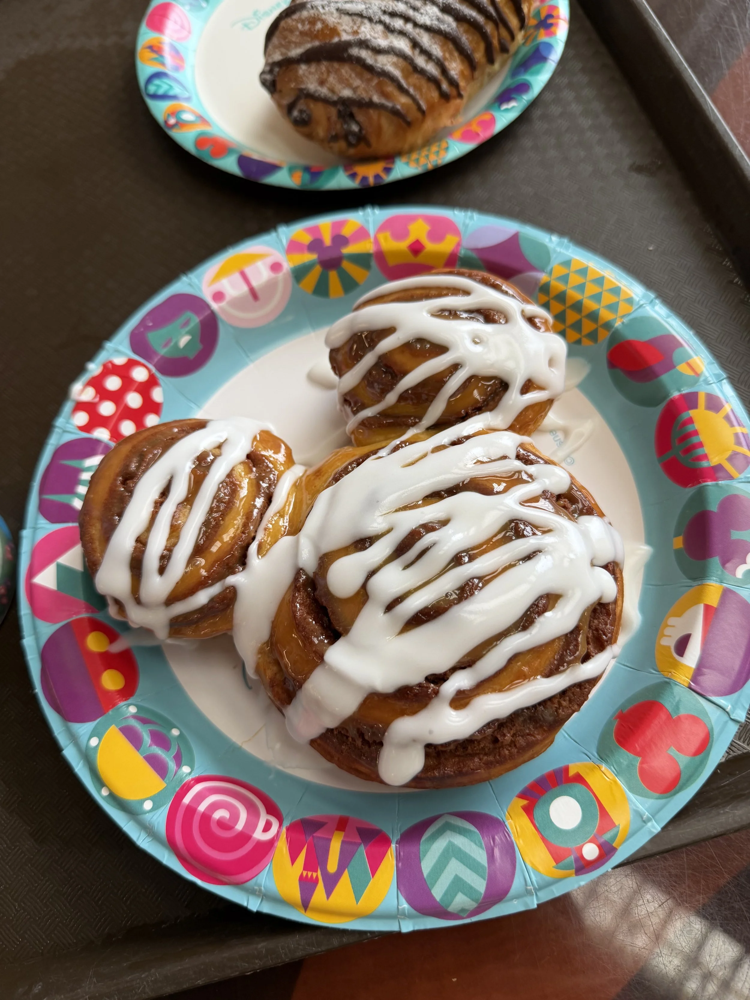 We headed to breakfast at the quick-service spot to try to use up whatever was left of our dining plan meals. The dining plan is very interesting—they really give you a lot of food. I think financially it was worth it this time around because the kids were free, but truly, it’s an absurd amount of food.