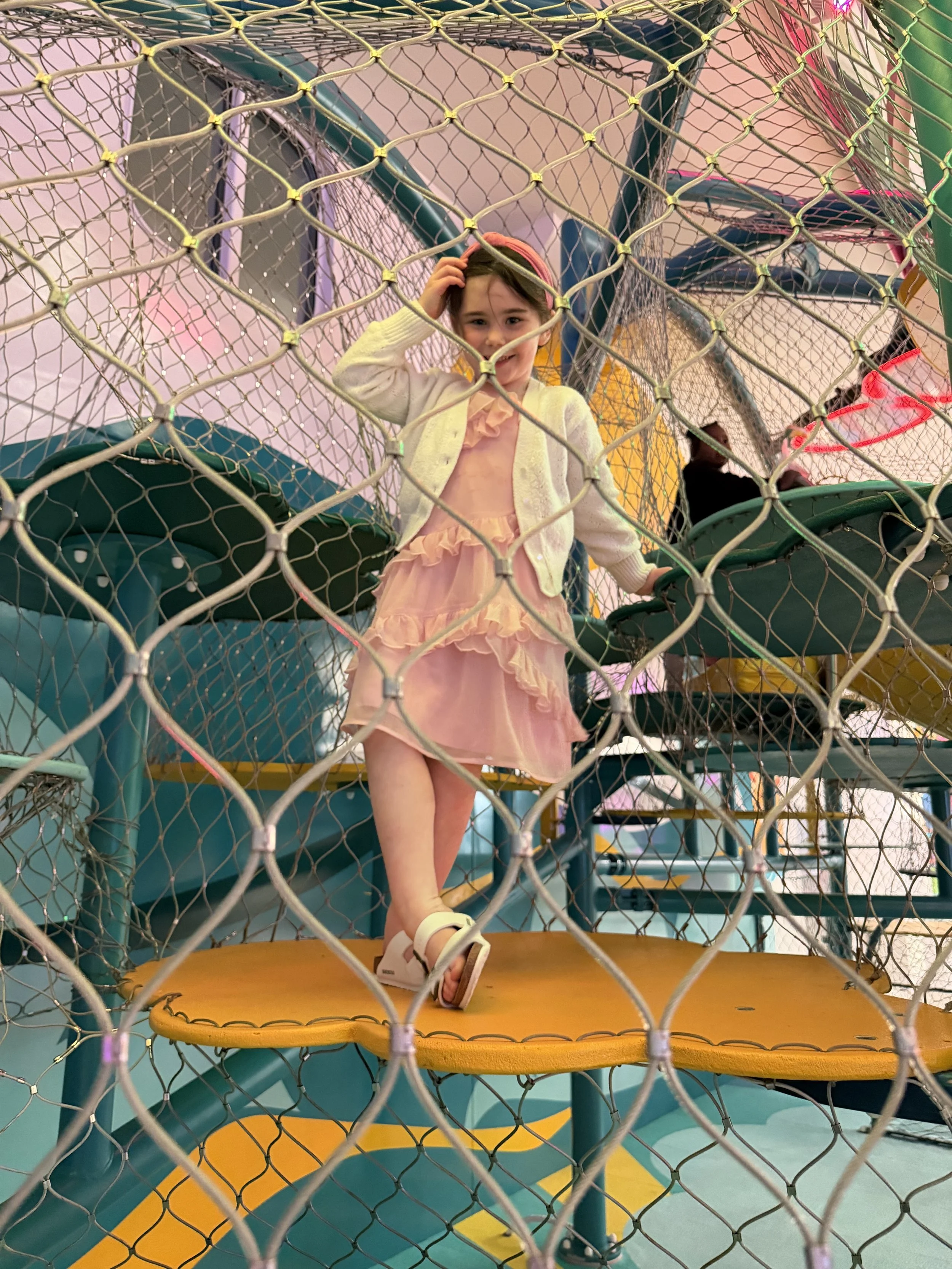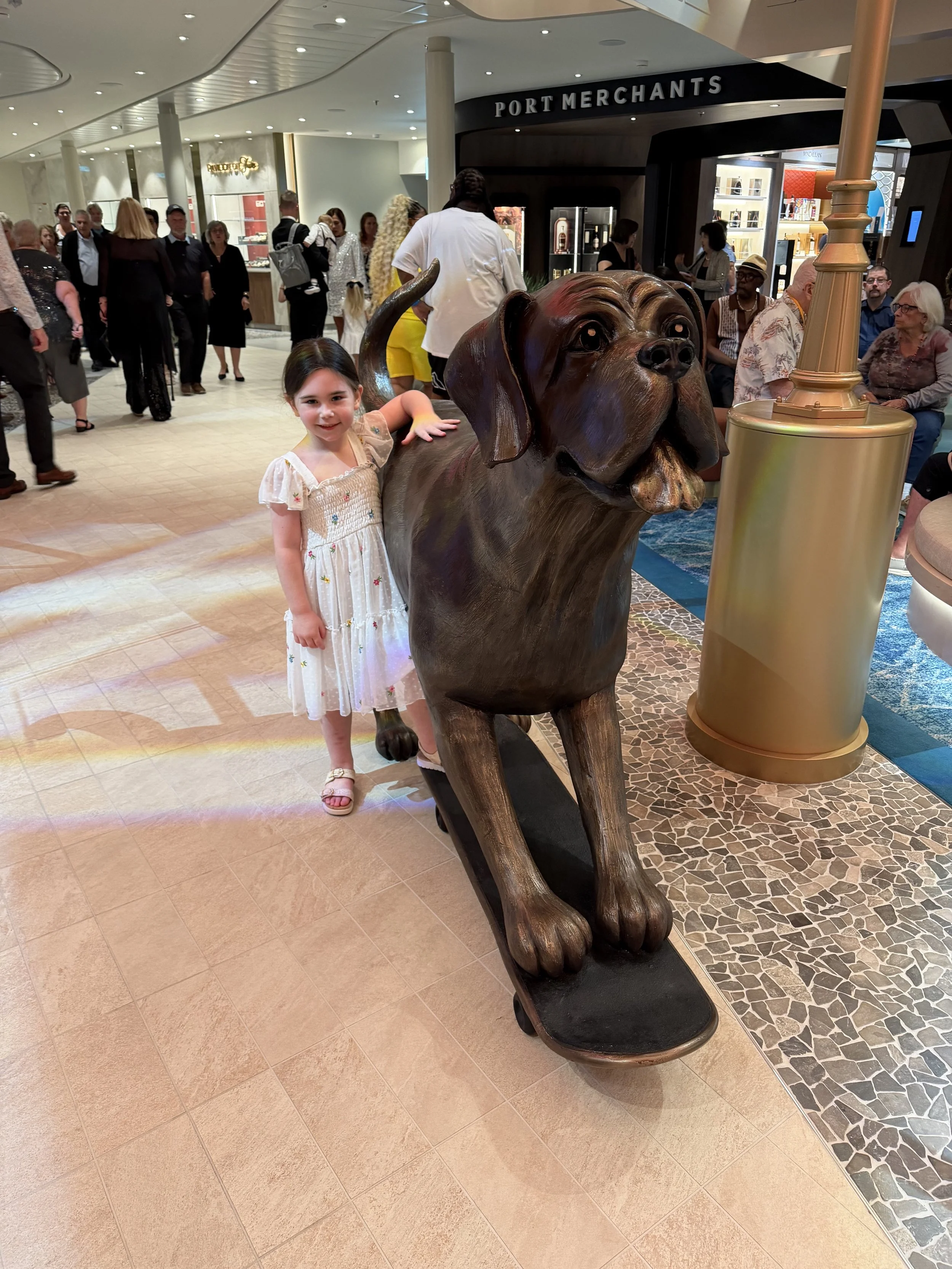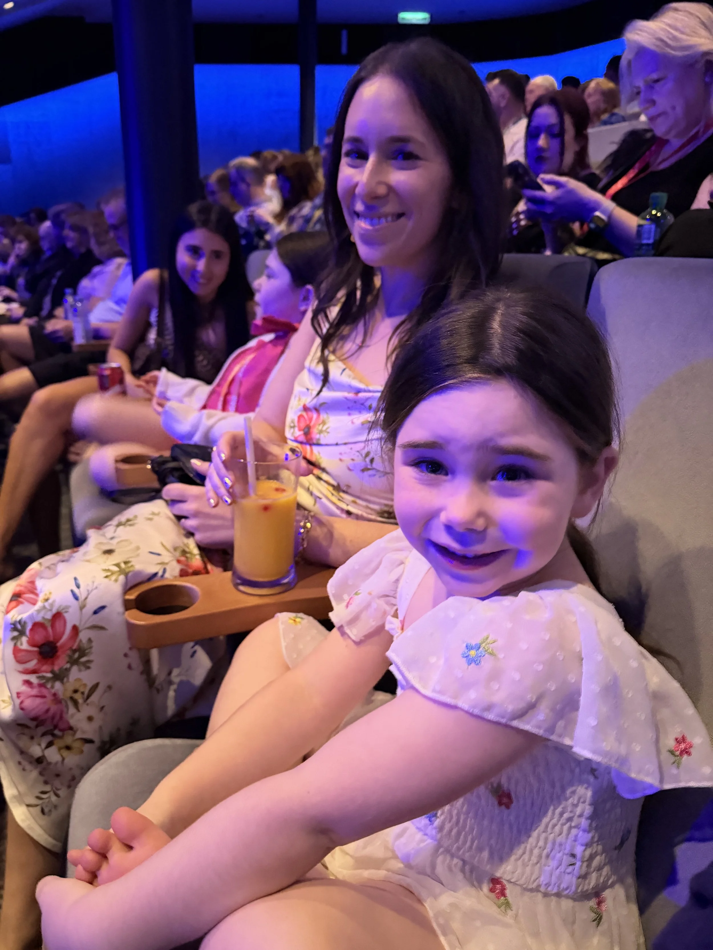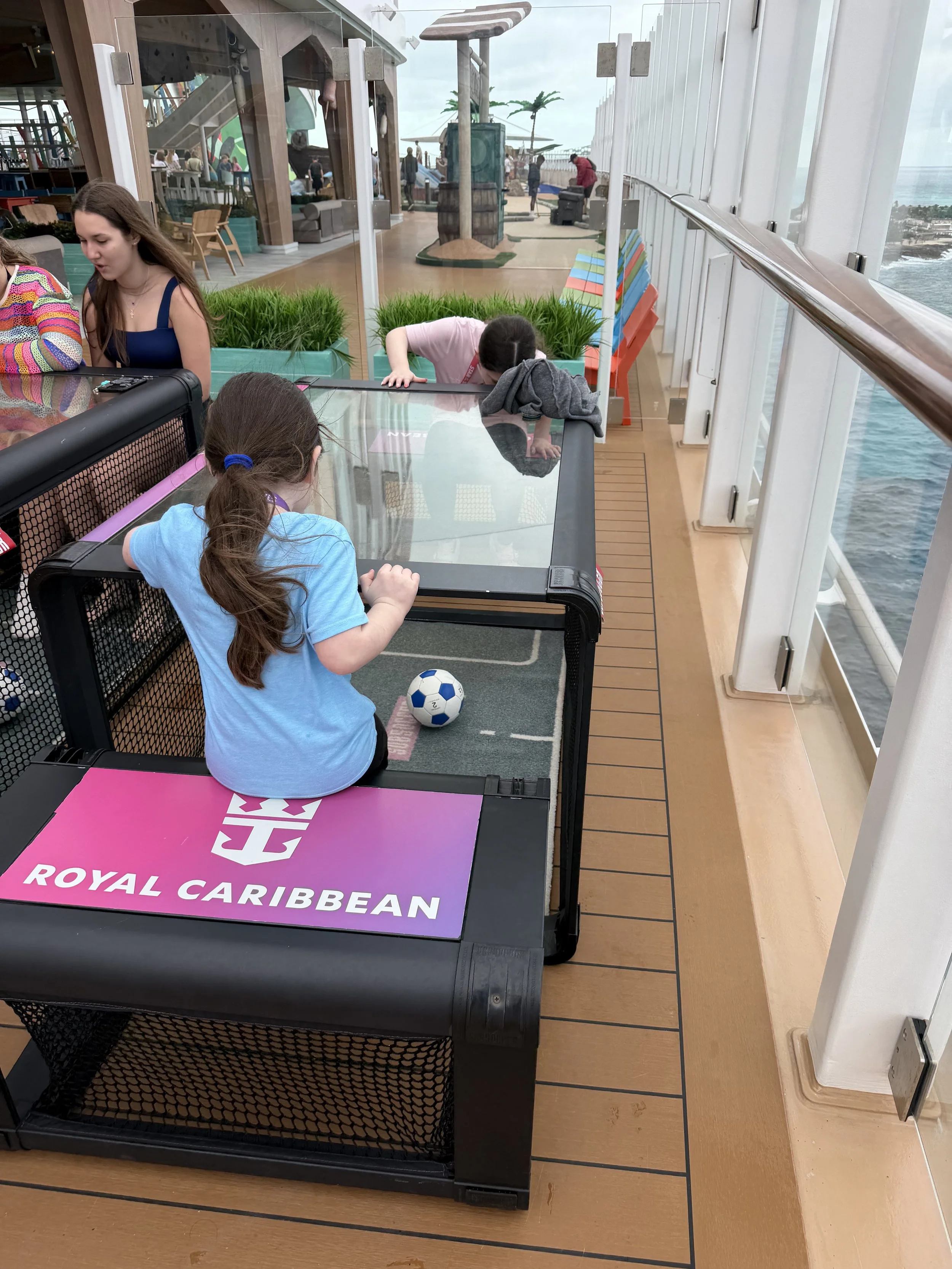 Tzvi took the girls to Surfside. They climbed on the wall, rode the carousel again and played air hockey in the arcade. Then we met back up and all hung out by the pool. There’s this green dry slide that takes you from Deck 16 to Deck 15, and Madeleine became completely obsessed with it. She had a really great time going on that over and over, like twenty times.
