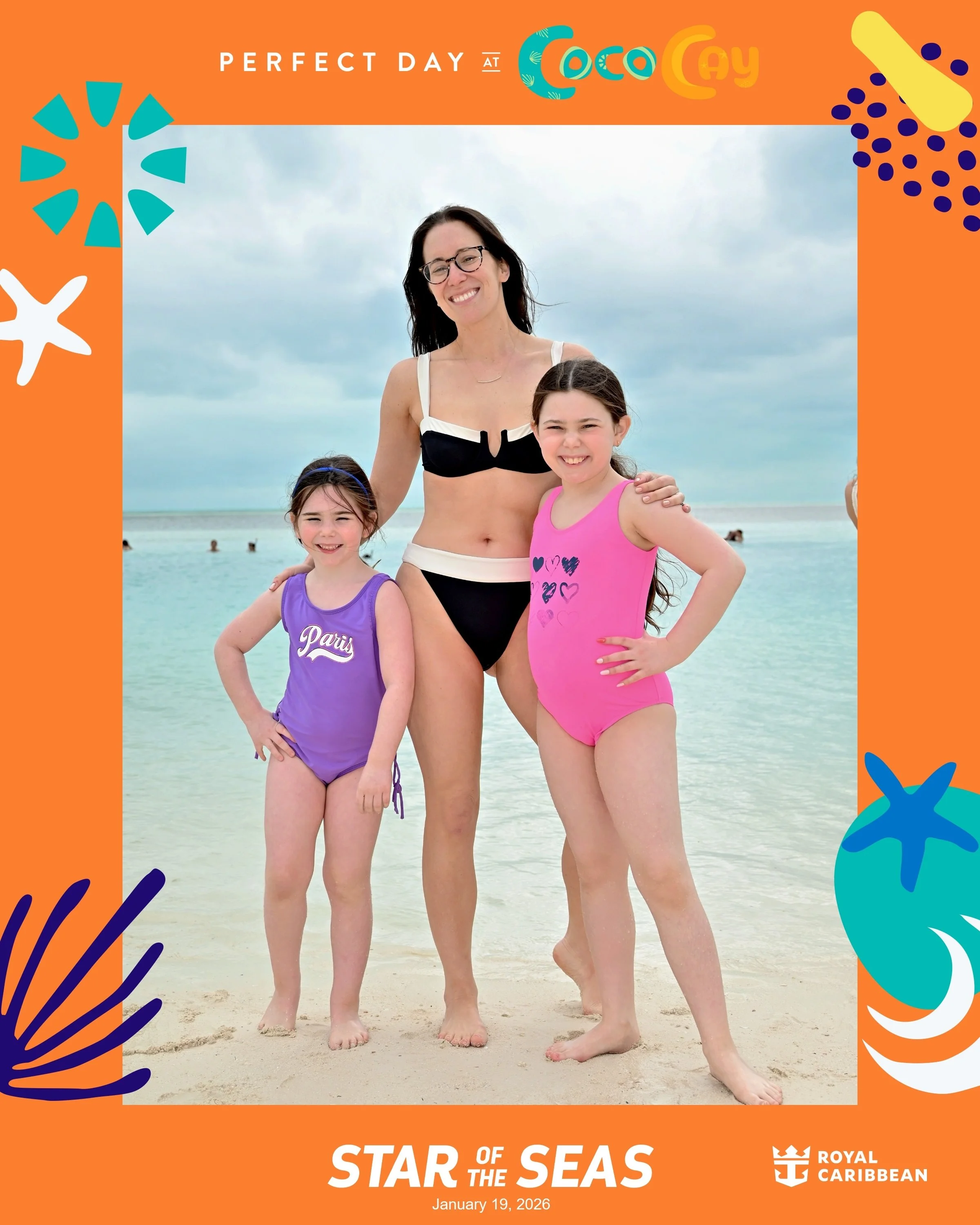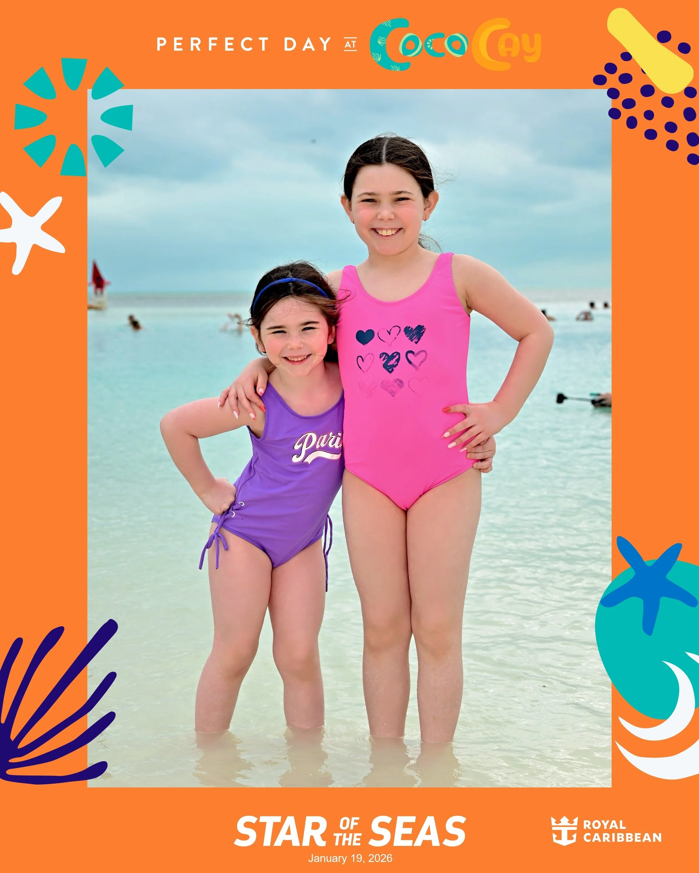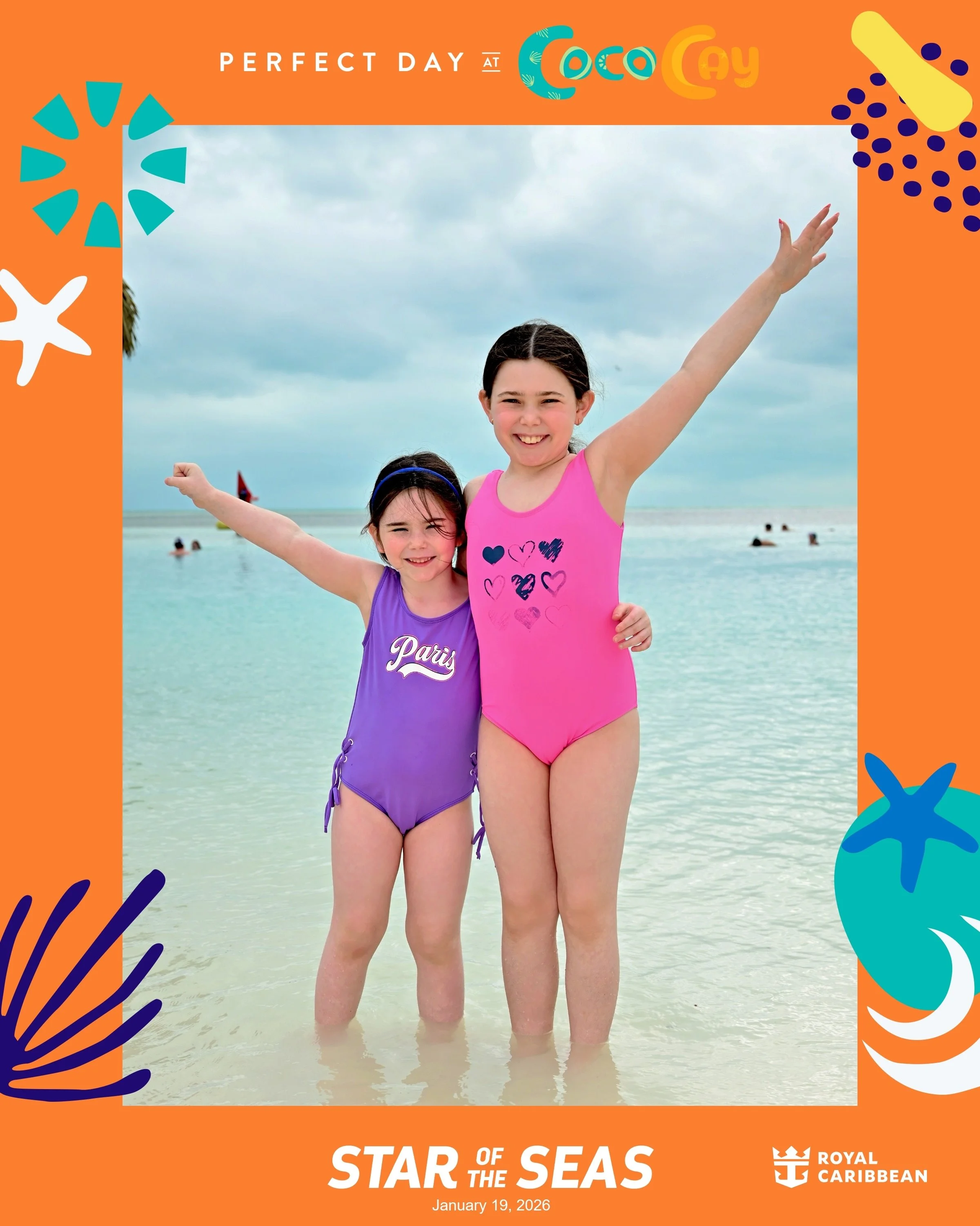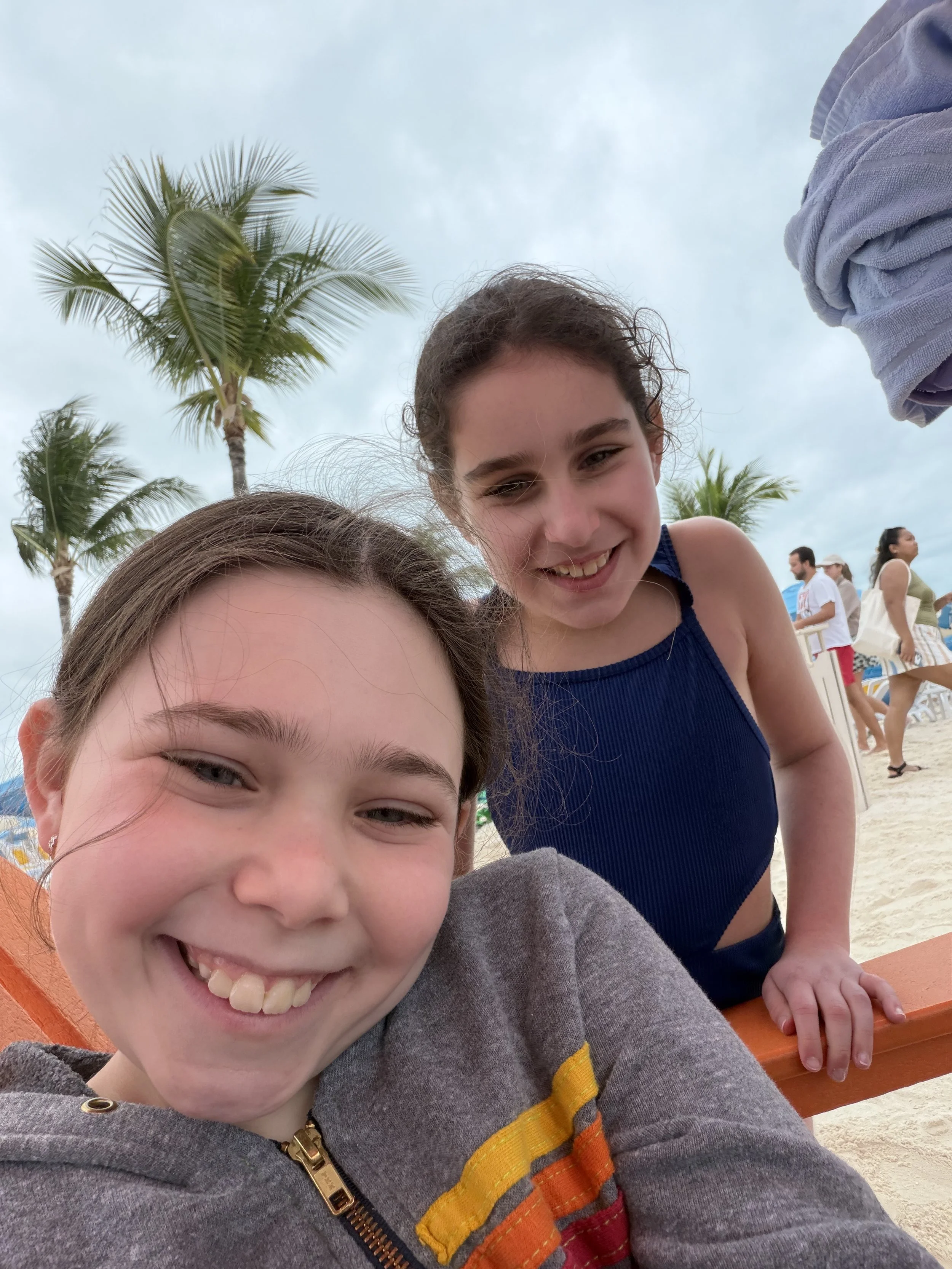 The island itself is very lovely—obviously not as nice as Disney’s private island, but still really nice. It was just cold. Hallie actually ran into one of her friends who was on a different Royal Caribbean ship that was also docked there, which was cute. Eventually, though, we all agreed it was freezing and we were done. So we took the tram back to the ship, and that was our “perfect day” at CocoCay.
