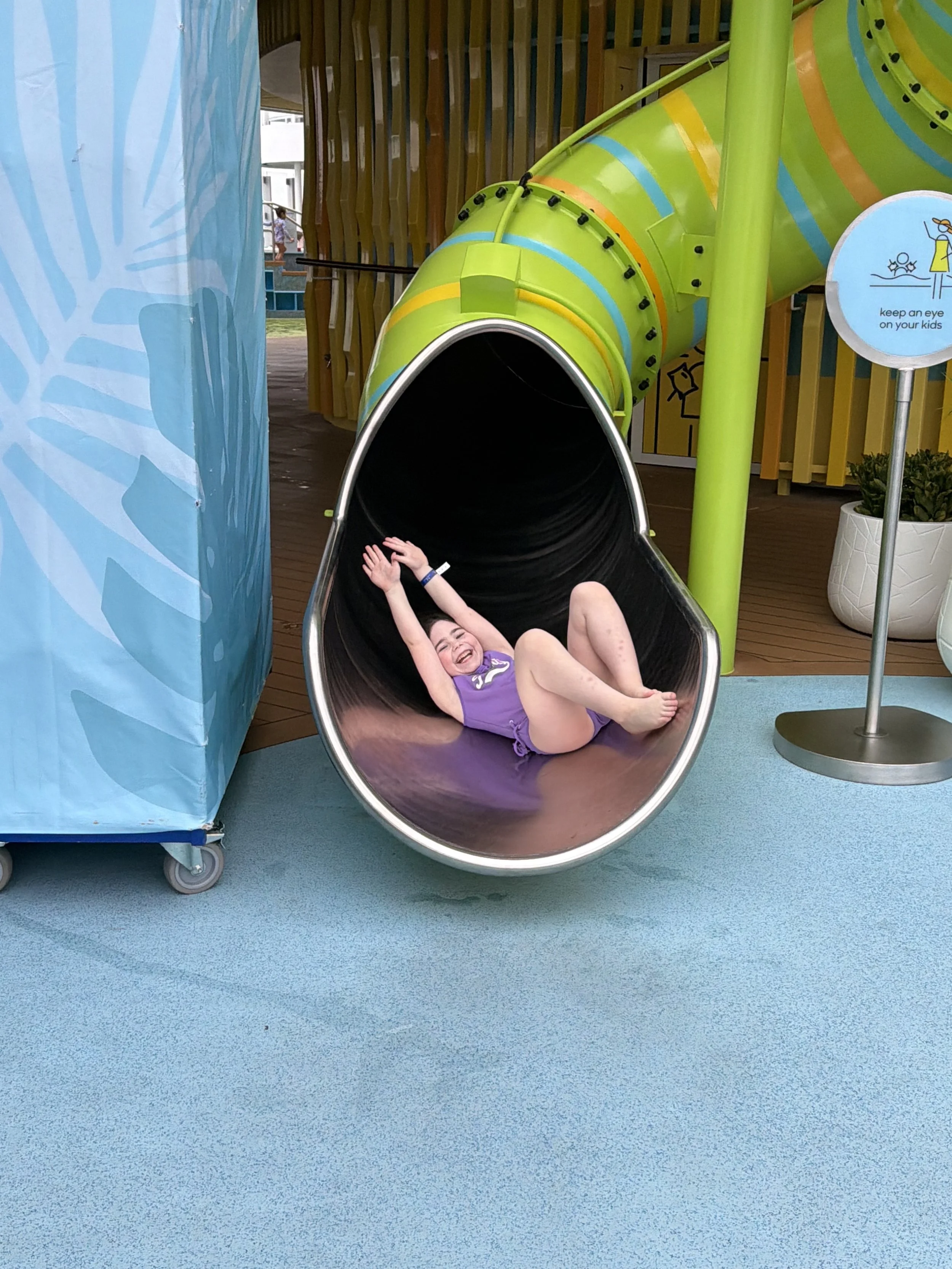We eventually headed back to the ship, hit the hot tubs for a bit and Hallie and I did one of the water slides.