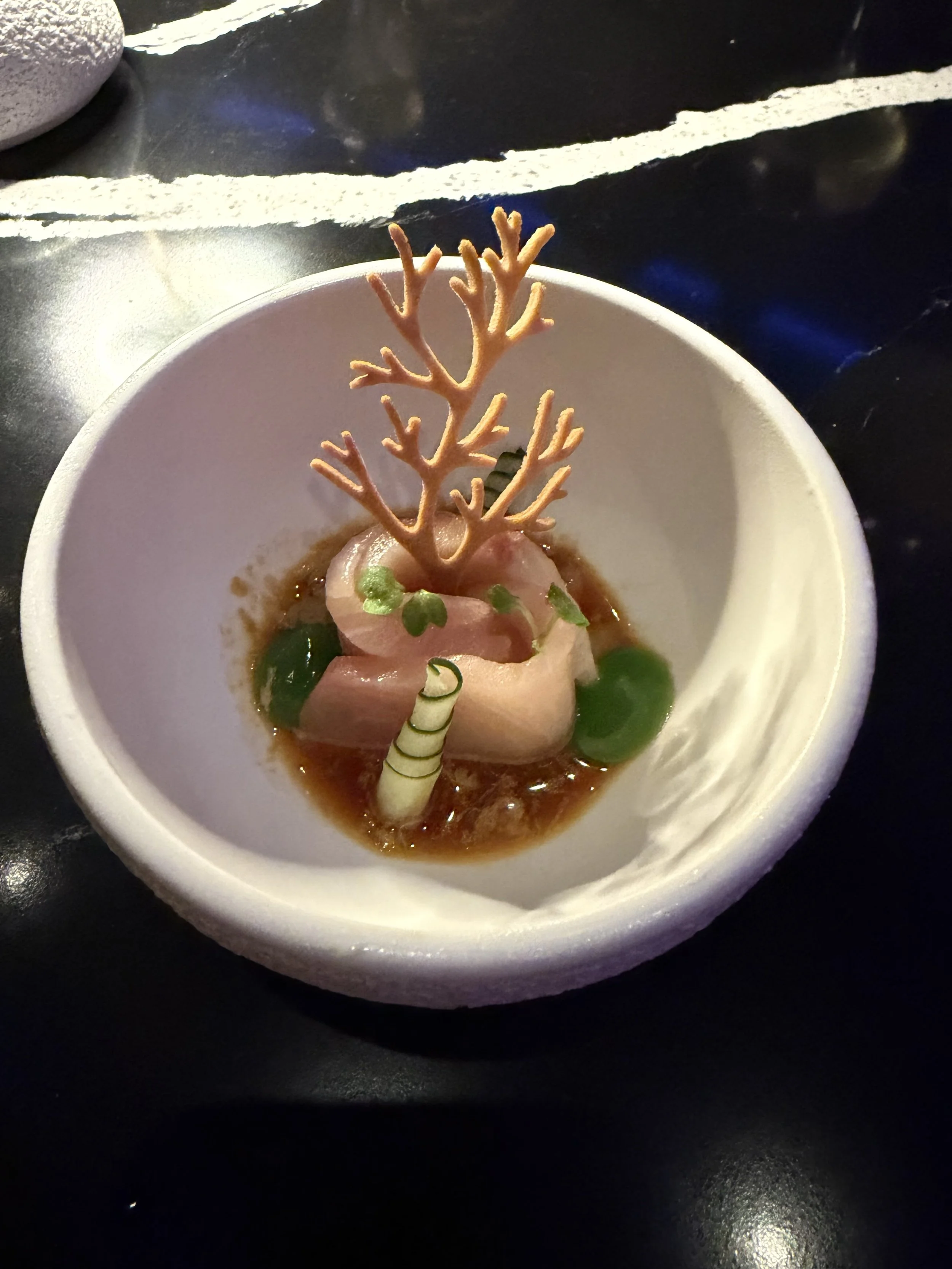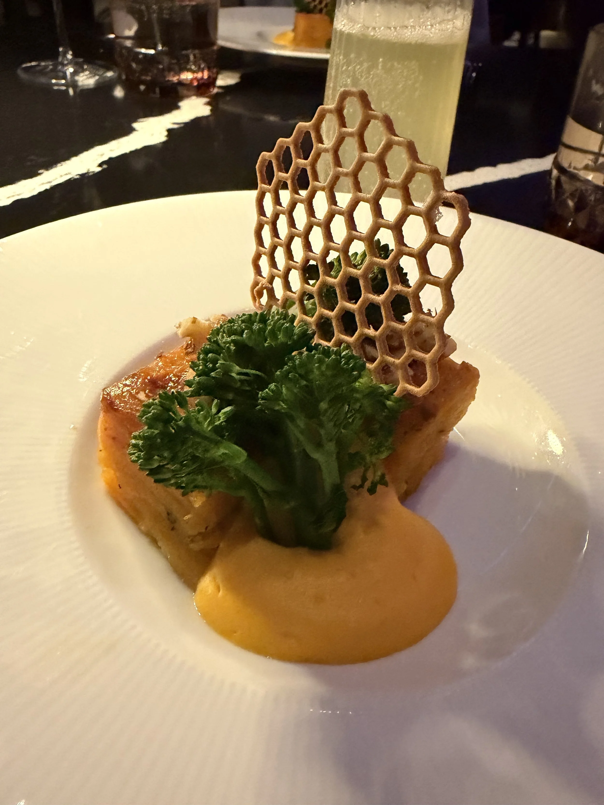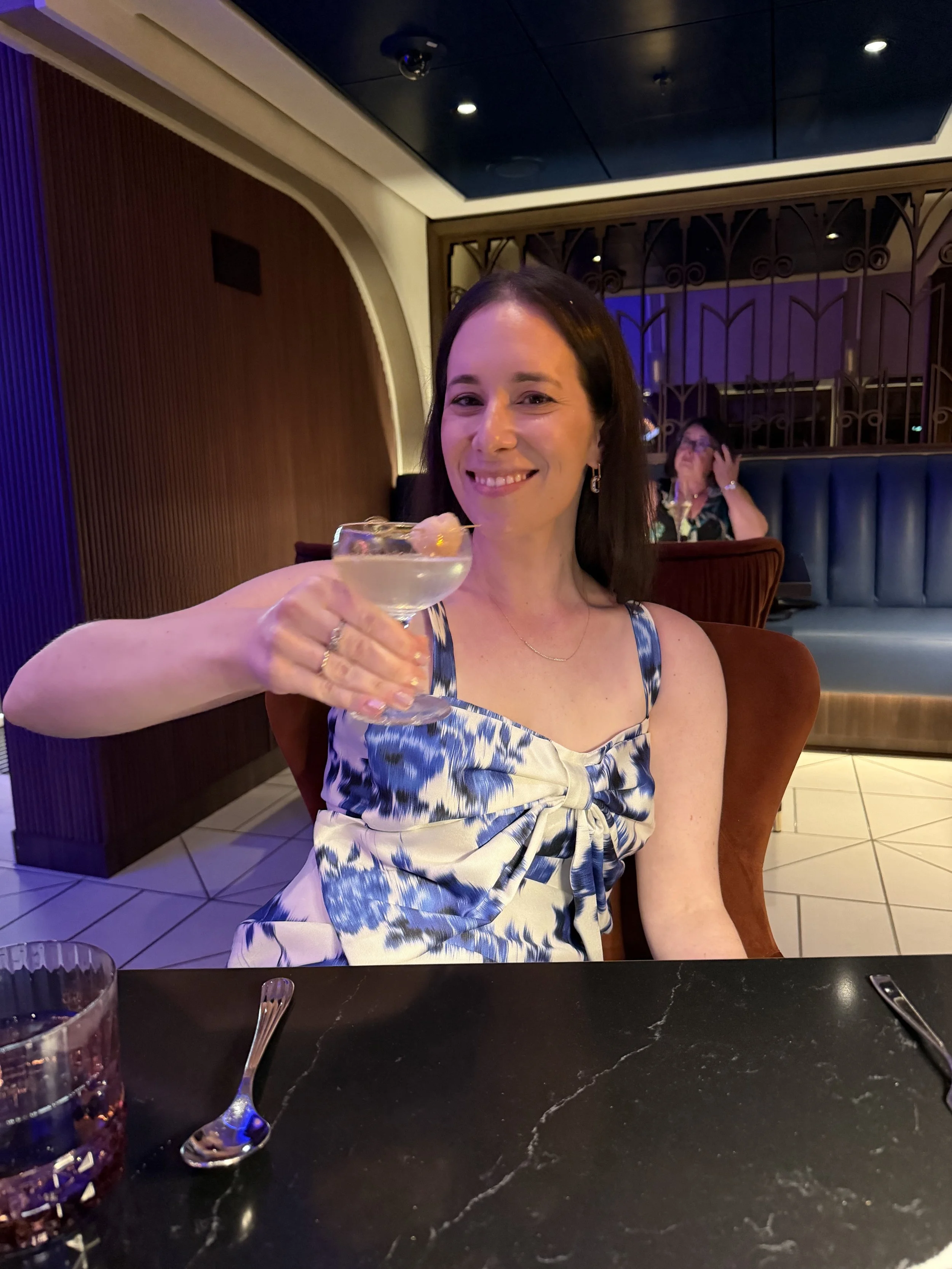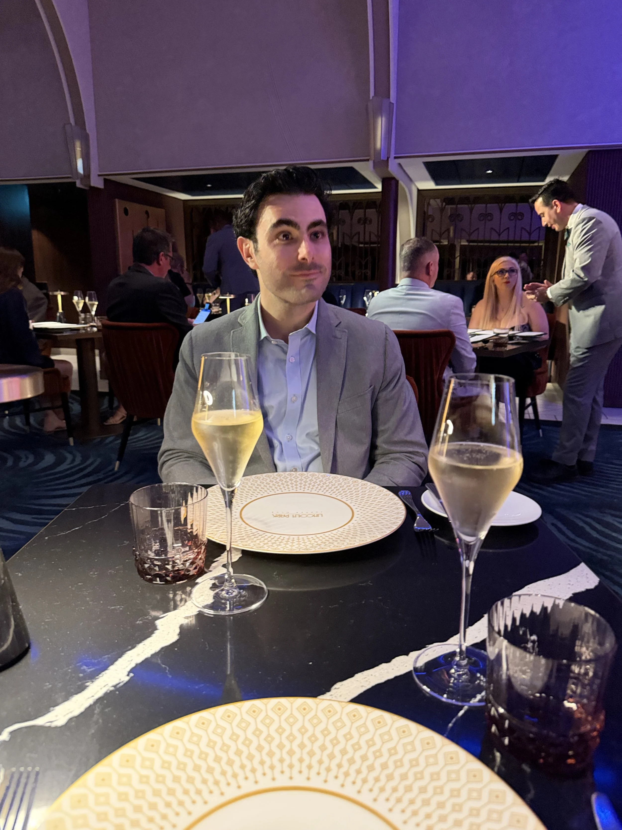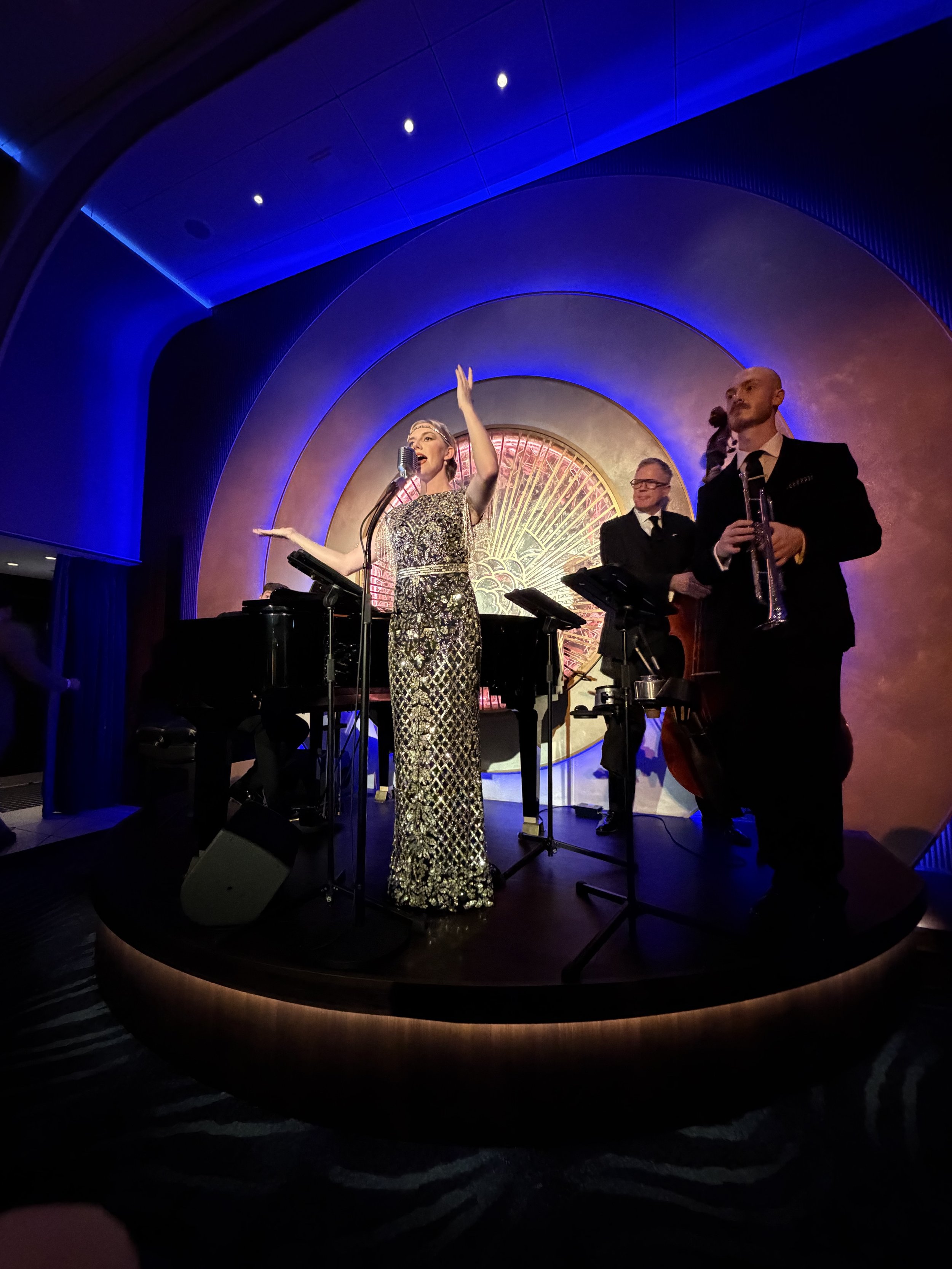 Tonight, we did a dinner without the kids at the Lincoln Park Supper Club. This is the ship’s specialty, fancy, most “special” dining experience. They even sent us an invitation to our room earlier in the day. Basically, it’s a six-course meal accompanied by a jazz quartet that plays you through the entire meal. Each course came with a separate cocktail pairing, which was nice, but they were like full sized cocktails and who can drink six cocktails in a meal? We had informed them of our dietary restrictions ahead of time, and they handled everything beautifully.
