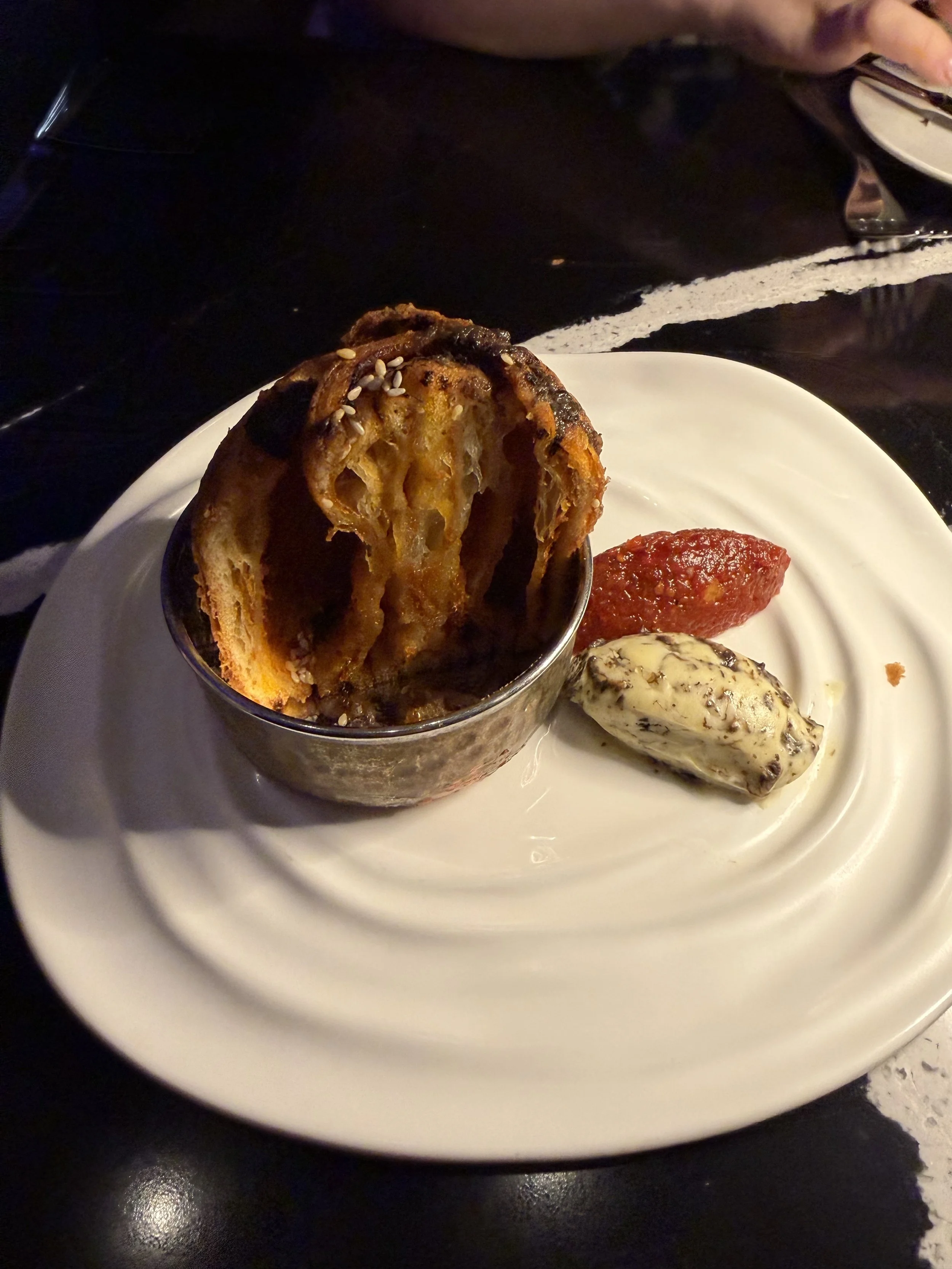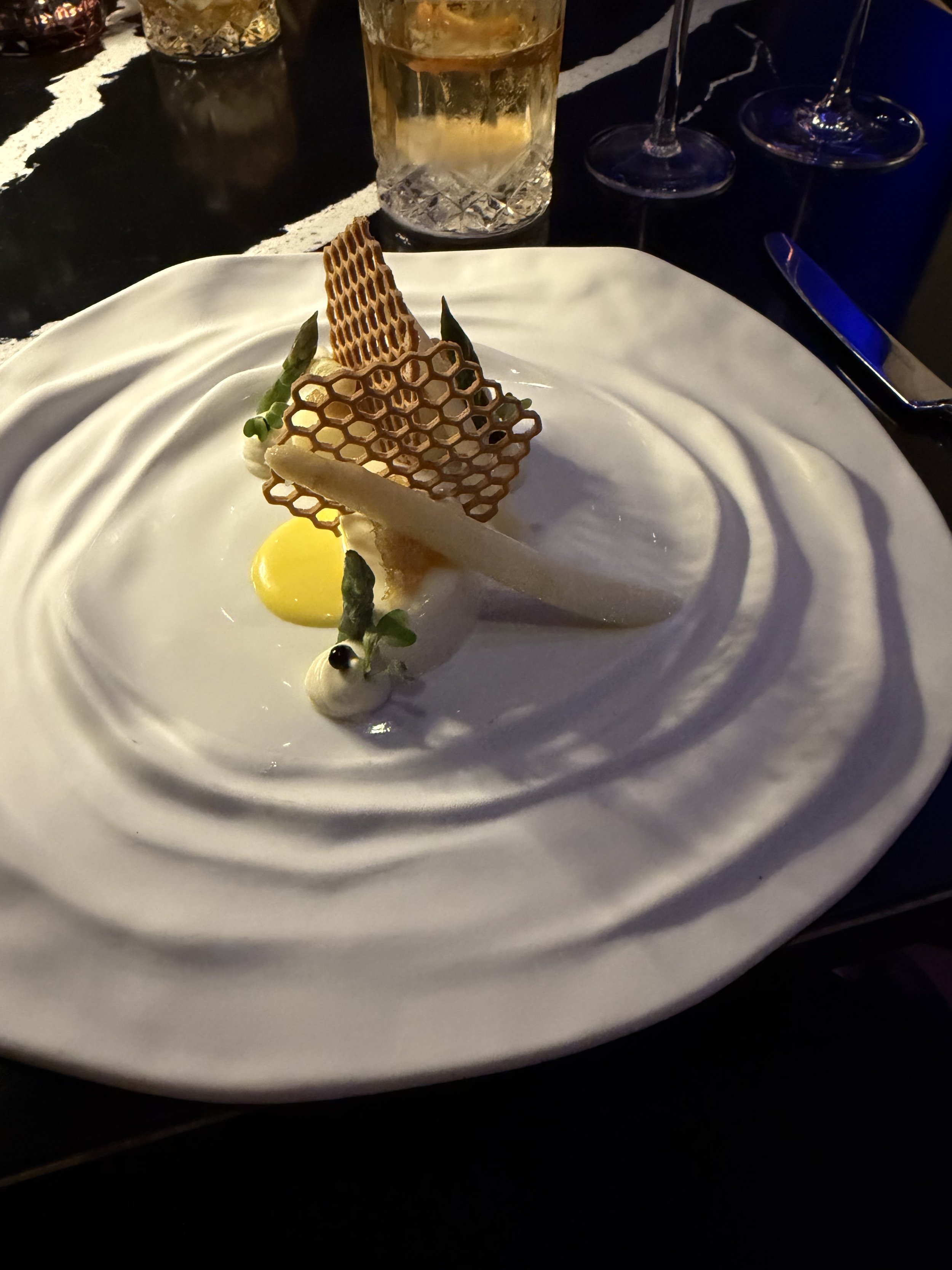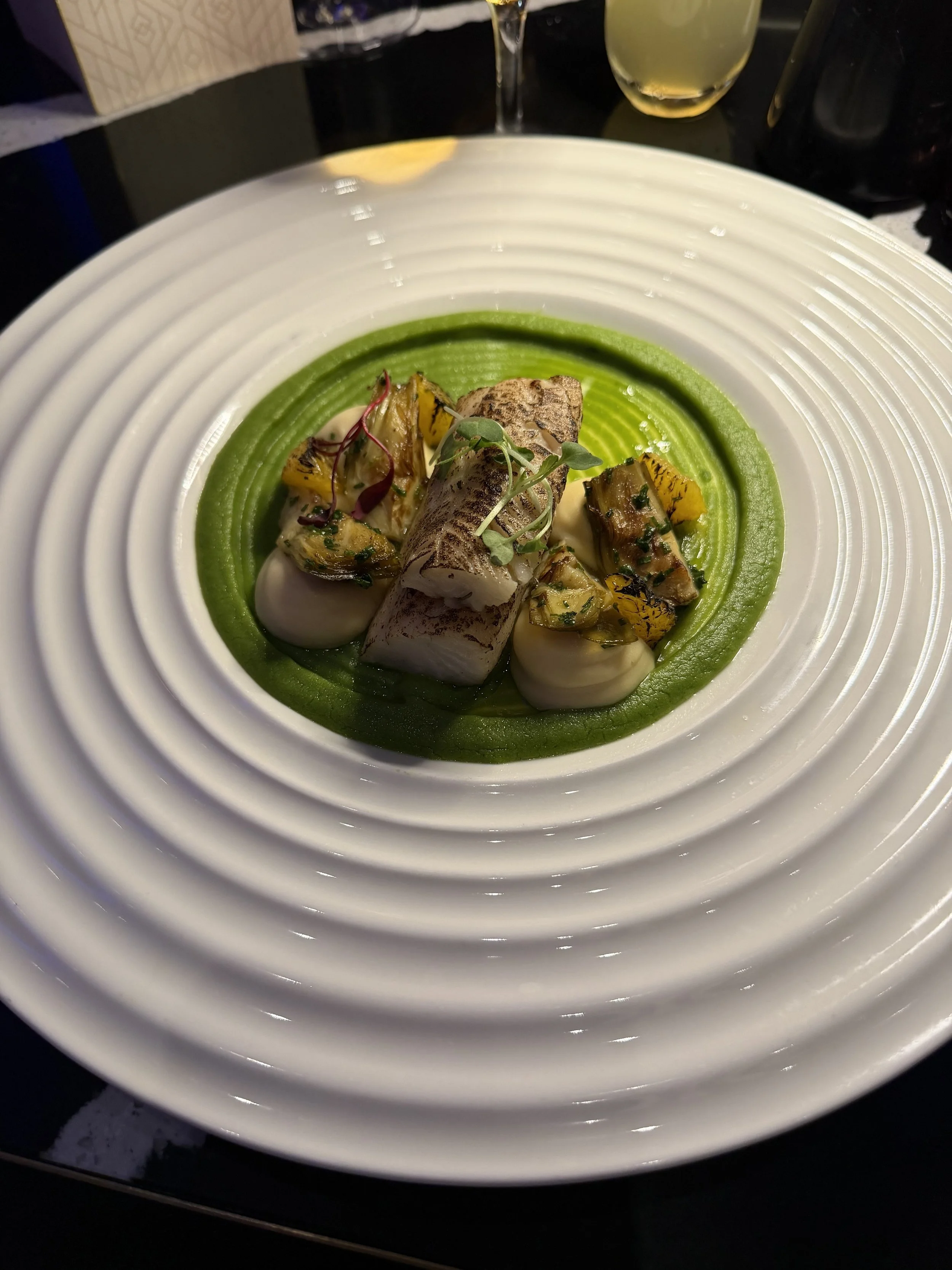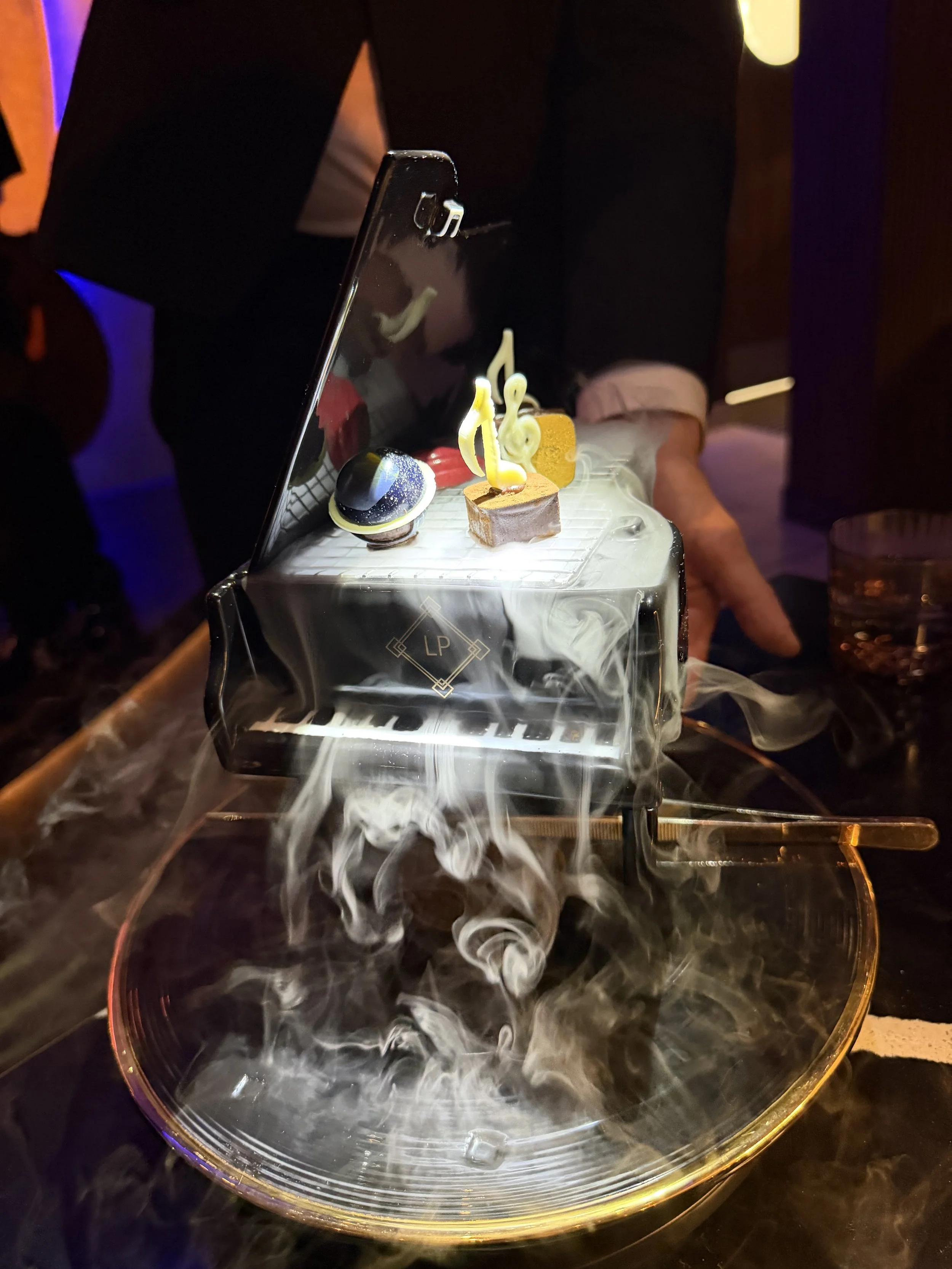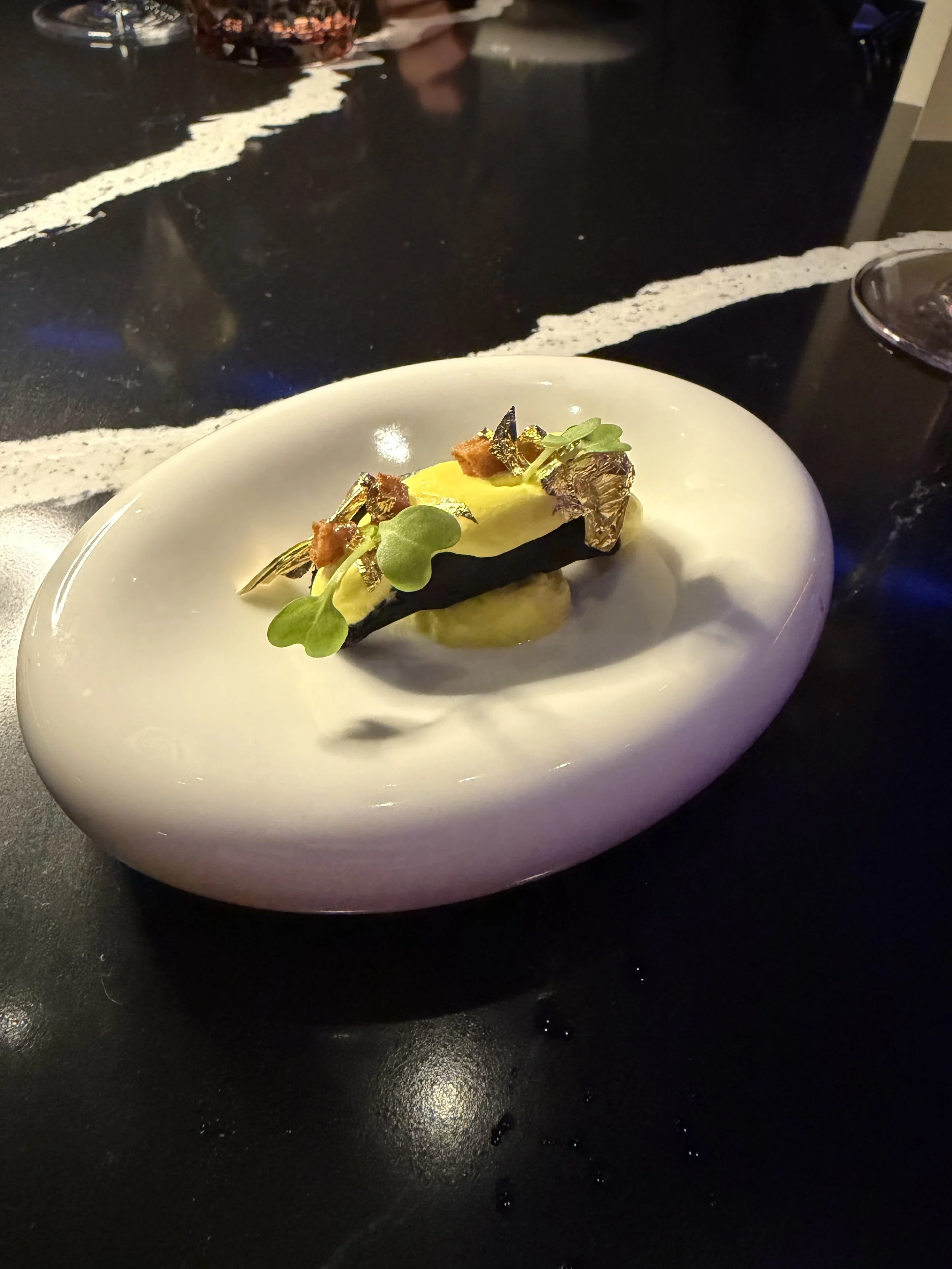 The food was delicious—fine dining, really well done. There was a lot of smoke produced from liquid nitrogen, which was cool. Also, it was a small space with a limited number of tables and they only do two seatings each night. The music was nice, though I could have done without it being loud the entire 2.5 hours. But that could also have been because our table was literally right next to the musicians. The space itself was very cool, the service was fantastic, and overall it was an excellent experience. The only issue was that mid way through the meal the boat started really rocking. After dinner Tzvi asked one of the musicians if it was hard to perform when the ship was rocking so much and he said “well this is the rockiest it’s been since I’ve come on board!”. Lucky us.