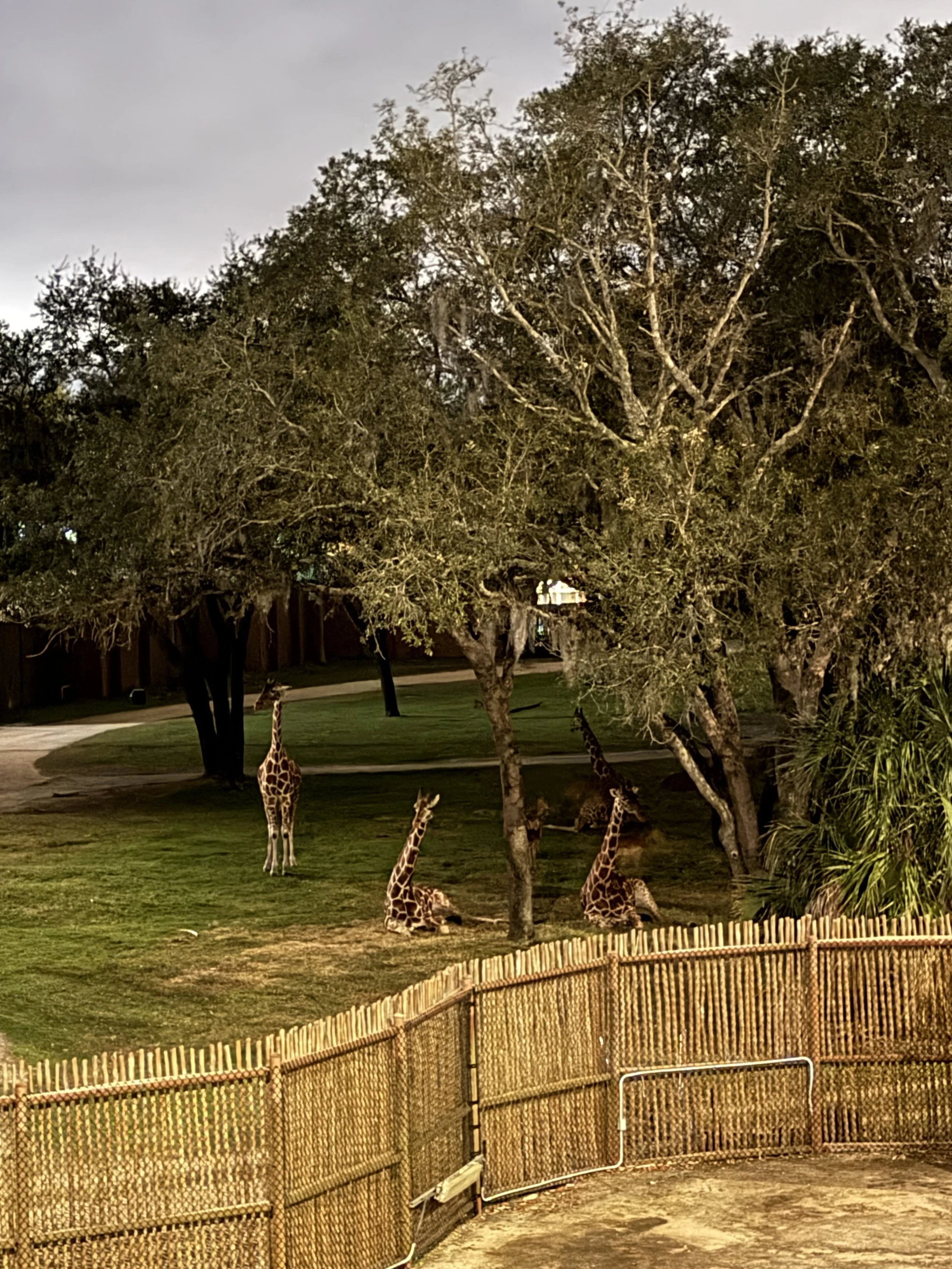 When we got back to our room at Animal Kingdom Lodge, there were four giraffes just casually hanging out outside our window. Nice end to the day.