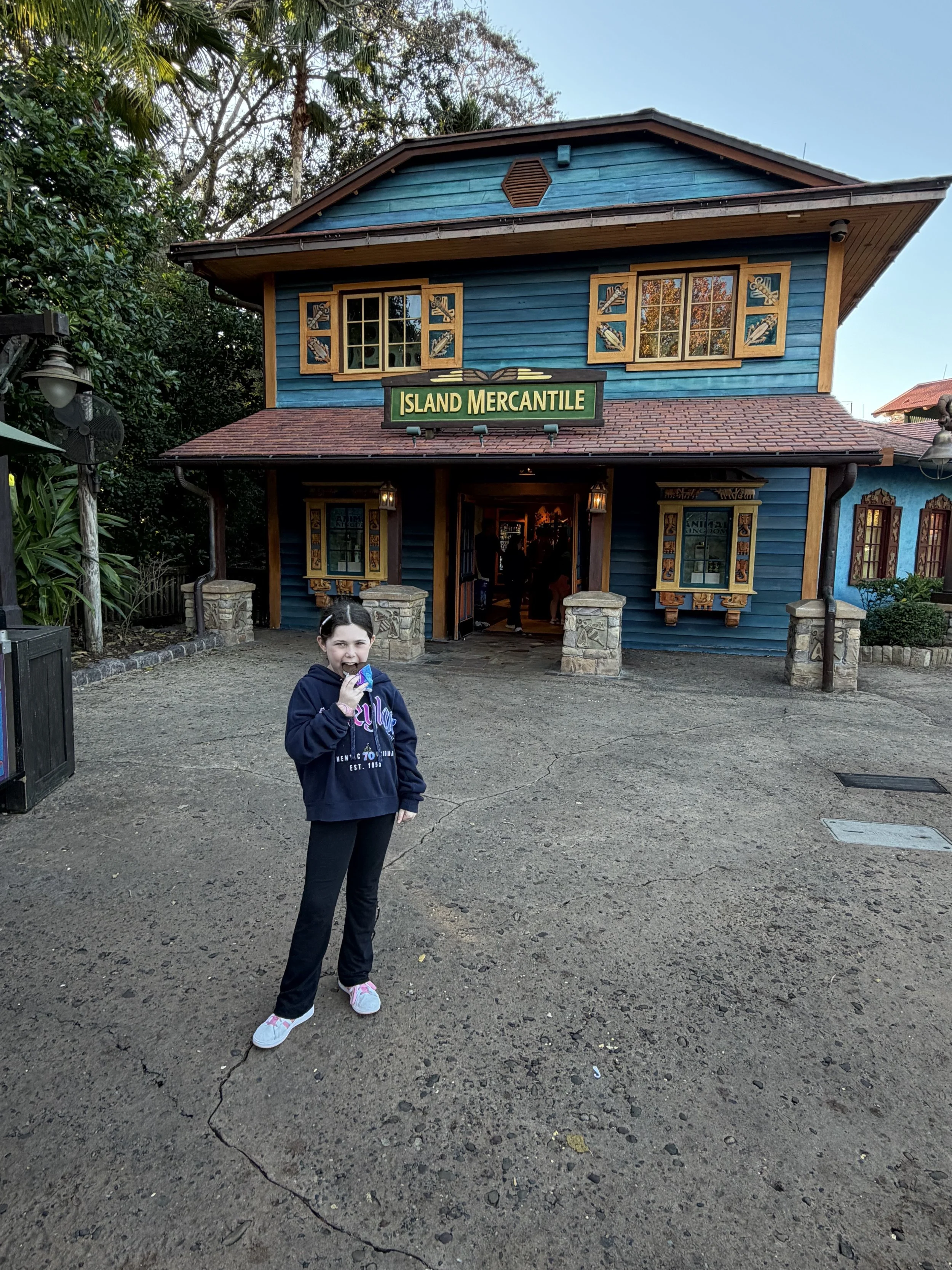 First stop: the safari. It was a great safari. We saw elephants, zebras, rhinos, and had amazing views of the lions. I think because it wasn’t so warm the animals don’t sleep all day, so it was cool to see them awake and moving. Overall, A+ safari. From there, we went to Festival of the Lion King, which was cute. Then we went to Expedition Everest, which Hallie did twice, then Dinosaur, which is basically the Indiana Jones ride from Disneyland but dinosaur-themed. It’s actually very dark, and I think it’s super scary. But we all did it, including Madeleine who was great. I think I was more afraid than anyone else. This ride is actually closing February 1st because they're redoing Dinoland (as they should) and turning it into the village from Encanto. So glad, or maybe not so glad, that we got it in before it closes.