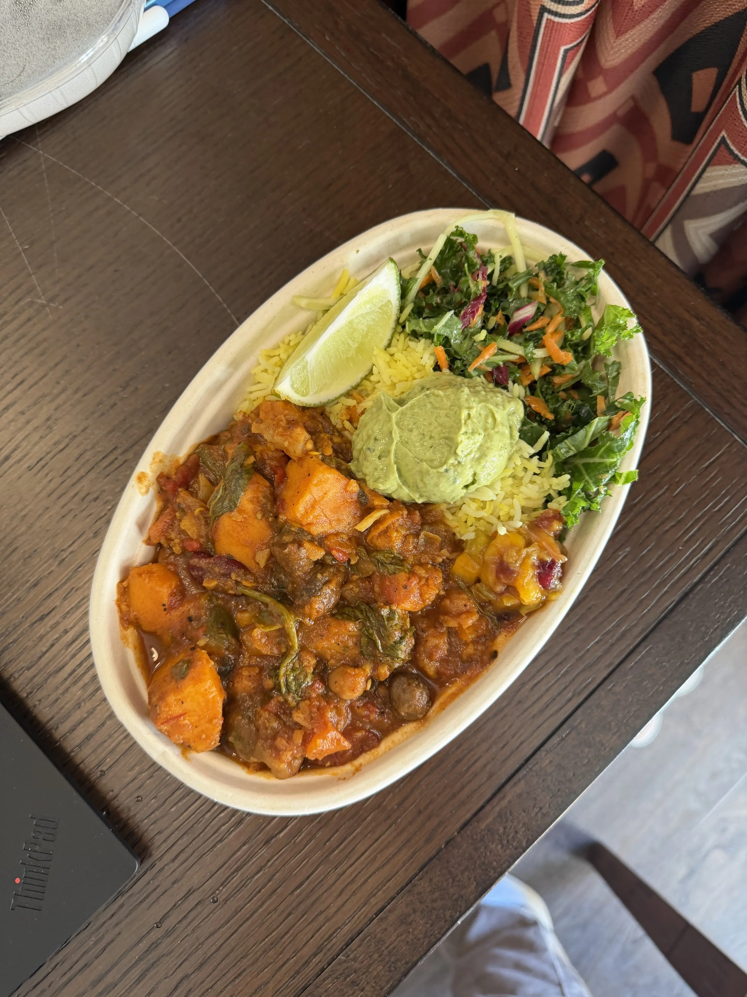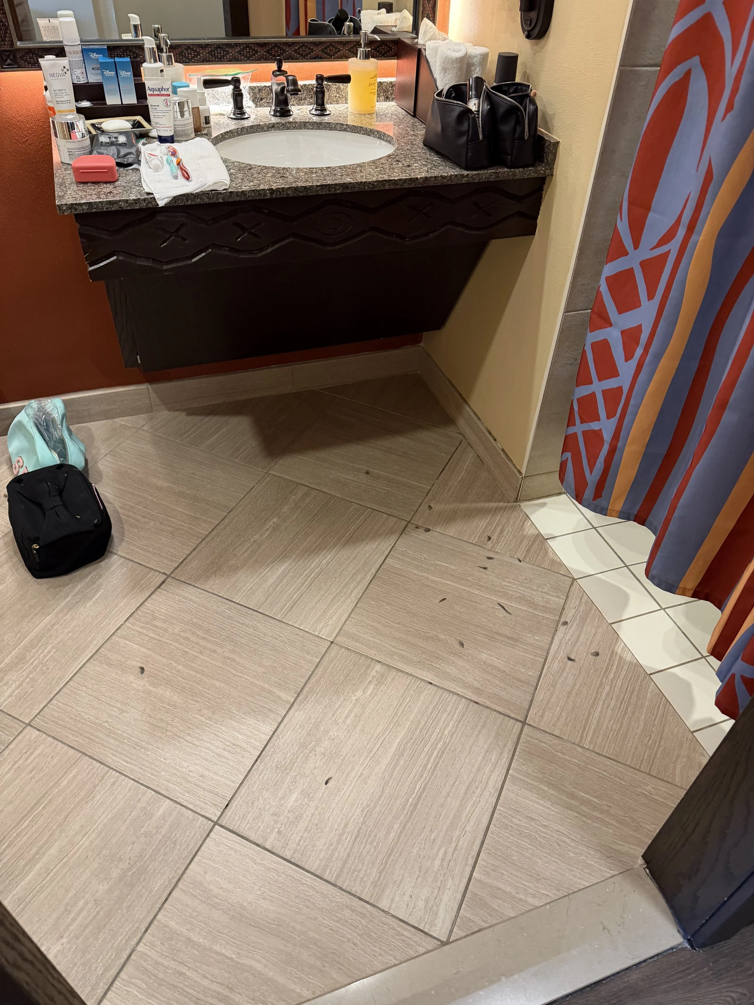 [Tzvi: I spent the entire day sitting at the desk in our hotel room, and I wanted some fresh air, so I opened the patio door and left it open for a while. I guess at some point I went to the bathroom and left the door open. Then I came back to the desk, and the next thing I knew I looked over and there was a bird flying around. I tried to shoo it out, but it went the opposite way of the open door and instead went into the bathroom. I called the front desk and they said they would send pest control “immediately,” but I still spent the next thirty minutes waving my arms around keeping the bird contained to the toilet area and not letting it land on our stuff, because it basically pooped everywhere it landed. Eventually pest control showed up and managed to catch the thing in his hands, leaving a mess of feathers all over the bathroom floor. Don’t worry, the bird was fine and he released it off the balcony. Then a housekeeping supervisor came with a housekeeper and they changed all of the sheets (it did poop on Shir’s bed) and sanitized all of the bottles that had been on the bathroom counter. It was traumatic. After that I went to the quick service place and got myself a nice lunch, some kind of African vegetable stew with rice and salad that was actually delicious.]
