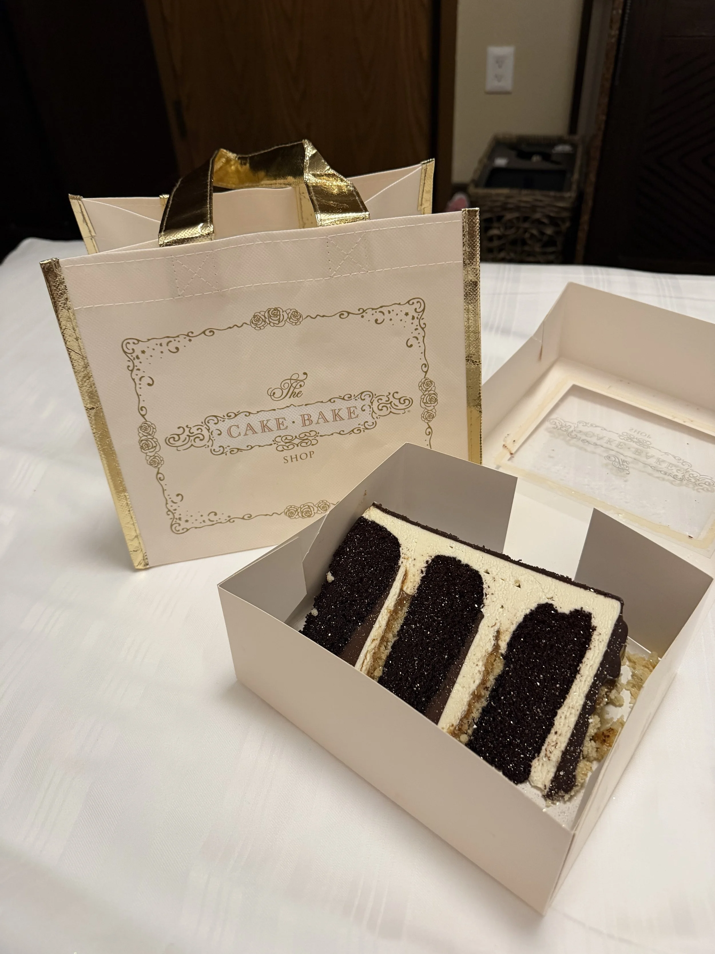 We put the girls to bed and then I decided to make a quick trip. Last year we had done an afternoon tea at The Cake Bake Shop on the Boardwalk and I really wanted to get back there. So, at 10:15pm on Monday I took an Uber to The Boardwalk Hotel and walked down the Boardwalk to The Cake Bake Shop. It was so cold, but I wasn’t giving up. I scanned the menu and decided on a latte and a piece of Millionaire Cake for the small price of $23. These cakes are over the top. I took my bounty back in an Uber and Tzvi and I shared the cake and coffee. The cake was so good. Worth the exorbitant price. I wish it would have been warm enough to get an iced coffee, but I’m very glad I made it there at least once this trip.